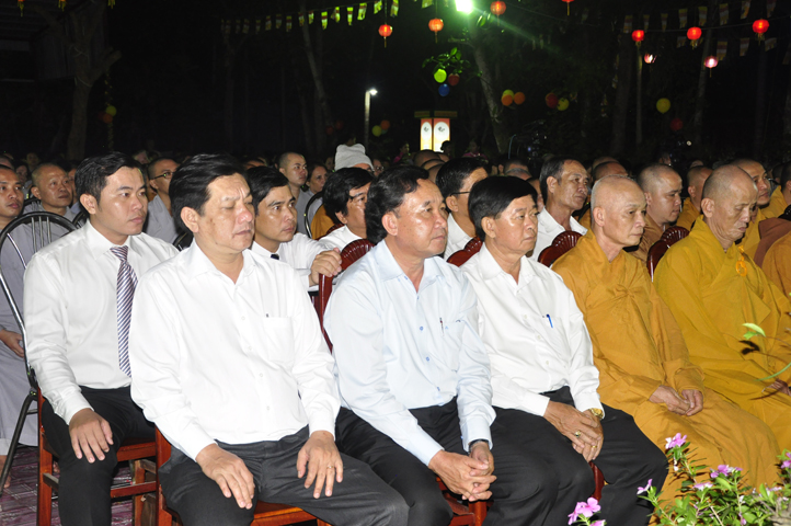 Chương trình được diễn ra với sự tham dự và chứng minh của Chư tôn đức thường trực BTS GHPGVN tỉnh Long An: HT Thích Thiện Huệ – Chứng minh BTS GHPGVN tỉnh Long An. HT Thích Huệ Hồng – Chứng minh BTS GHPGVN tỉnh Long An. HT Thích Minh Thiện – UV HĐTS, Phó Trưởng Ban hoằng pháp Trưởng giảng sư đoàn Ban hoằng pháp TW GH, Trưởng BTS GHPGVN tỉnh Long An. HT Thích Thiện Tâm – Phó trưởng BTS, Kiêm Trưởng Ban kiểm soát GHPGVN tỉnh Long An. HT Thích Quảng Ý, UV BTS GHPGVN tỉnh Long An, Trưởng BTS Phật Giáo Liên Huyện Tân Thạnh, Thị xã Kiến Tường, Vĩnh Hưng. ĐĐ Thích Lệ Trí UV HĐTS TW GHPGVN, Phó BTS, Trưởng Ban giáo dục Tăng Ni GHPGVN tỉnh Long An, phó Ban thường trực BTS GHPGVN Thành phố Tân An, trưởng ban tổ chức.