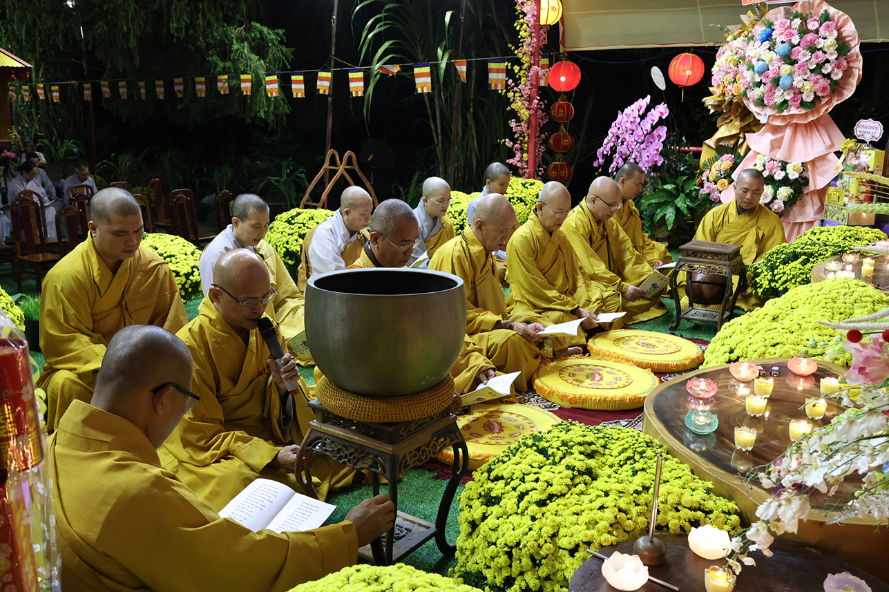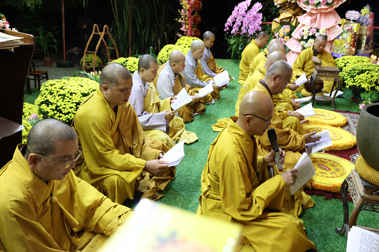 Sau phần lễ hành chính, Chư Tôn đức và toàn thể đại chúng đã trang nghiêm cử hành nghi thức trì tụng Tôn kinh Chuyển Pháp Luân theo Khóa tụng Thống nhất do Ban Văn hóa Trung ương GHPGVN ấn hành.