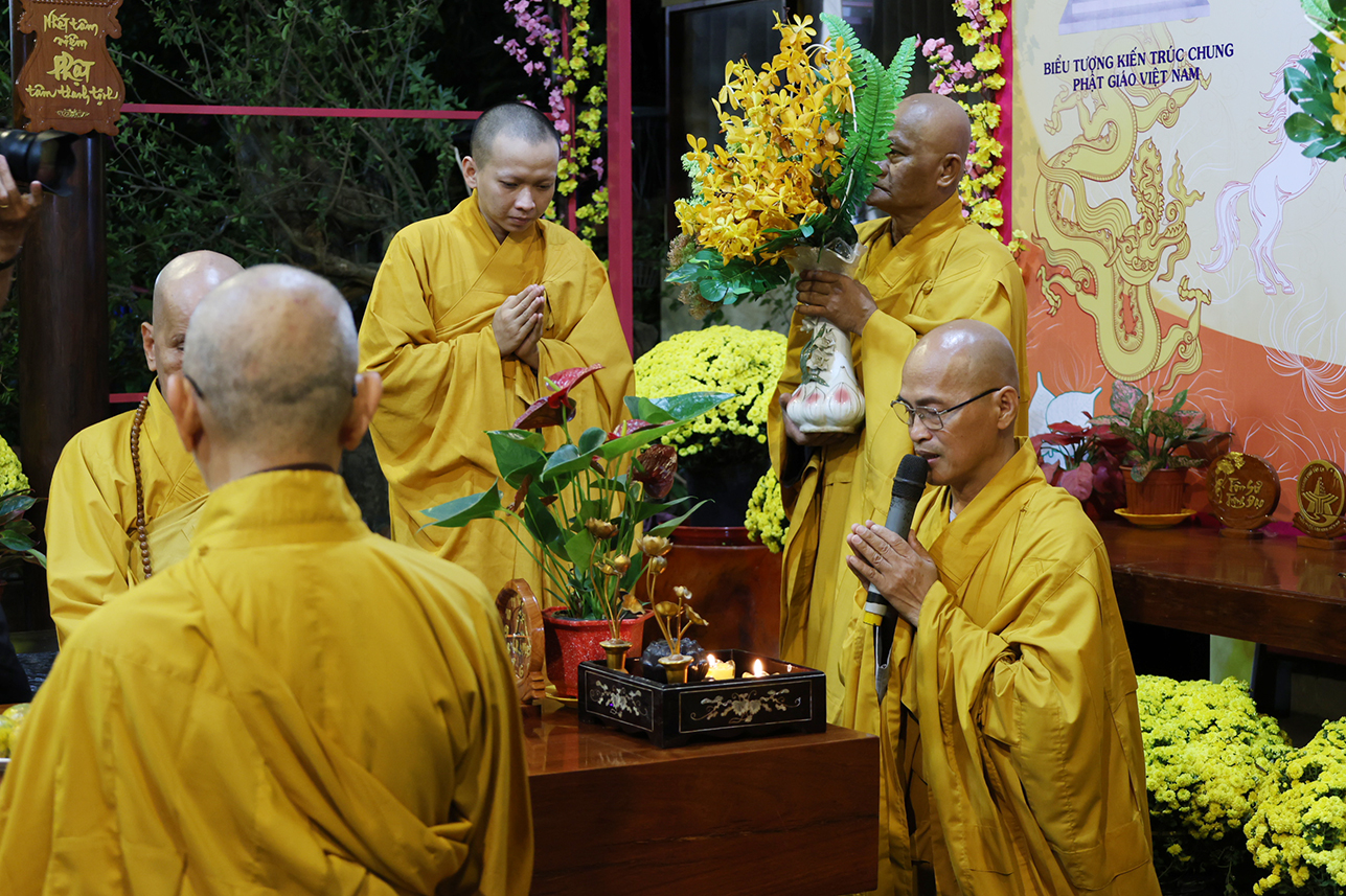 Thay mặt Ban Tổ chức, Thượng tọa Thích Lệ Trí đã tuyên đọc diễn văn Đại lễ Phật Thành Đạo lần thứ 2620, bày tỏ lòng tri ân và cúng dường công đức, đồng thời khuyến tấn đại chúng noi gương giác ngộ, giải thoát của Đức Thế Tôn. Thượng tọa ôn lại đôi nét về lịch sử Đức Phật Thích Ca Mâu Ni, trong đó nhấn mạnh quá trình tu tập và thành đạo dưới cội Bồ-đề, làm nổi bật “Sự từ bỏ vĩ đại” của Thái tử Tất Đạt Đa để trở thành Đức Phật Thích Ca Mâu Ni. Đại lễ Phật Thành Đạo được tổ chức tại chùa Long Phước đến nay là lần thứ 20, luôn nhận được sự quang lâm và thương tưởng của Chư Tôn đức Giáo phẩm Hội đồng Chứng minh, Hội đồng Trị sự cùng Chư Tôn đức tỉnh nhà.