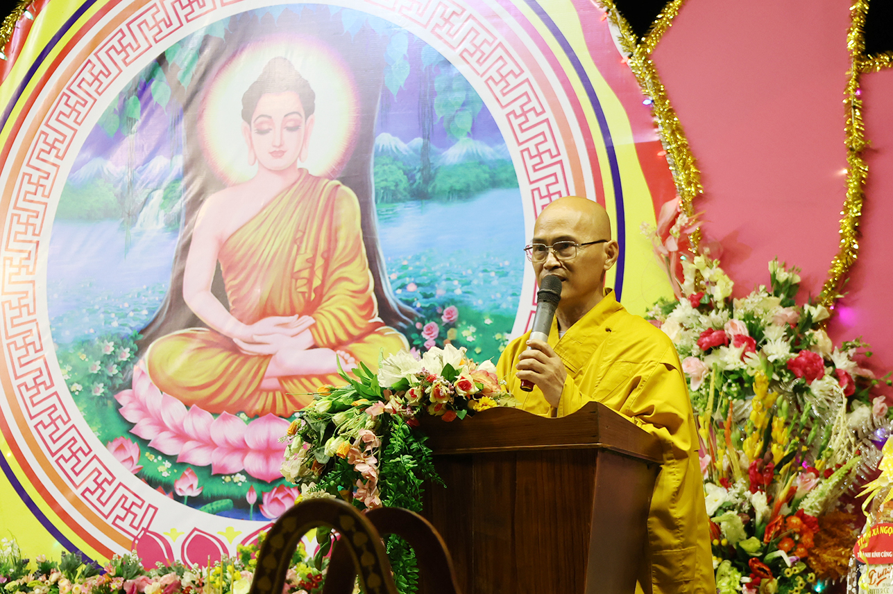 Thay mặt Ban Tổ chức, Thượng tọa Thích Lệ Trí đã tuyên đọc diễn văn Đại lễ Phật Thành Đạo lần thứ 2620, bày tỏ lòng tri ân và cúng dường công đức, đồng thời khuyến tấn đại chúng noi gương giác ngộ, giải thoát của Đức Thế Tôn. Thượng tọa ôn lại đôi nét về lịch sử Đức Phật Thích Ca Mâu Ni, trong đó nhấn mạnh quá trình tu tập và thành đạo dưới cội Bồ-đề, làm nổi bật “Sự từ bỏ vĩ đại” của Thái tử Tất Đạt Đa để trở thành Đức Phật Thích Ca Mâu Ni. Đại lễ Phật Thành Đạo được tổ chức tại chùa Long Phước đến nay là lần thứ 20, luôn nhận được sự quang lâm và thương tưởng của Chư Tôn đức Giáo phẩm Hội đồng Chứng minh, Hội đồng Trị sự cùng Chư Tôn đức tỉnh nhà.
