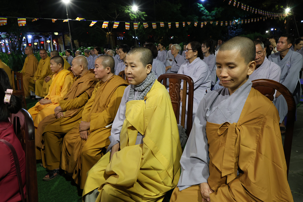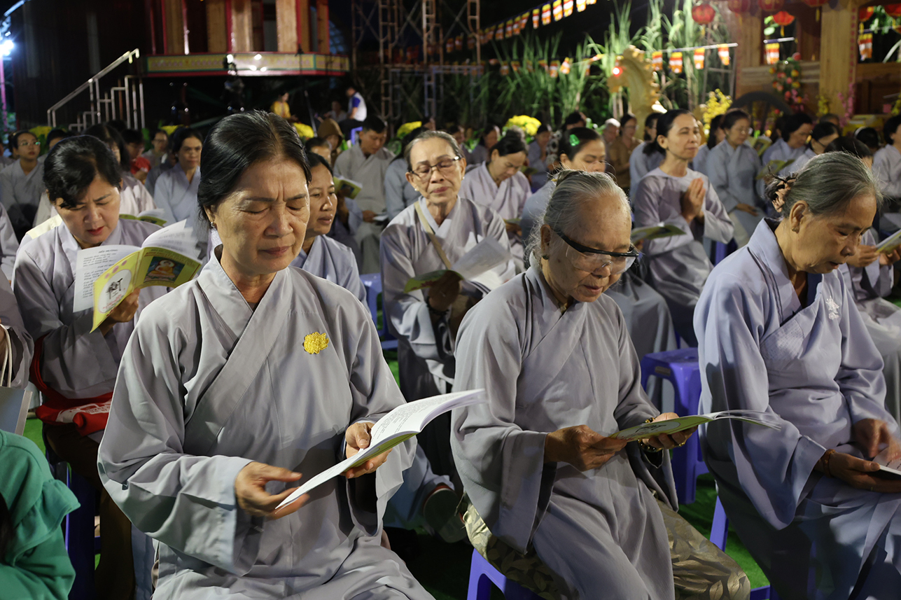 Sau phần lễ hành chính, Chư Tôn đức và toàn thể đại chúng đã trang nghiêm cử hành nghi thức trì tụng Tôn kinh Chuyển Pháp Luân theo Khóa tụng Thống nhất do Ban Văn hóa Trung ương GHPGVN ấn hành.