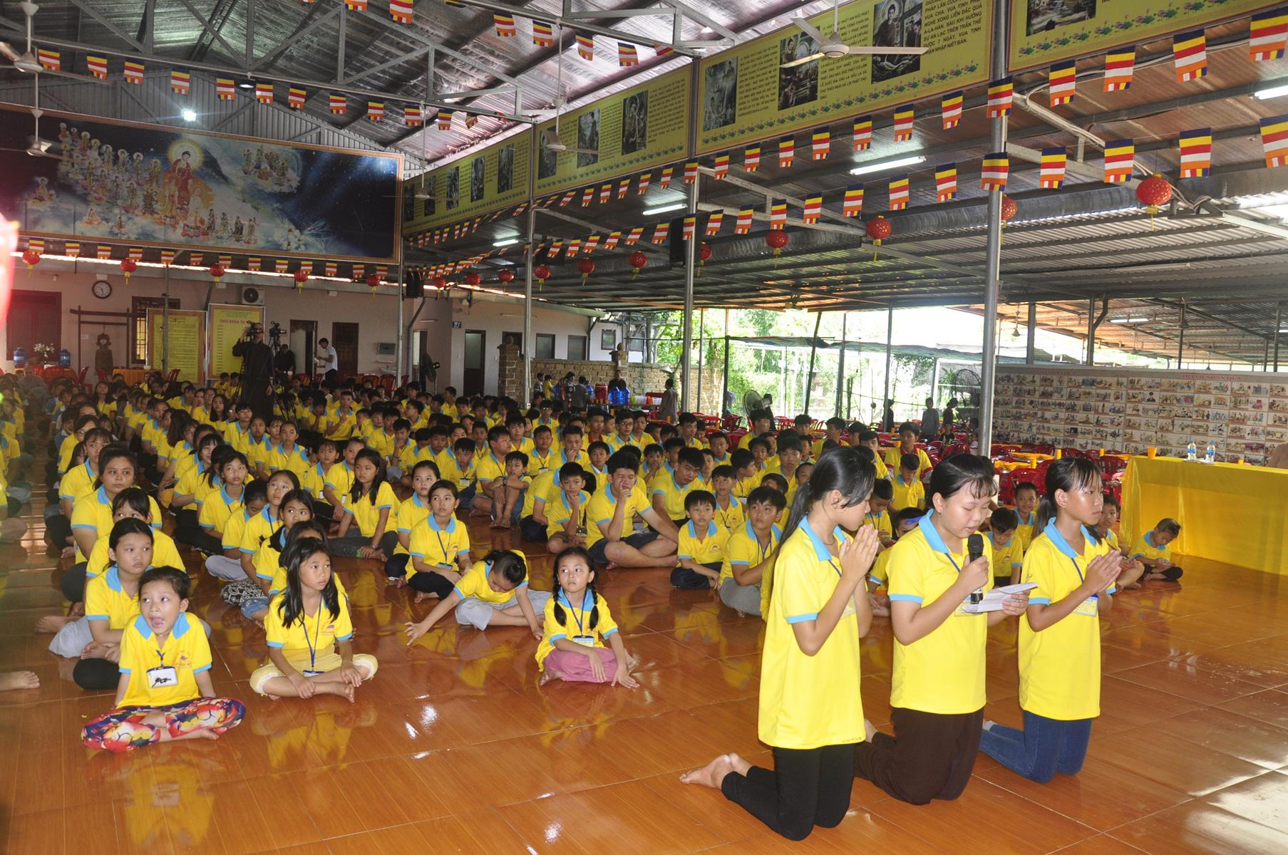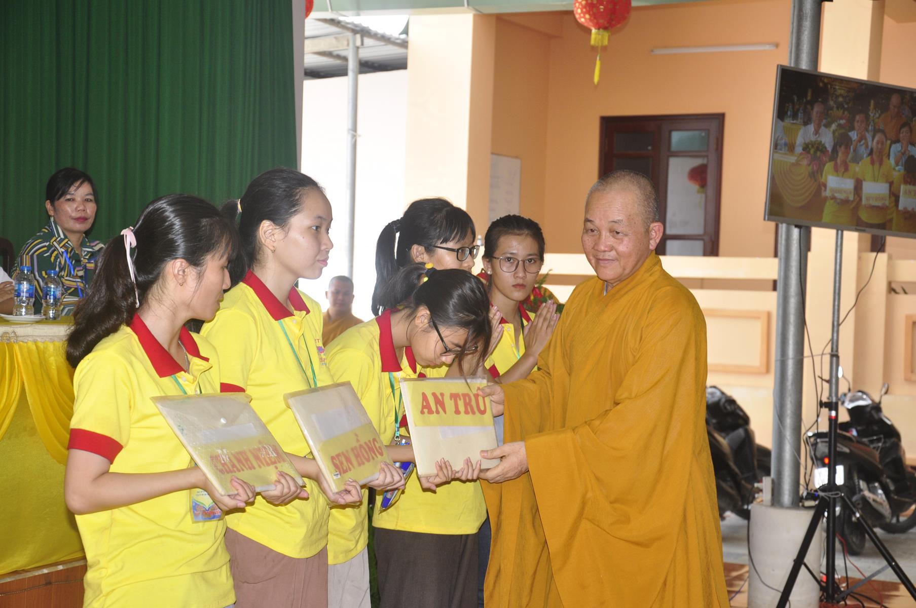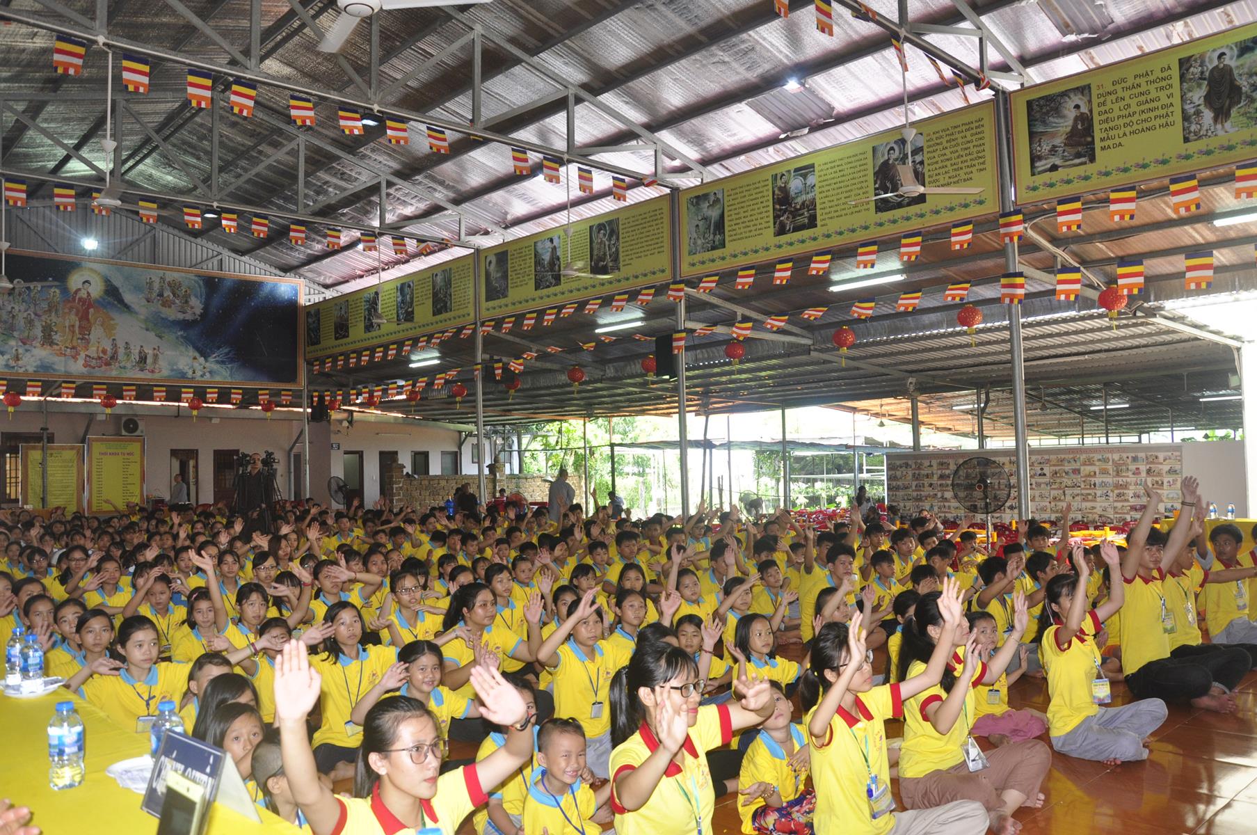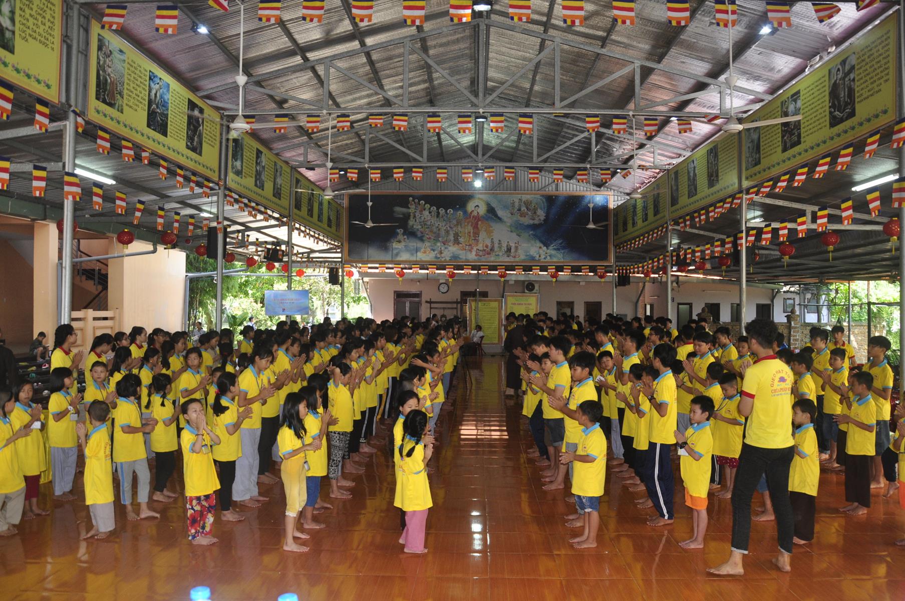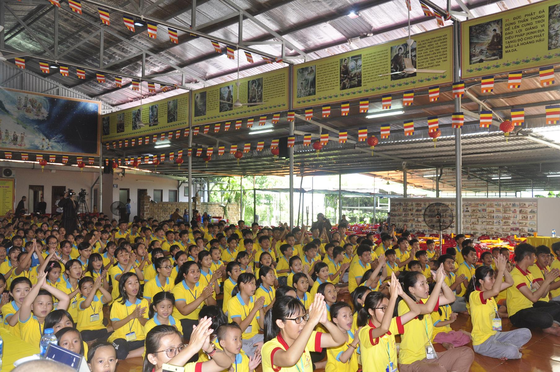Sau nghi thức niệm Phật cầu gia bị, tuyên bố lý do, giới thiệu thành phần tham dự, Đại đức Thích Trí Huệ: Phó Trưởng ban Tổ chức báo cáo kết quả khóa tu. Đại đức cho biết, khóa tu mùa hè “Gieo hạt Từ Bi” diễn ra trong 4 ngày, từ ngày 9 đến 12 tháng 7 năm 2019 (nhằm ngày 07 đến 12/6/Kỷ Hợi), có gần 400 khóa sinh tham dự. Trong bốn ngày các em khóa sinh được học về lời dạy của Đức Phật, như về cuộc đời Đức Phật, kinh Thương Yêu, Kinh Phước Đức, tọa thiền, tụng kinh, thiền hành… tinh thần phụng sự Tam bảo, yêu quê hương Đất nước, hiếu kính với ông bà cha mẹ, sống tốt đời đẹp đạo mà còn được giáo dục những kỹ năng sống, phòng chống ma túy, các tệ nạn xã hội, kỹ năng thích ứng với xã hội hiện đại; vui chơi, sinh hoạt nhóm, đốt lửa trại, trò chơi lớn, phiên chợ quê hương, thắp nến tri ân công ơn cha mẹ, bếp ăn hiếu thảo, thăm viếng khu di tích căn cứ Giồng Dứa và nhất là các khóa sinh giao lưu với huyện đoàn huyện Đức Hòa.