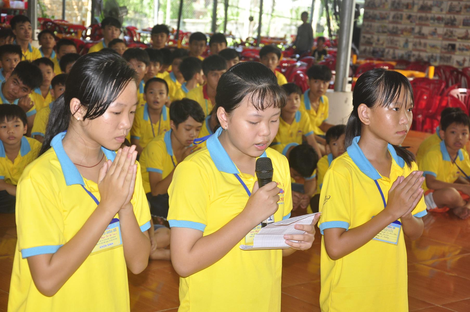 Tiếp theo, em Hồ Lưu Bảo Ngọc thay lời khóa sinh dâng lời cảm tưởng. Em nói lên cảm tưởng khi tham dự khóa tu và nhờ khóa tu này mà các khóa sinh được học hỏi kỹ năng sống, giao lưu, và nhất là thấm nhuần ân đức của công ơn cha mẹ.