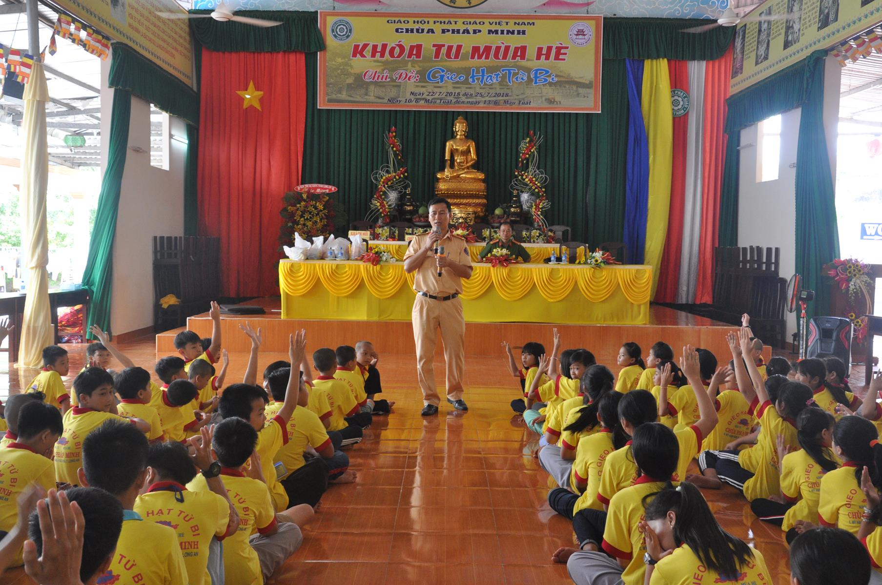 Công an huyện Đức Hòa tuyên truyền an toàn giao thông và phòng tránh các tệ nạn xã hội