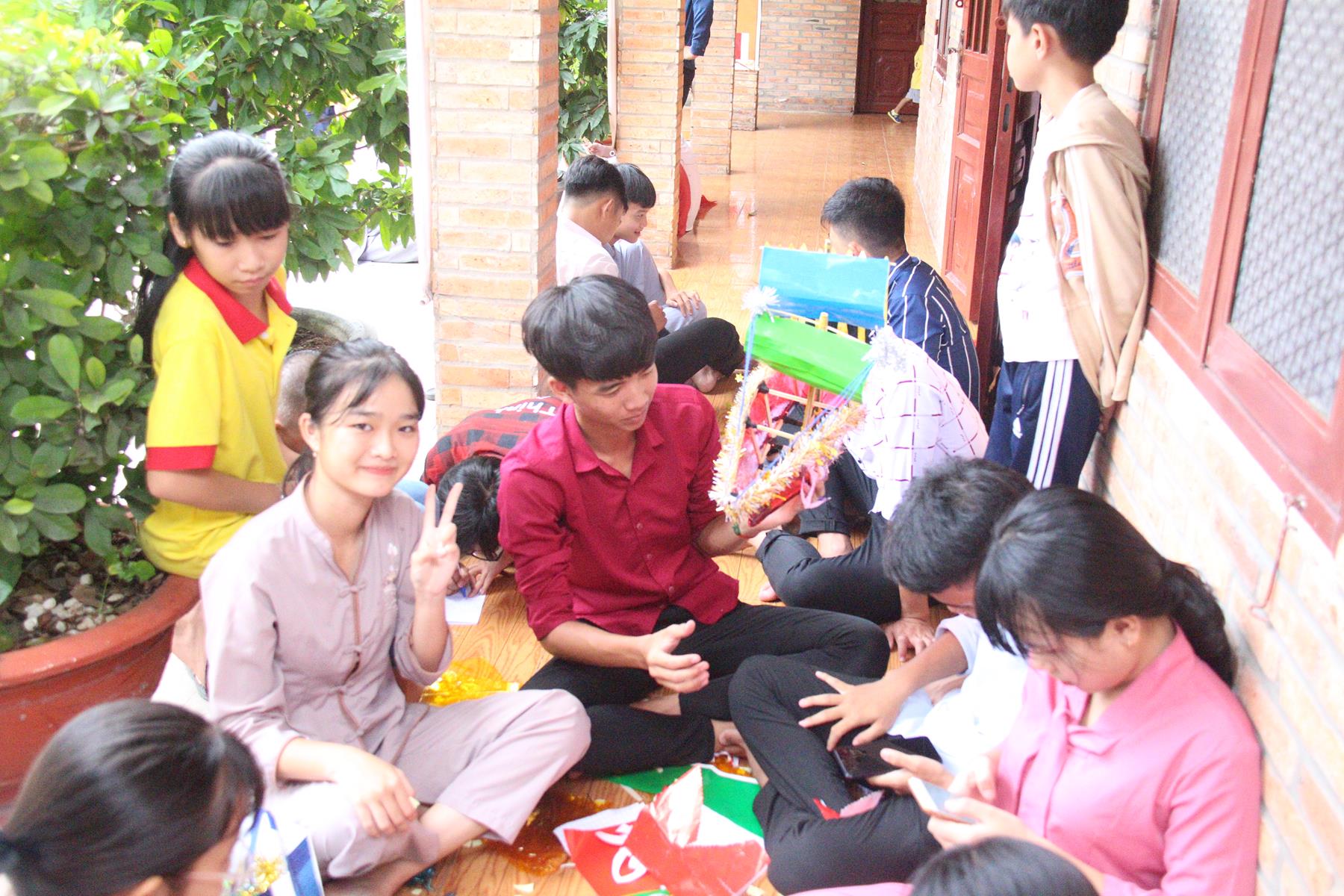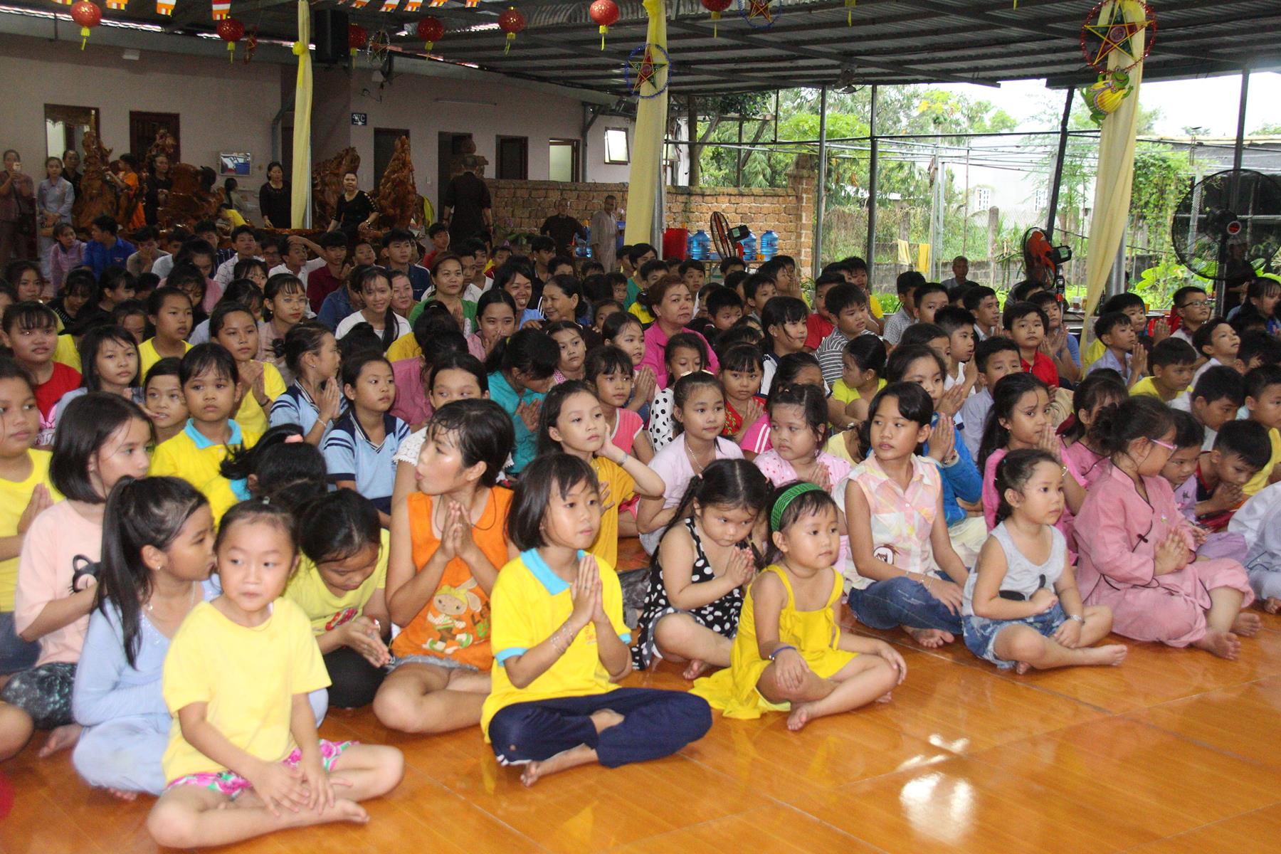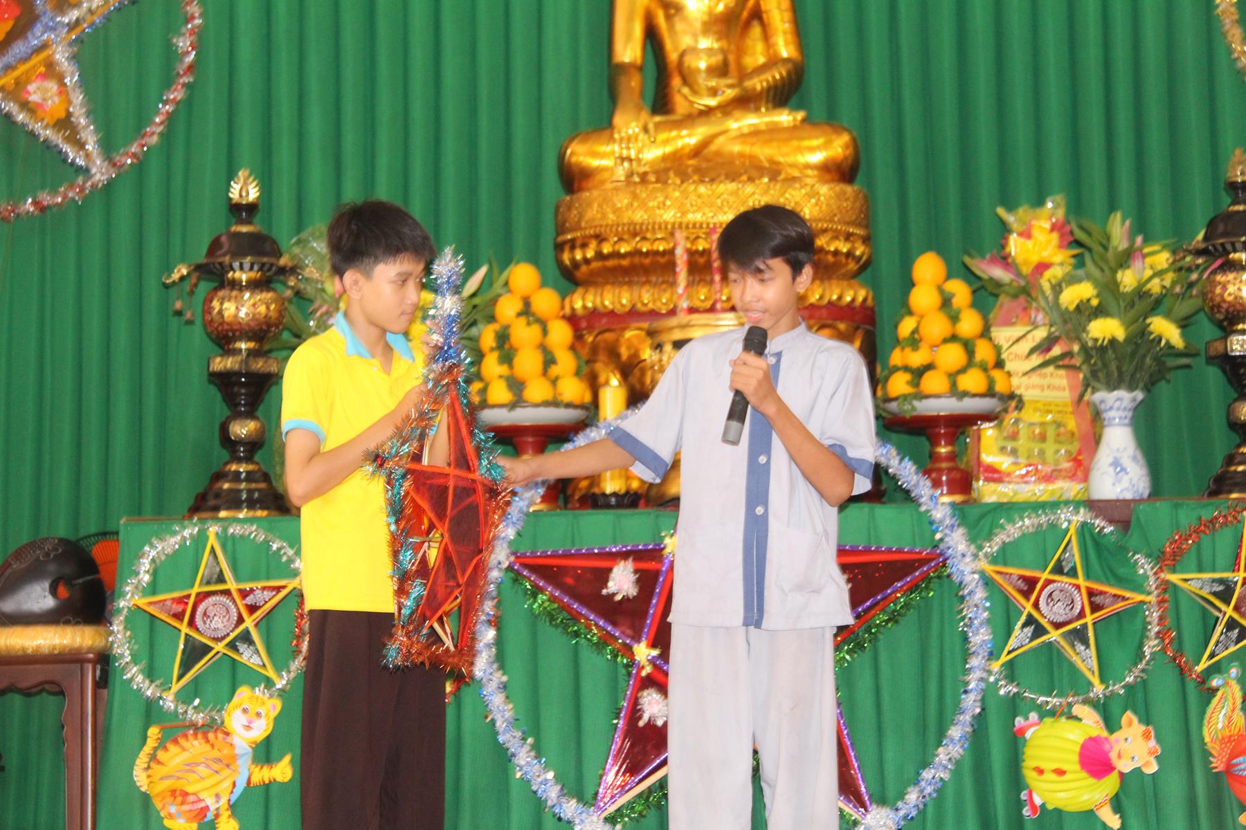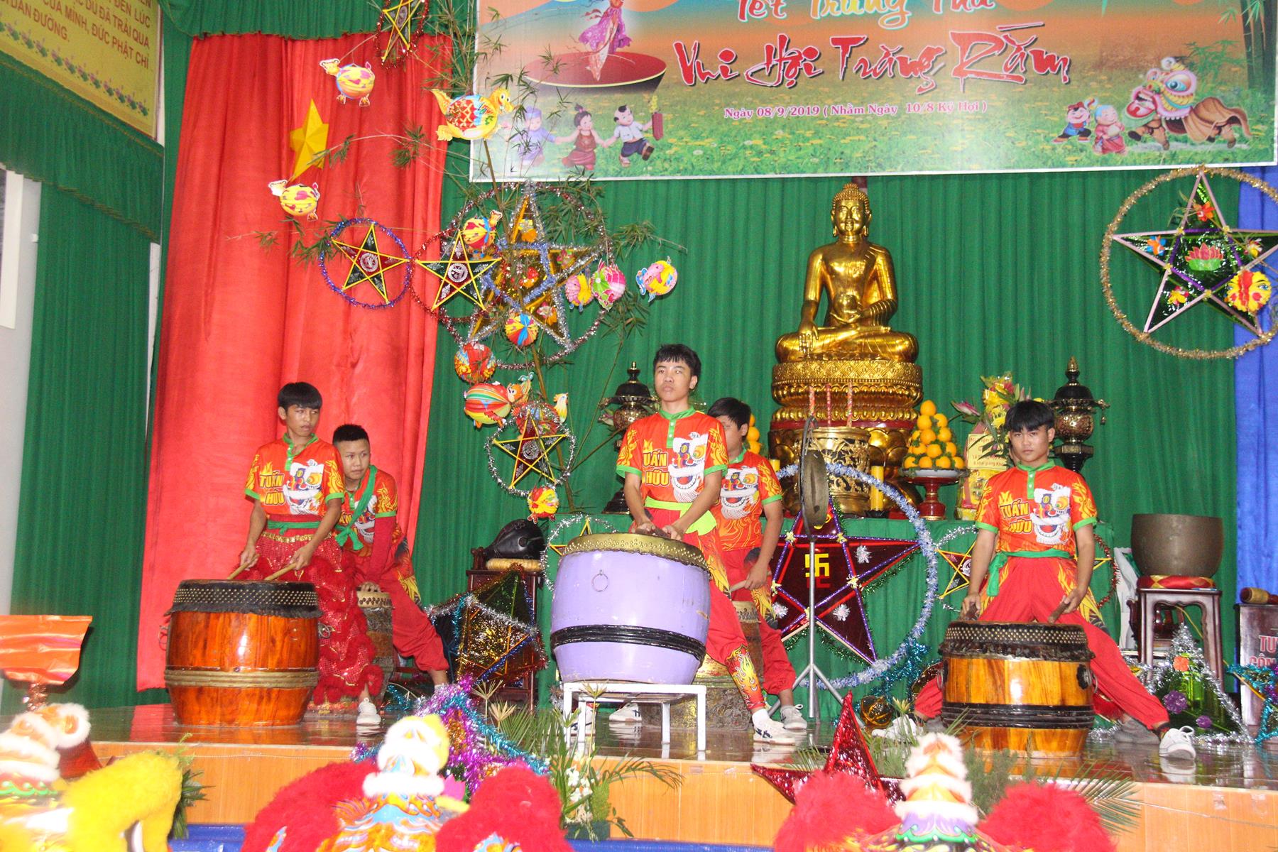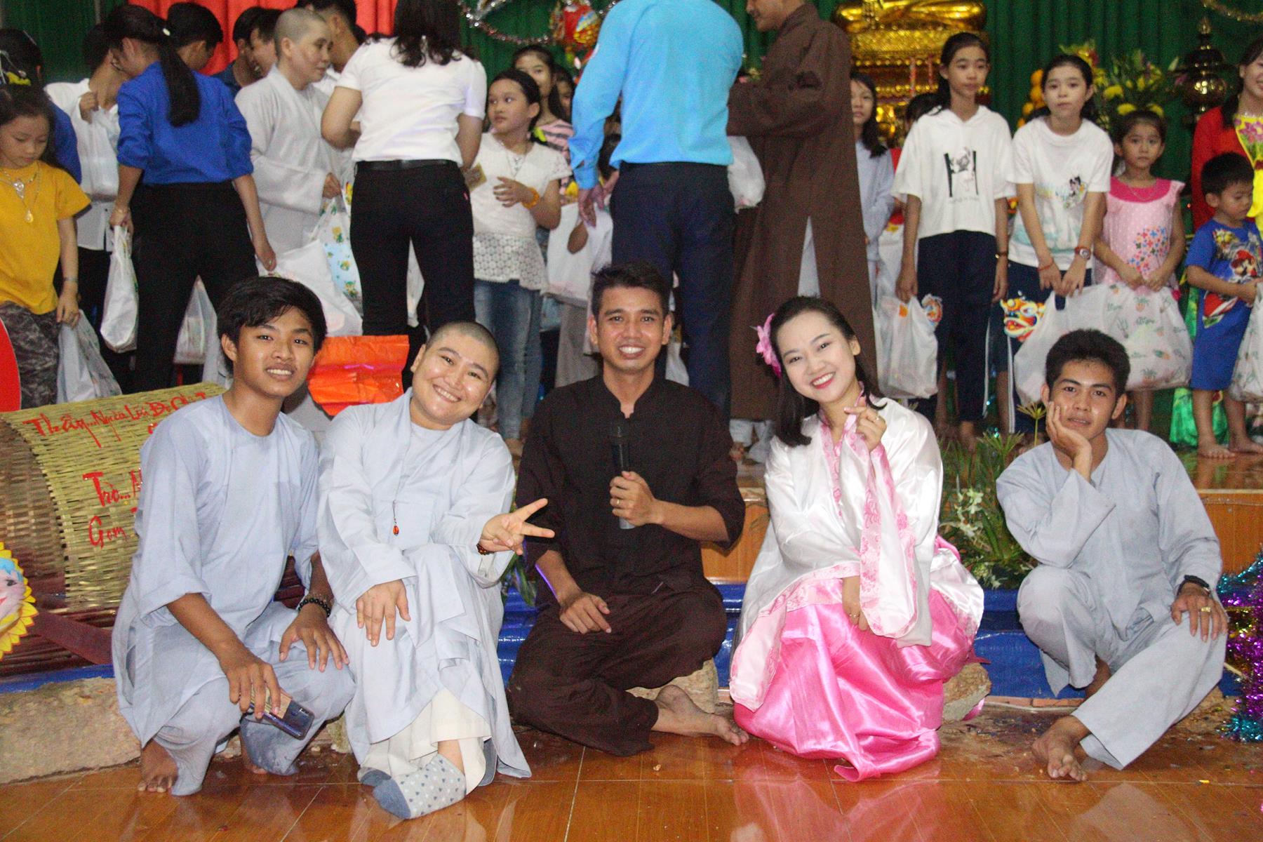 Buổi chiều các em được Đại đức Trưởng ban Tổ chức chia sẻ về Phật pháp và chơi các trò chơi dân gian hồn nhiên vô tư, được xem múa lân, được nghe kể chuyện về “Ông cuội chị Hằng” và biểu diễn văn nghệ do các em biểu diễn mang ý nghĩa ấm áp của sự đoàn viên và vui nhộn của trẻ thơ với những tràn pháo tay khích lệ, những tiếng cười rộn rã trong veo của các em tan vào hư không thật đáng được nâng niu, nuôi dưỡng và kết thúc ngày Hội trăng rằn là tiết mục vô cùng đặc sắc mà ai cũng mong đợi ăn buffet chay – nhận quà, chụp hình lưu niệm và ra về.