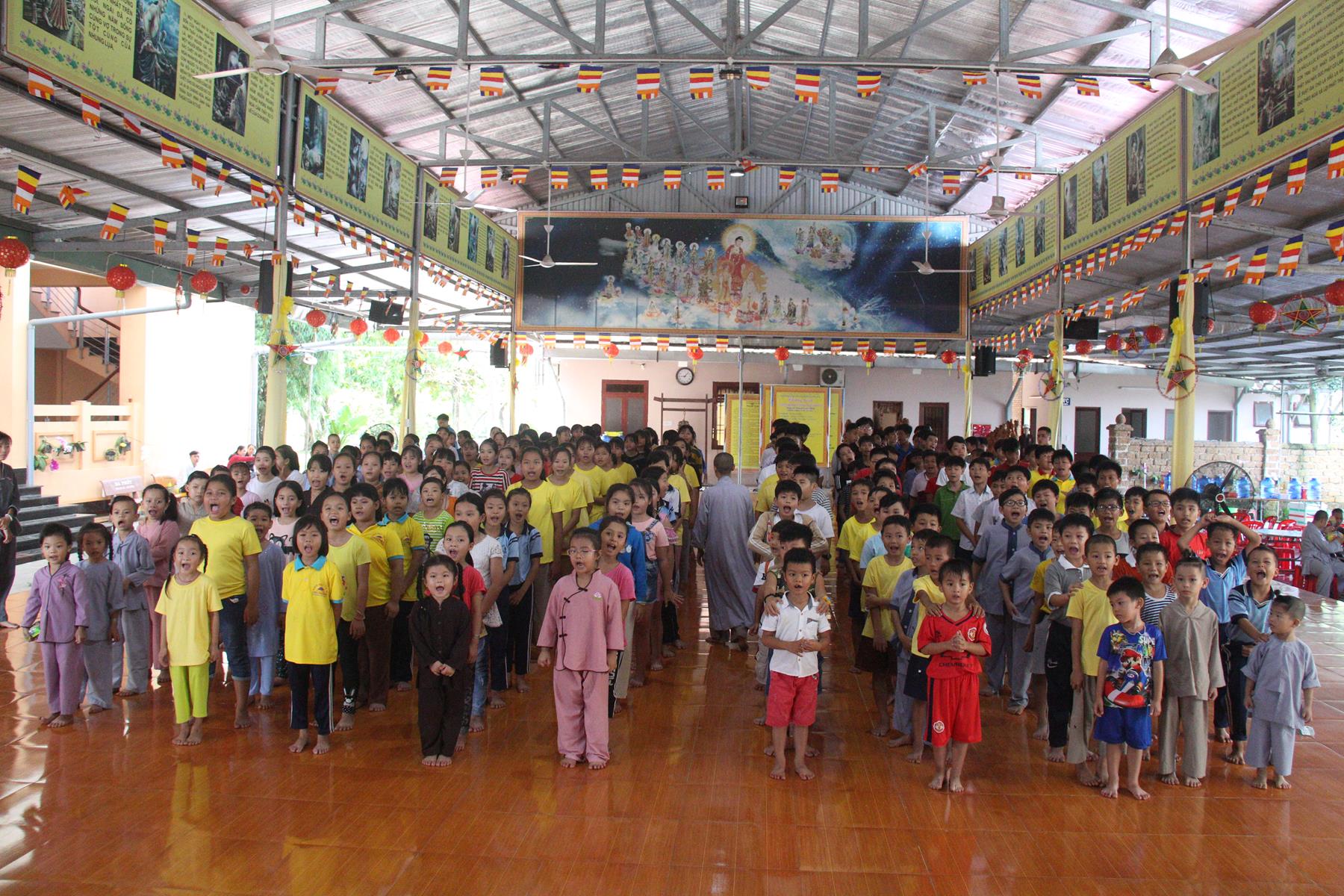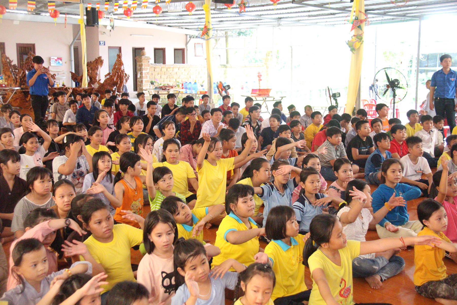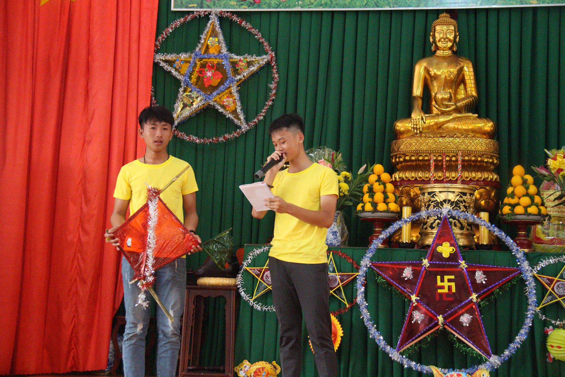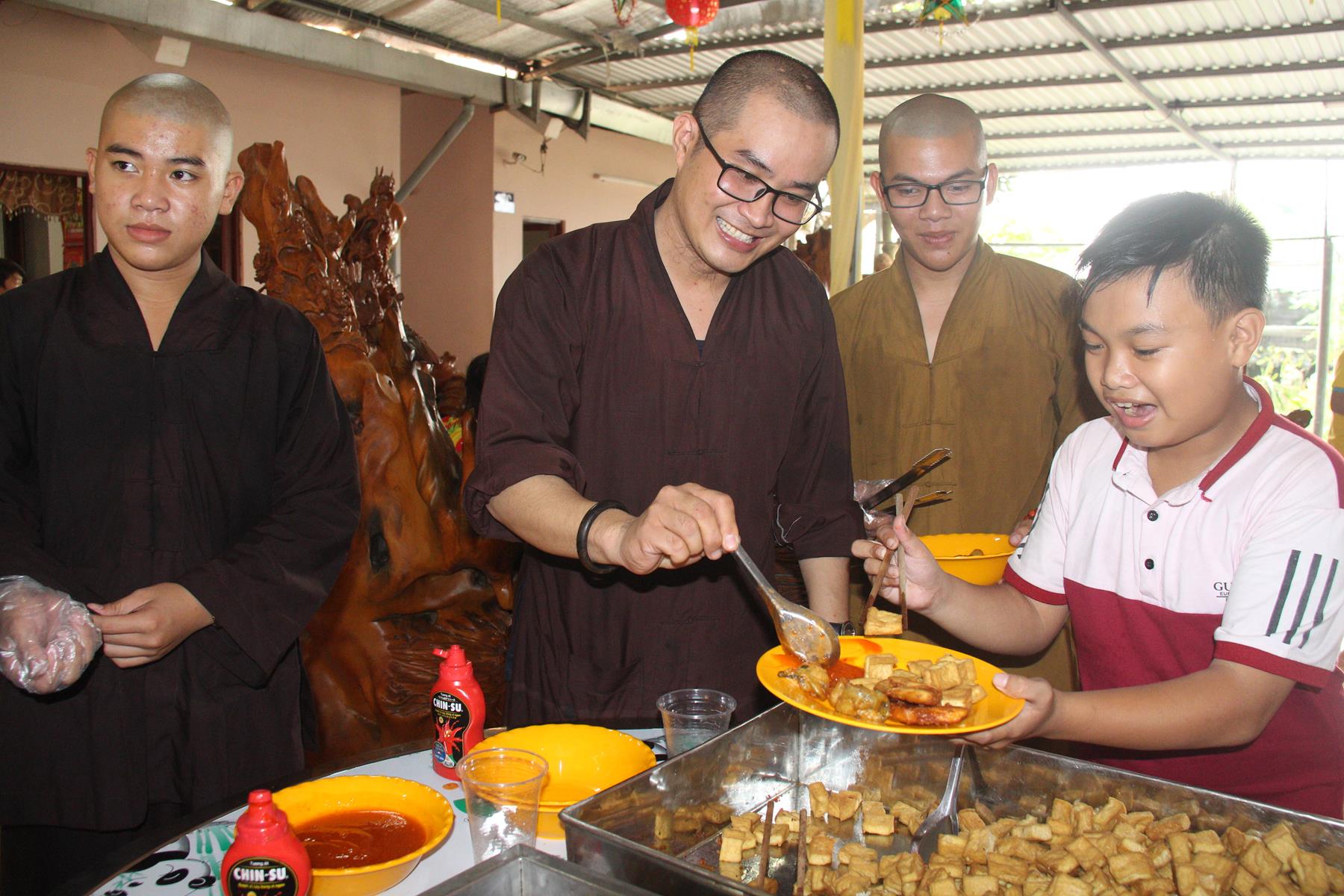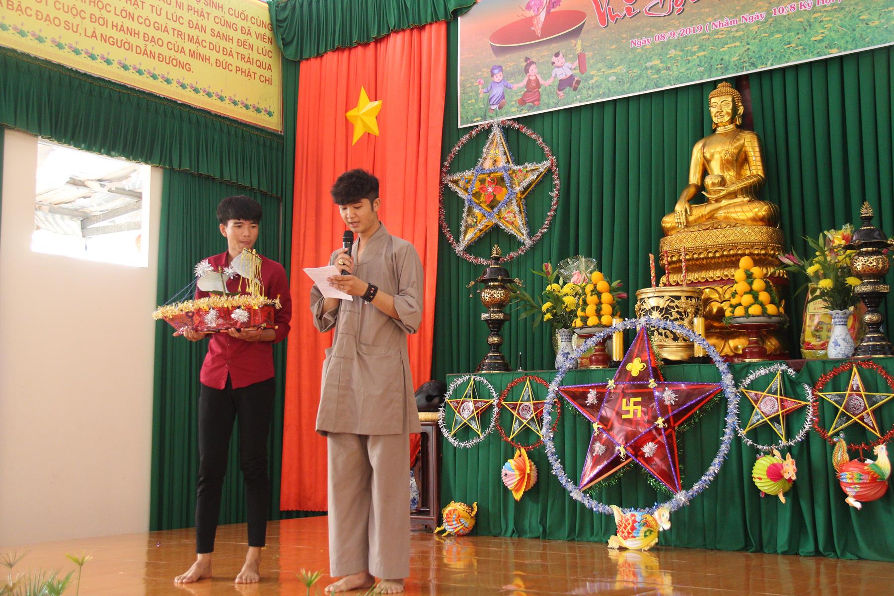 Buổi chiều các em được Đại đức Trưởng ban Tổ chức chia sẻ về Phật pháp và chơi các trò chơi dân gian hồn nhiên vô tư, được xem múa lân, được nghe kể chuyện về “Ông cuội chị Hằng” và biểu diễn văn nghệ do các em biểu diễn mang ý nghĩa ấm áp của sự đoàn viên và vui nhộn của trẻ thơ với những tràn pháo tay khích lệ, những tiếng cười rộn rã trong veo của các em tan vào hư không thật đáng được nâng niu, nuôi dưỡng và kết thúc ngày Hội trăng rằn là tiết mục vô cùng đặc sắc mà ai cũng mong đợi ăn buffet chay – nhận quà, chụp hình lưu niệm và ra về.
