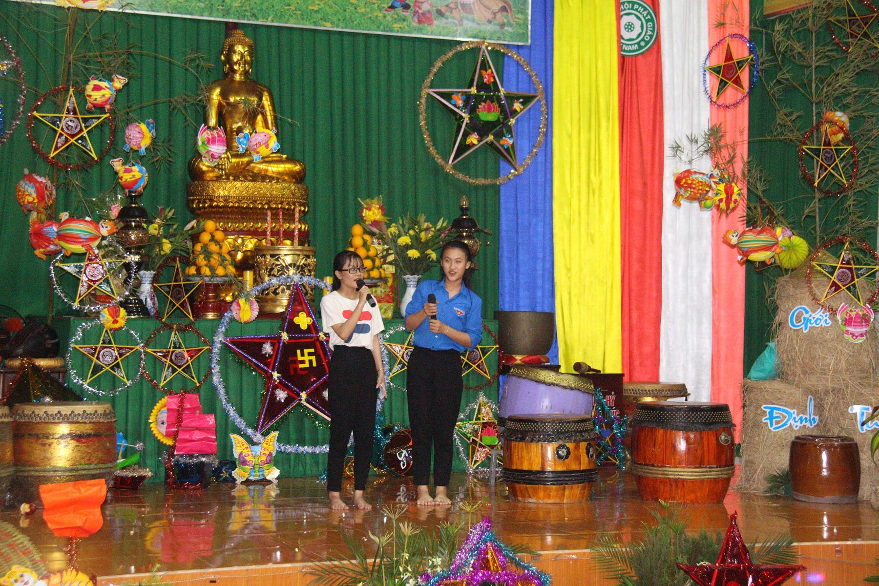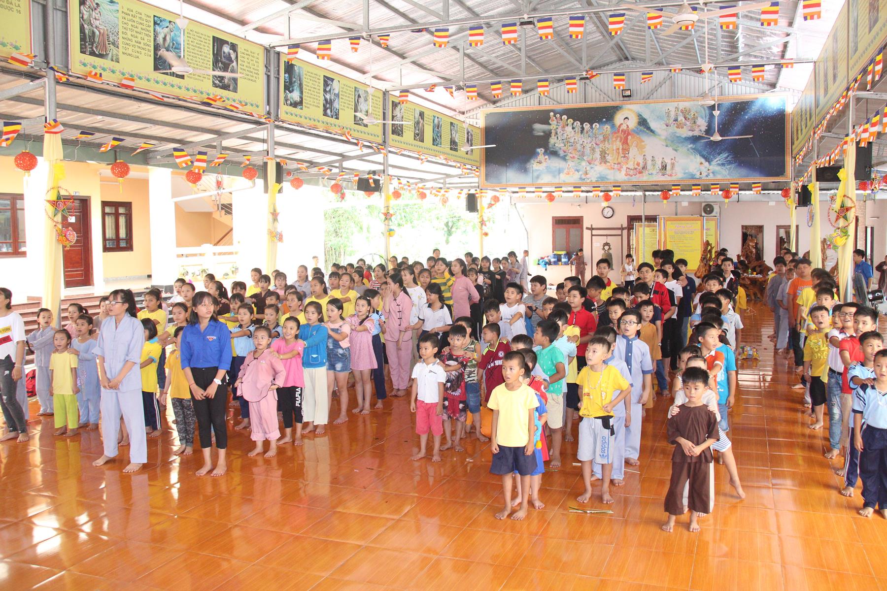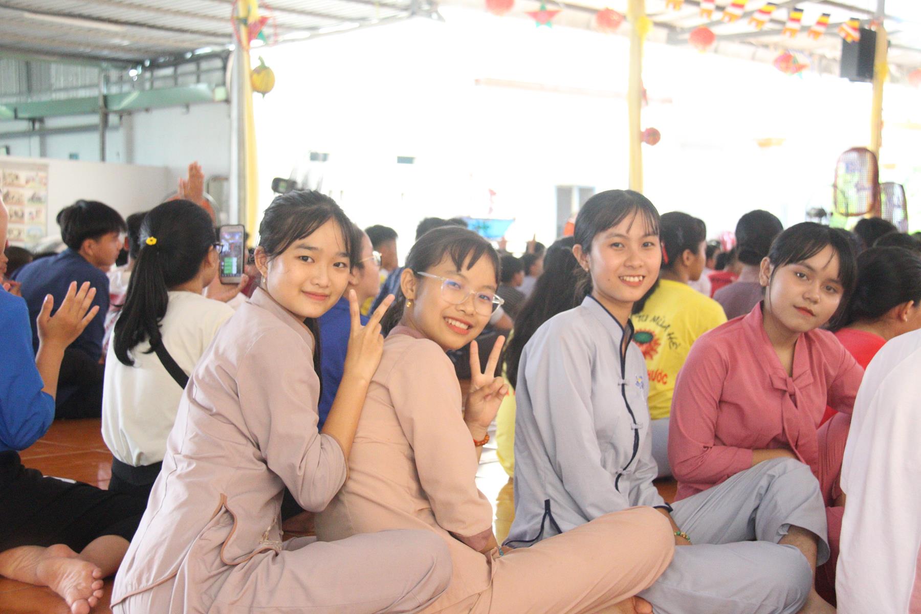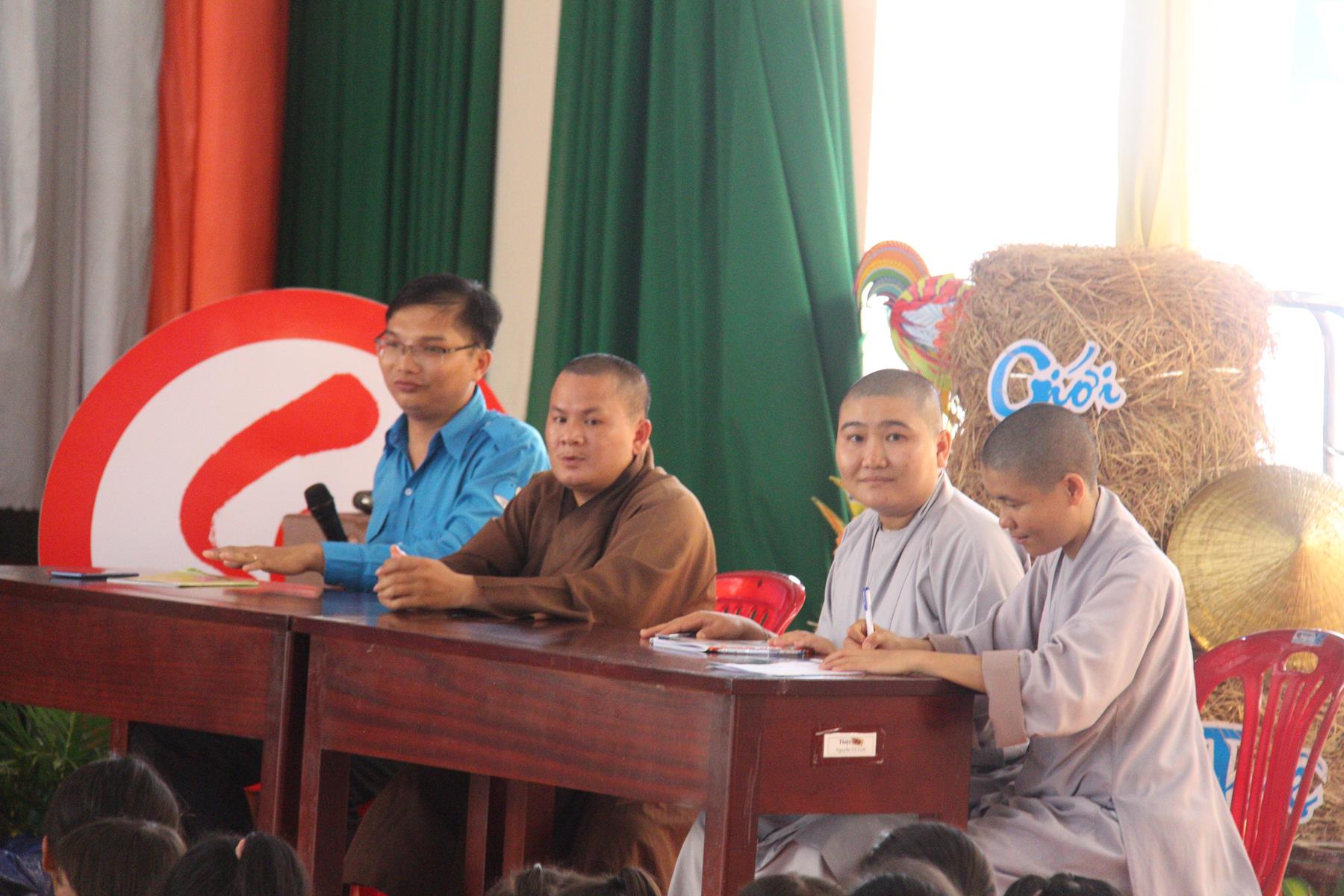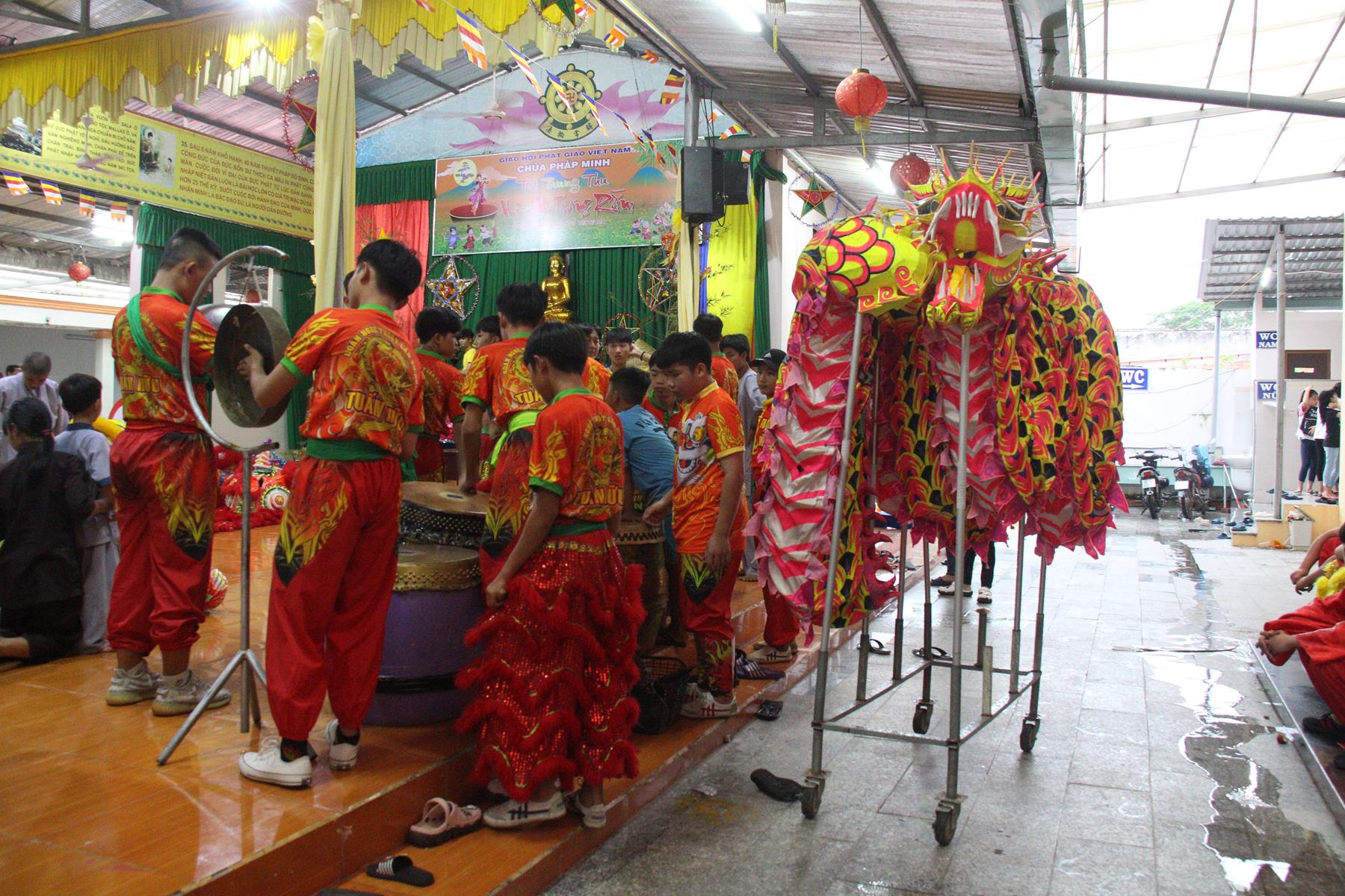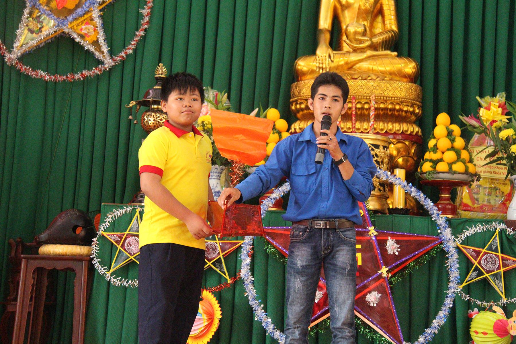 Buổi chiều các em được Đại đức Trưởng ban Tổ chức chia sẻ về Phật pháp và chơi các trò chơi dân gian hồn nhiên vô tư, được xem múa lân, được nghe kể chuyện về “Ông cuội chị Hằng” và biểu diễn văn nghệ do các em biểu diễn mang ý nghĩa ấm áp của sự đoàn viên và vui nhộn của trẻ thơ với những tràn pháo tay khích lệ, những tiếng cười rộn rã trong veo của các em tan vào hư không thật đáng được nâng niu, nuôi dưỡng và kết thúc ngày Hội trăng rằn là tiết mục vô cùng đặc sắc mà ai cũng mong đợi ăn buffet chay – nhận quà, chụp hình lưu niệm và ra về.
