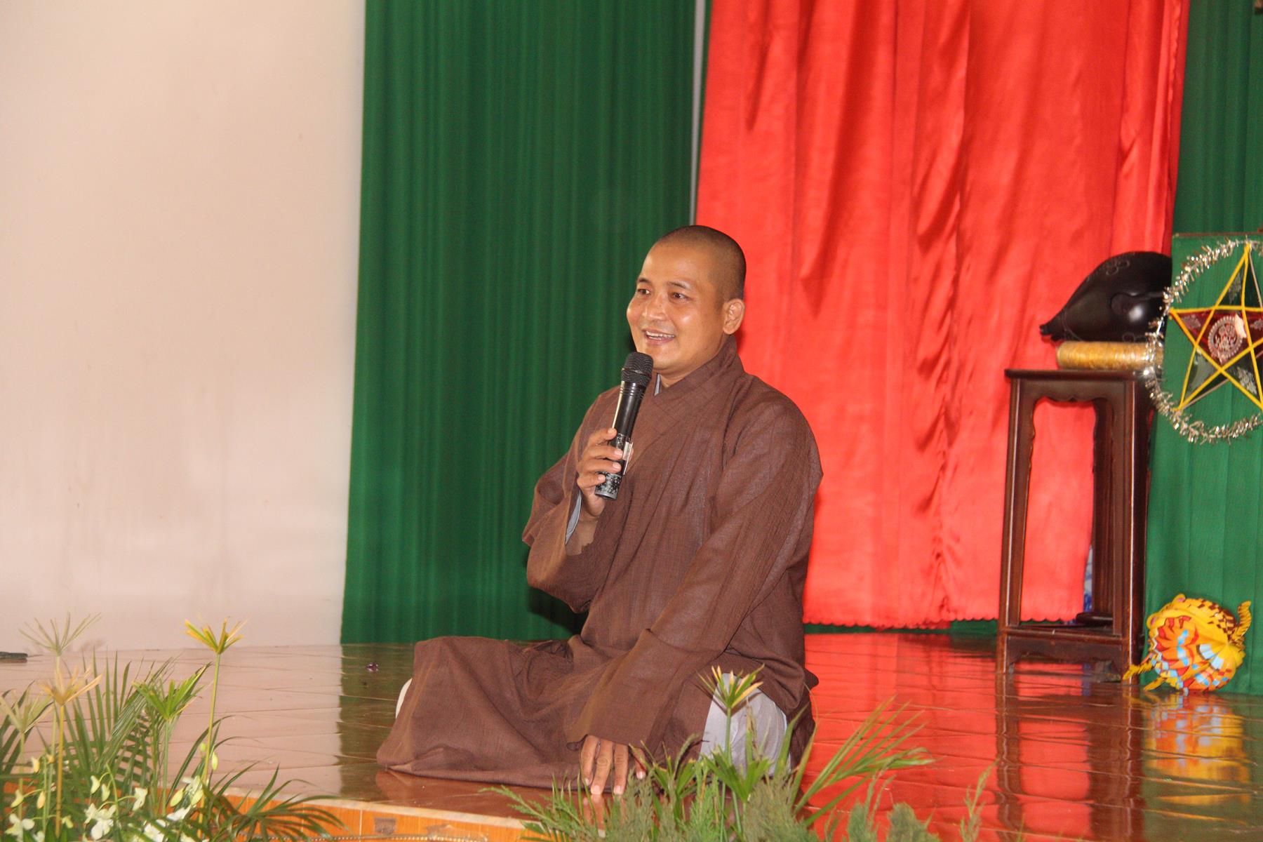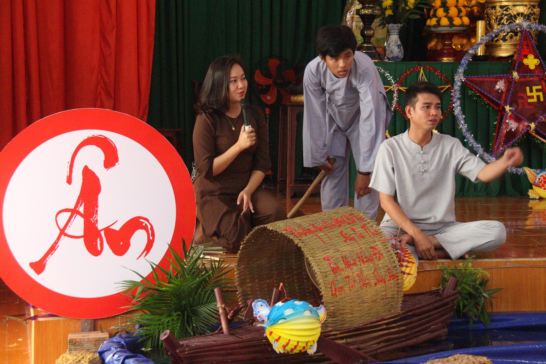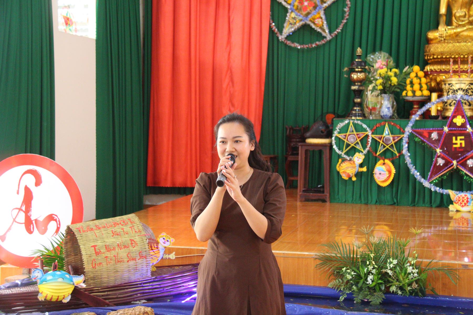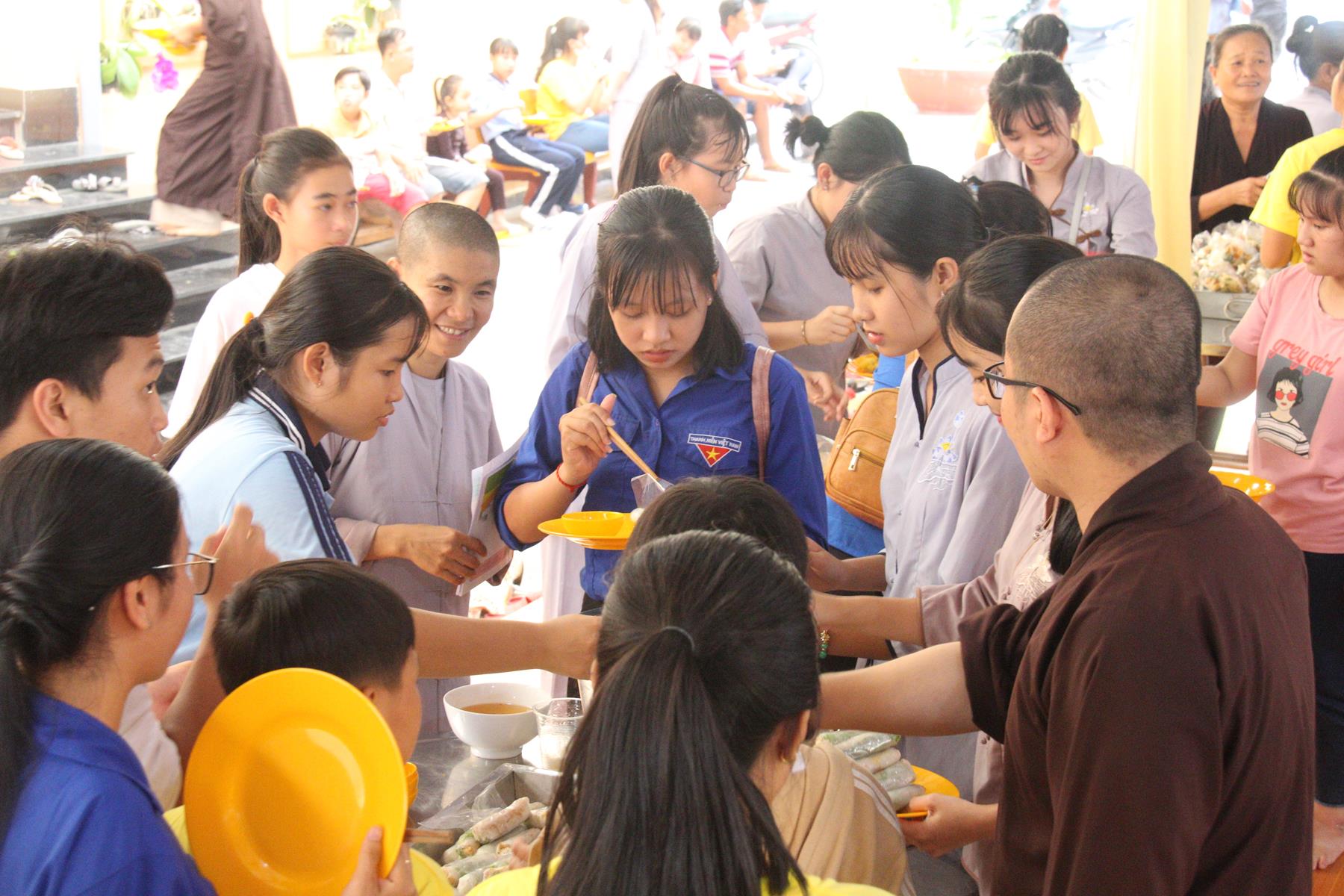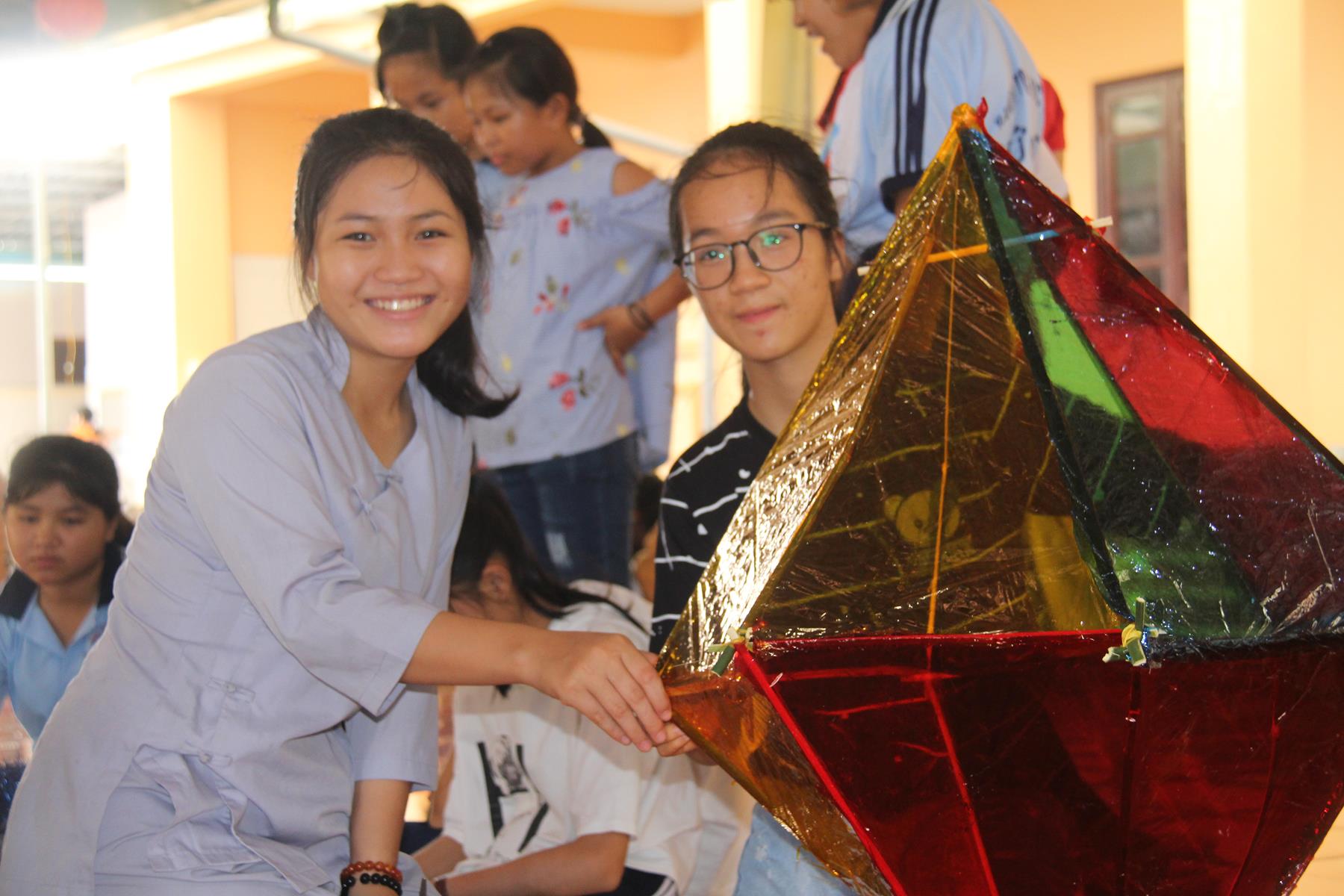 Buổi chiều các em được Đại đức Trưởng ban Tổ chức chia sẻ về Phật pháp và chơi các trò chơi dân gian hồn nhiên vô tư, được xem múa lân, được nghe kể chuyện về “Ông cuội chị Hằng” và biểu diễn văn nghệ do các em biểu diễn mang ý nghĩa ấm áp của sự đoàn viên và vui nhộn của trẻ thơ với những tràn pháo tay khích lệ, những tiếng cười rộn rã trong veo của các em tan vào hư không thật đáng được nâng niu, nuôi dưỡng và kết thúc ngày Hội trăng rằn là tiết mục vô cùng đặc sắc mà ai cũng mong đợi ăn buffet chay – nhận quà, chụp hình lưu niệm và ra về.