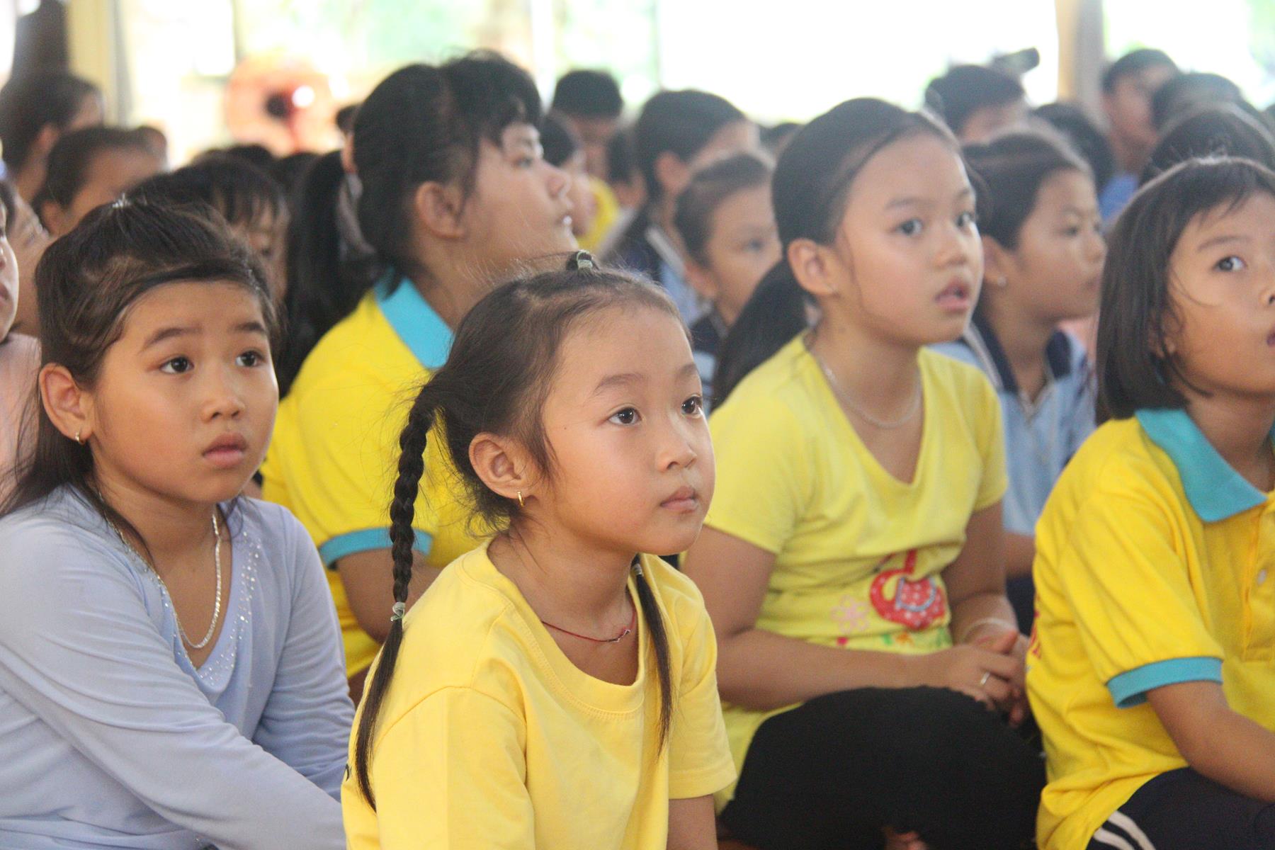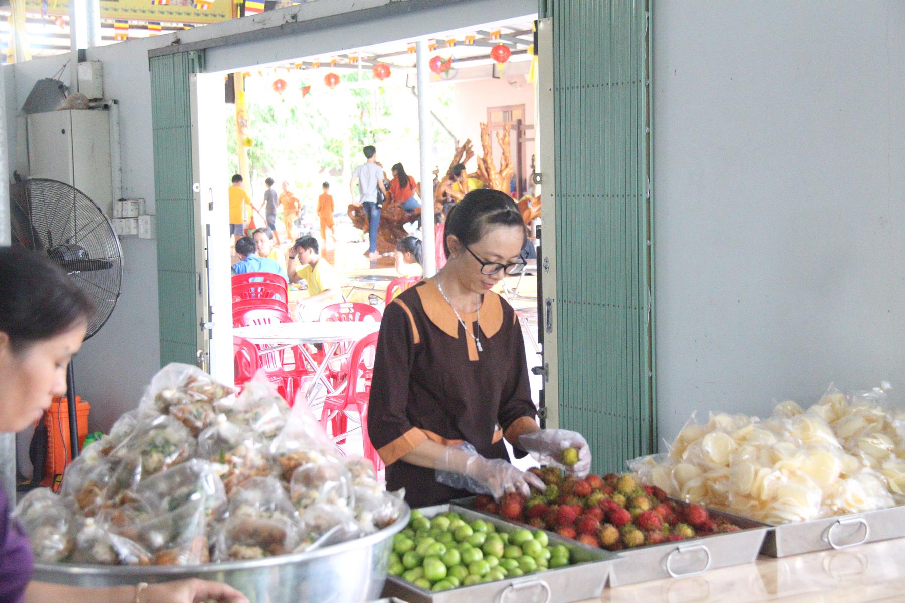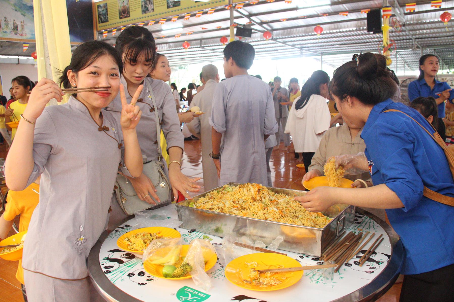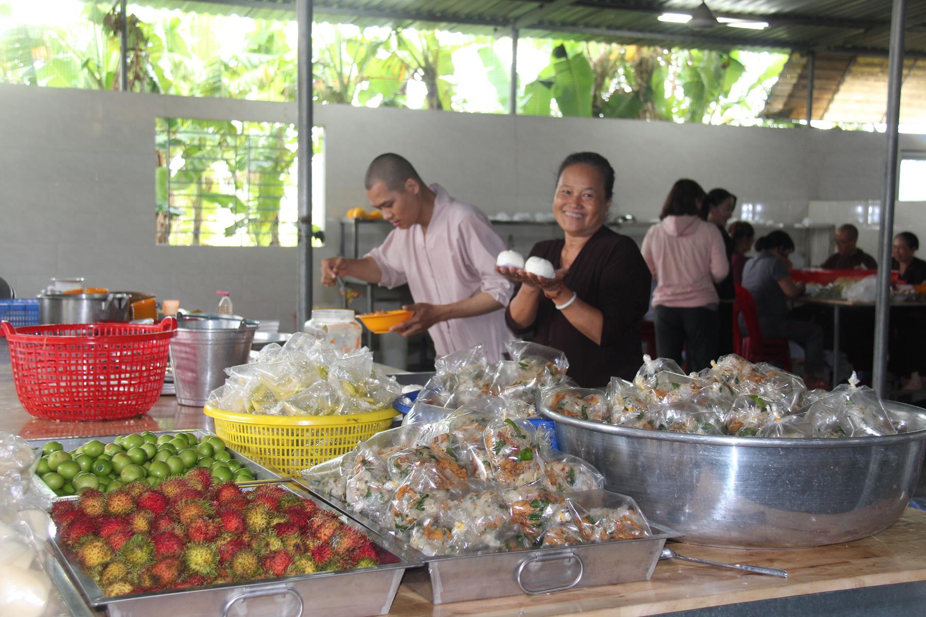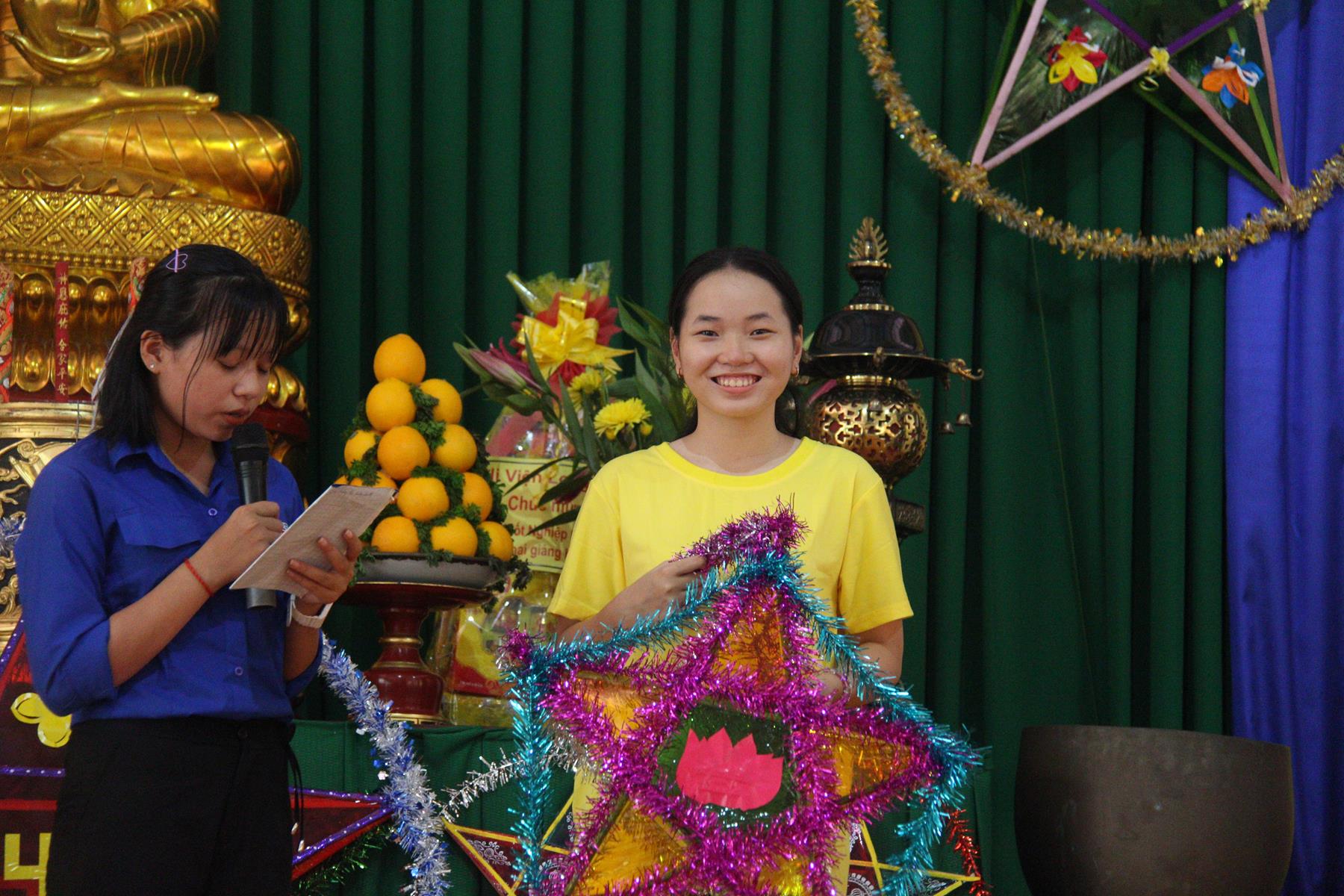 Buổi chiều các em được Đại đức Trưởng ban Tổ chức chia sẻ về Phật pháp và chơi các trò chơi dân gian hồn nhiên vô tư, được xem múa lân, được nghe kể chuyện về “Ông cuội chị Hằng” và biểu diễn văn nghệ do các em biểu diễn mang ý nghĩa ấm áp của sự đoàn viên và vui nhộn của trẻ thơ với những tràn pháo tay khích lệ, những tiếng cười rộn rã trong veo của các em tan vào hư không thật đáng được nâng niu, nuôi dưỡng và kết thúc ngày Hội trăng rằn là tiết mục vô cùng đặc sắc mà ai cũng mong đợi ăn buffet chay – nhận quà, chụp hình lưu niệm và ra về.
