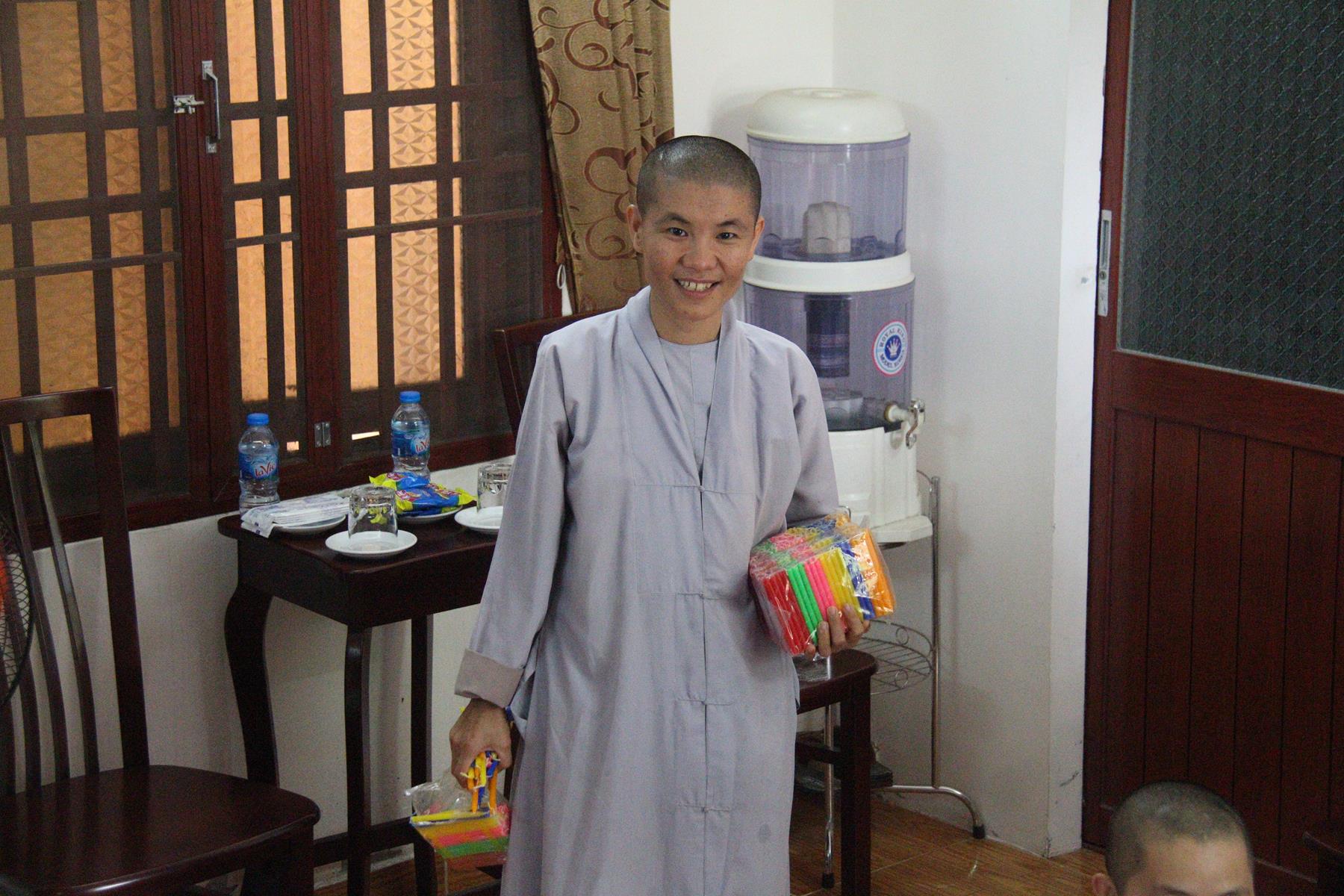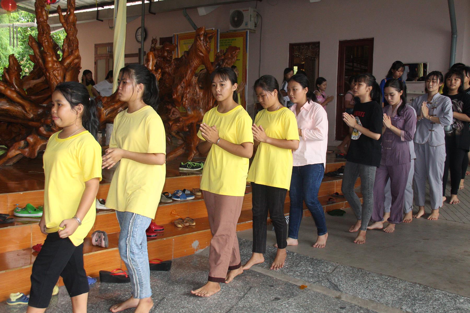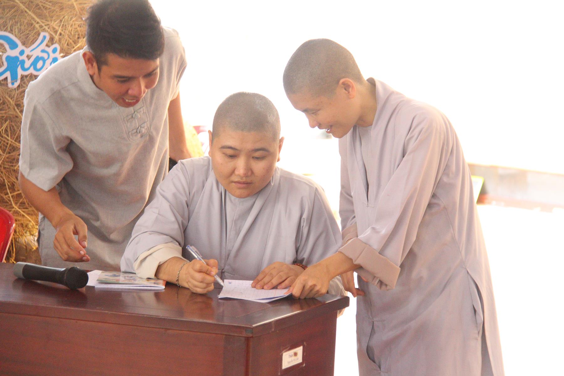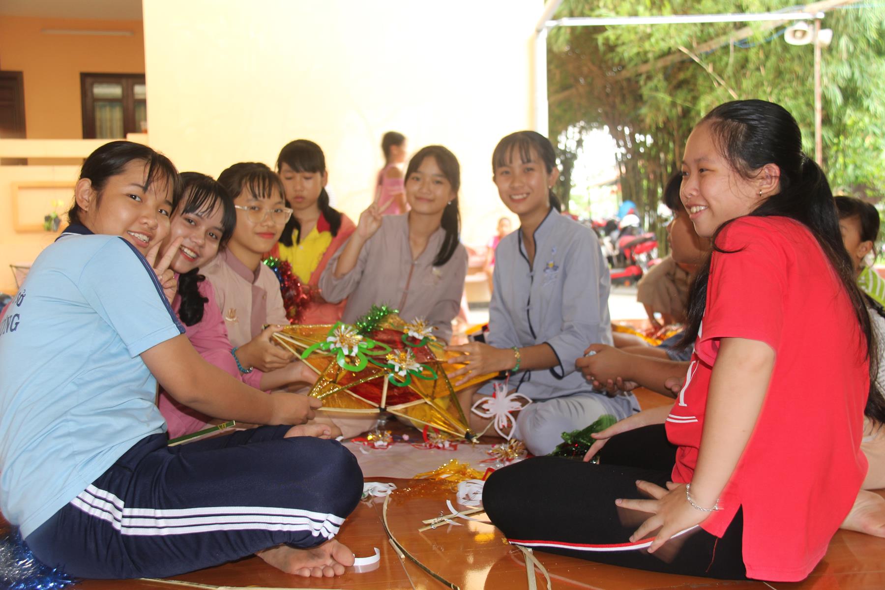 Buổi sáng các em tập trung về chùa làm quen với những nội quy căn bản để bắt đầu môn học kỹ năng, thực hành kỹ năng và tinh thần đồng đội trong sinh hoạt nhóm, bằng Hội thi làm Lồng đèn vui nhộn và sáng tạo, các em tự tạo cho nhóm của mình một chiếc lồng đèn xinh xắn, dễ thương nhờ sự trợ giúp của quý Thầy Cô và các anh chị.