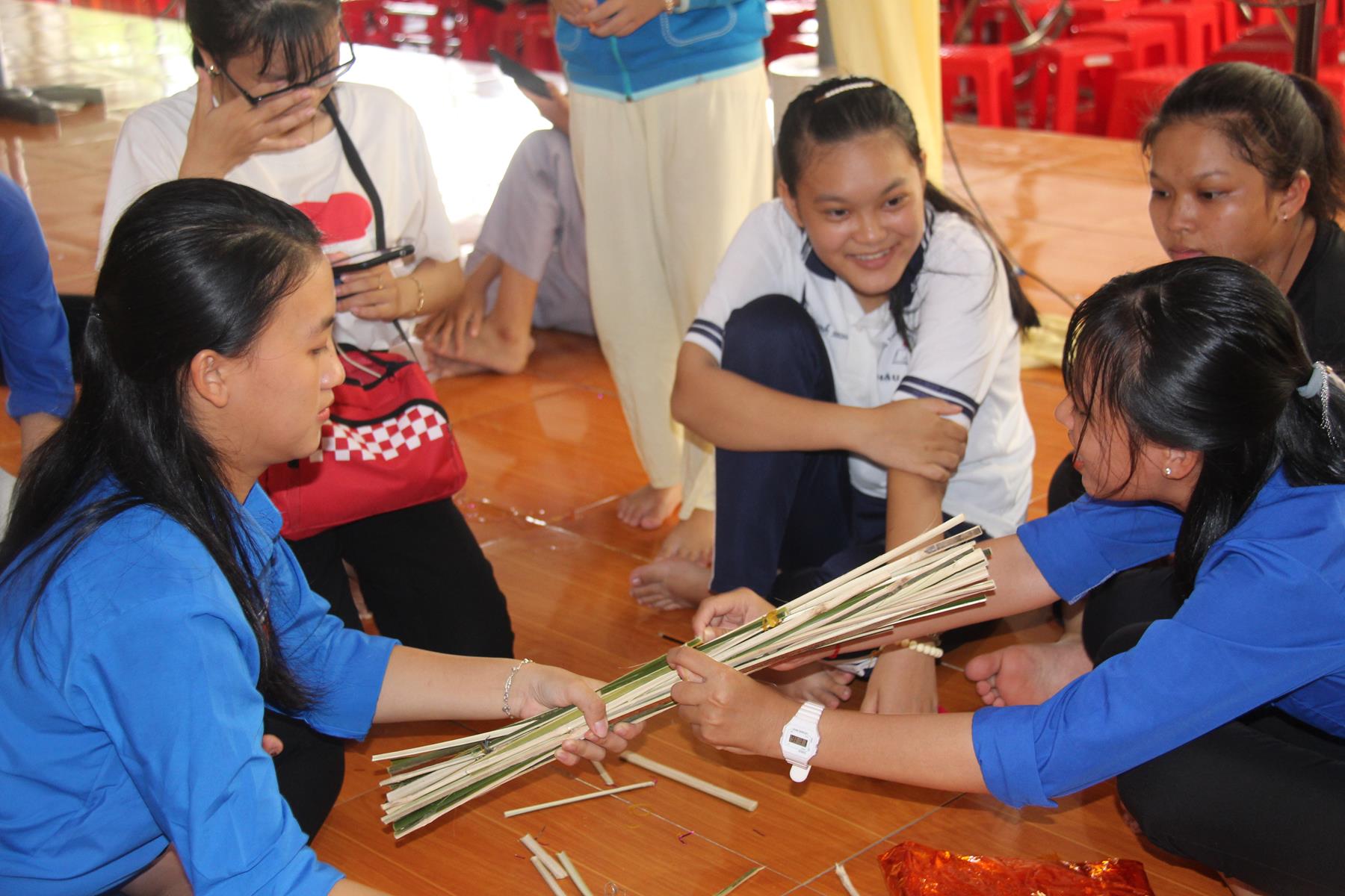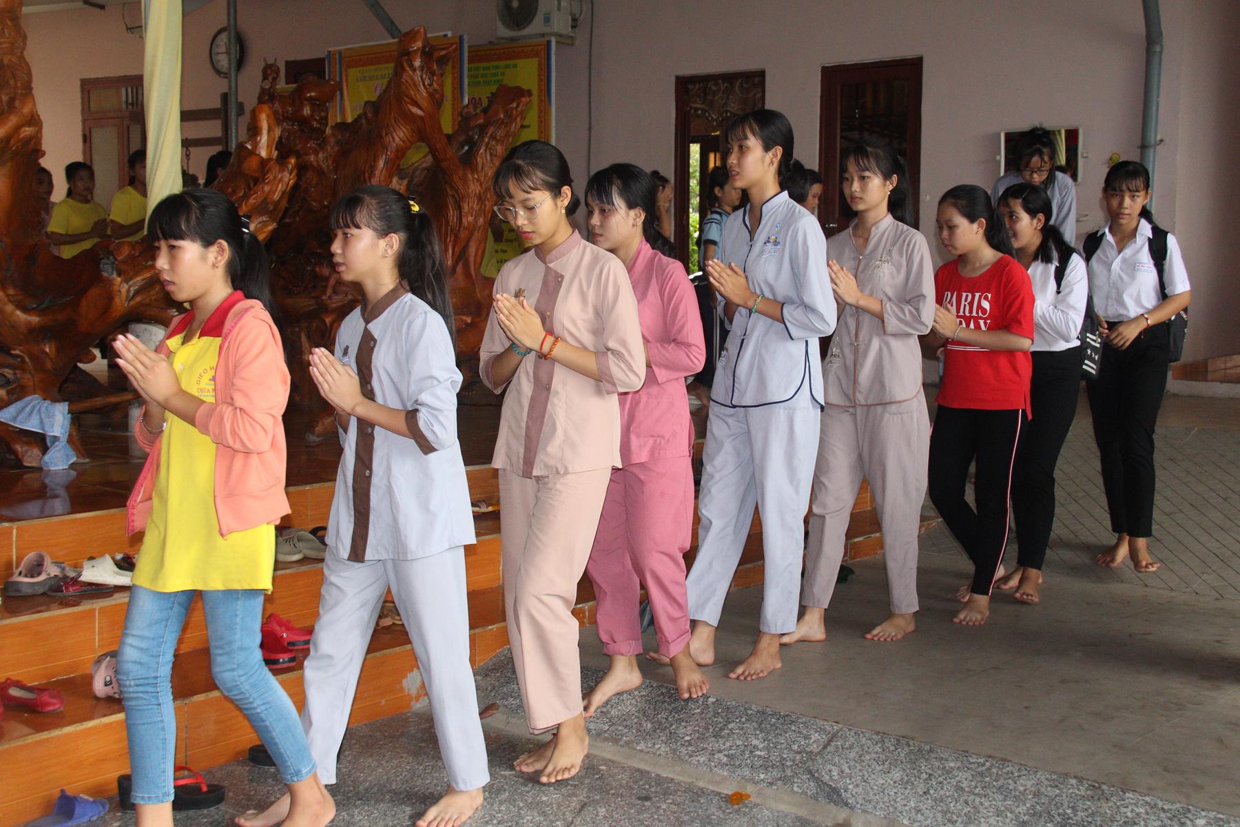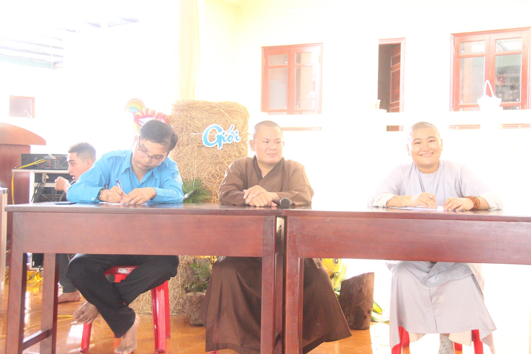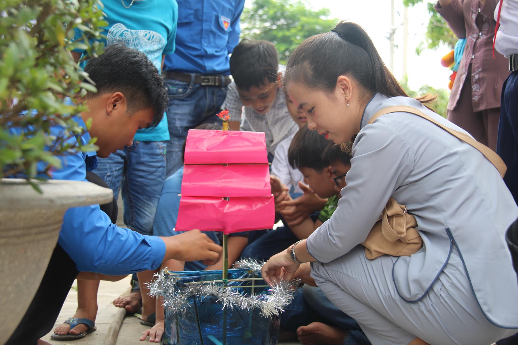 Buổi sáng các em tập trung về chùa làm quen với những nội quy căn bản để bắt đầu môn học kỹ năng, thực hành kỹ năng và tinh thần đồng đội trong sinh hoạt nhóm, bằng Hội thi làm Lồng đèn vui nhộn và sáng tạo, các em tự tạo cho nhóm của mình một chiếc lồng đèn xinh xắn, dễ thương nhờ sự trợ giúp của quý Thầy Cô và các anh chị.