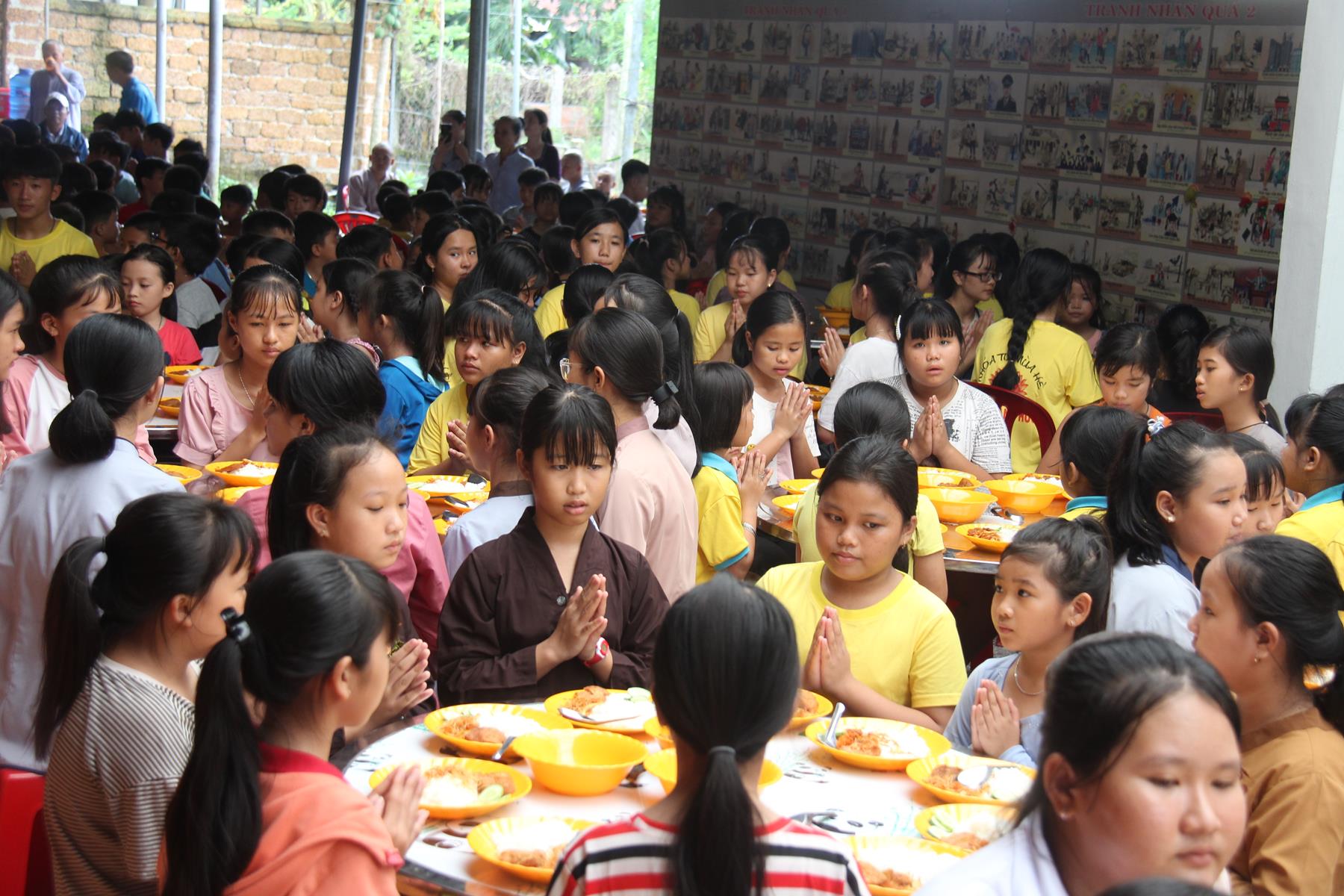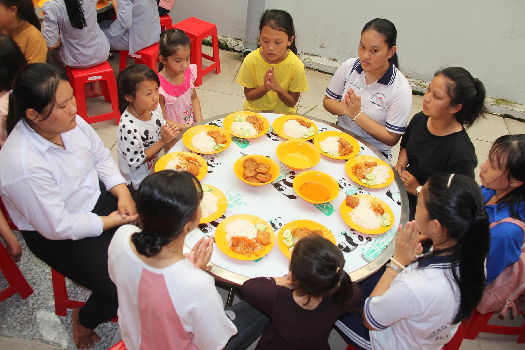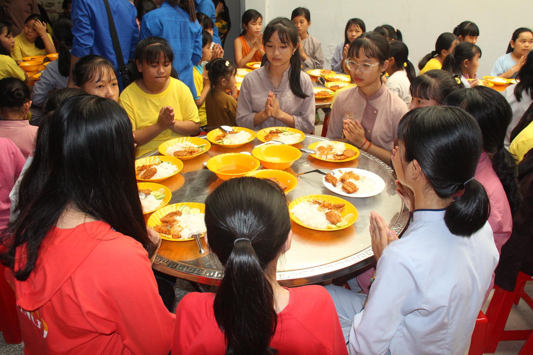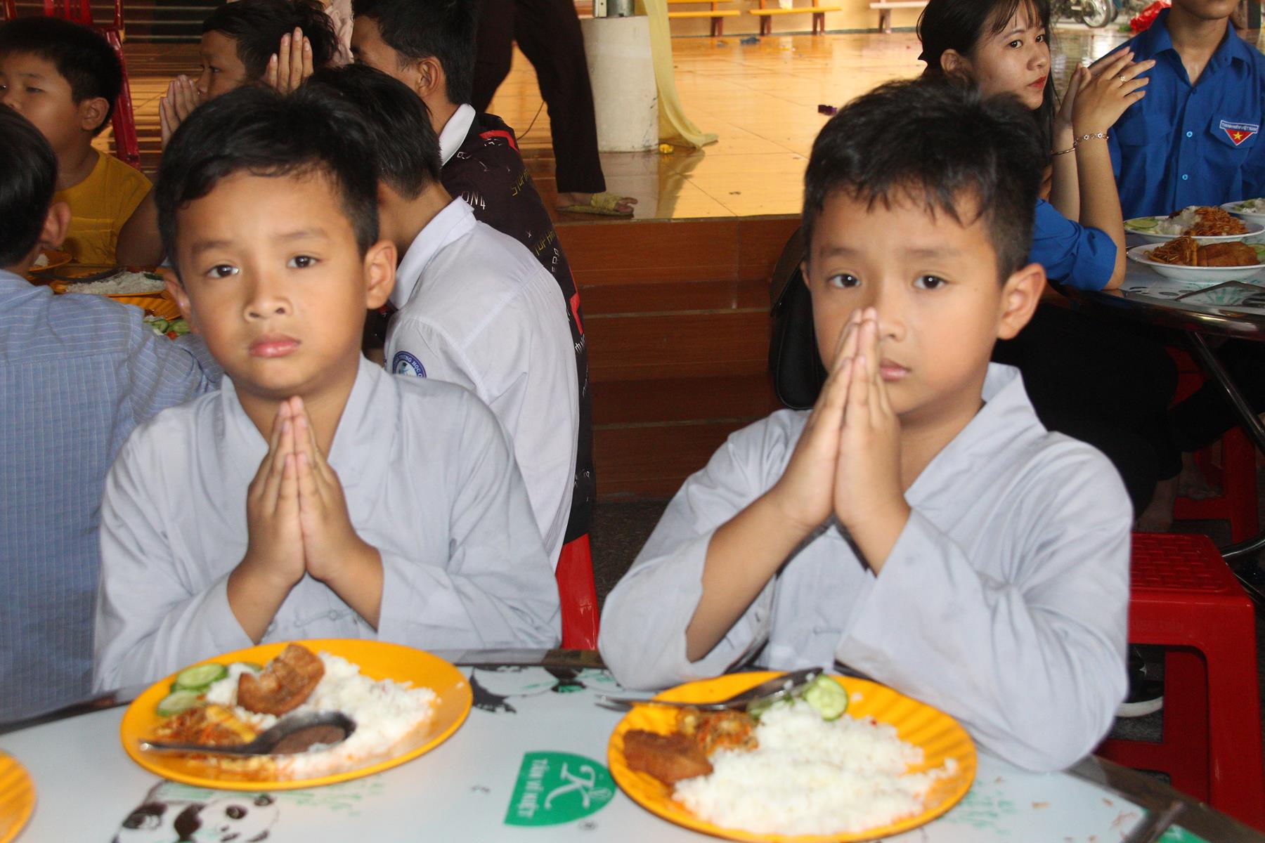 Buổi trưa các em lại quay quần ăn cơm với nhau thật dễ thương và ấm áp.