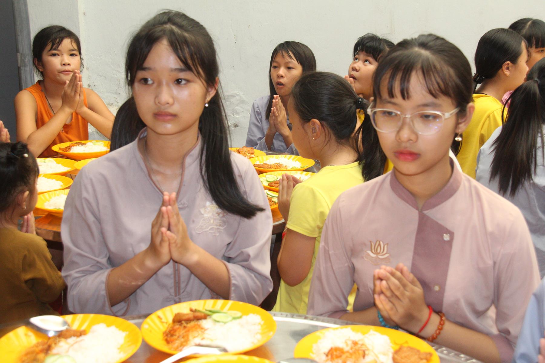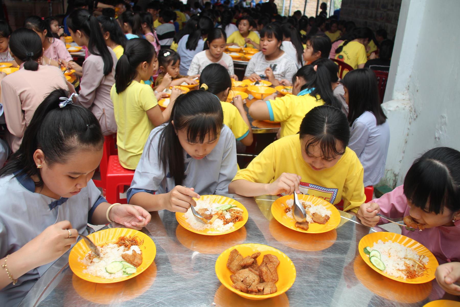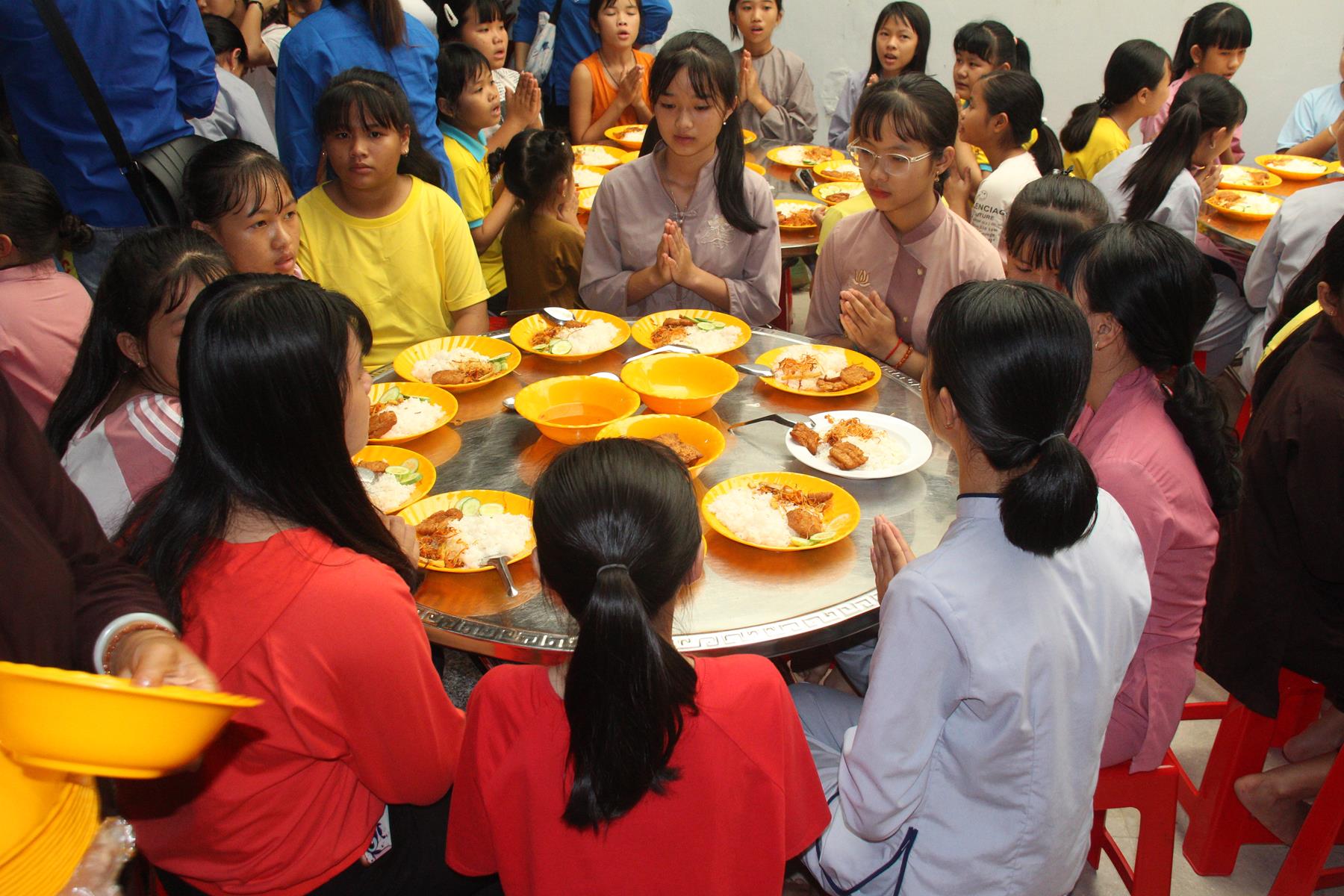 Buổi trưa các em lại quay quần ăn cơm với nhau thật dễ thương và ấm áp.