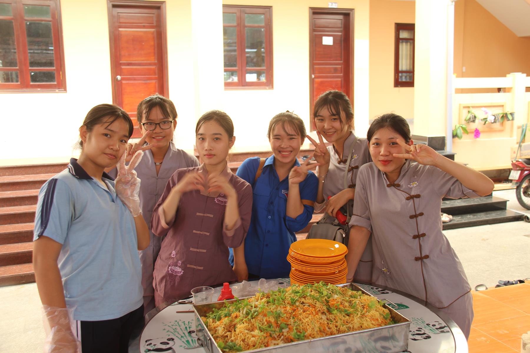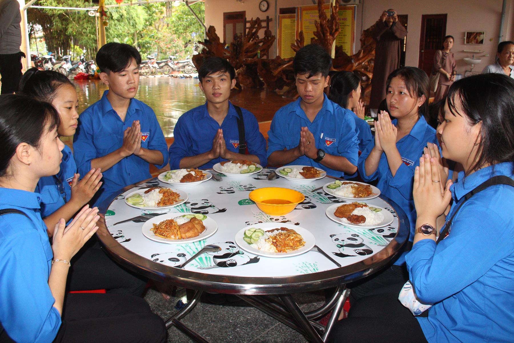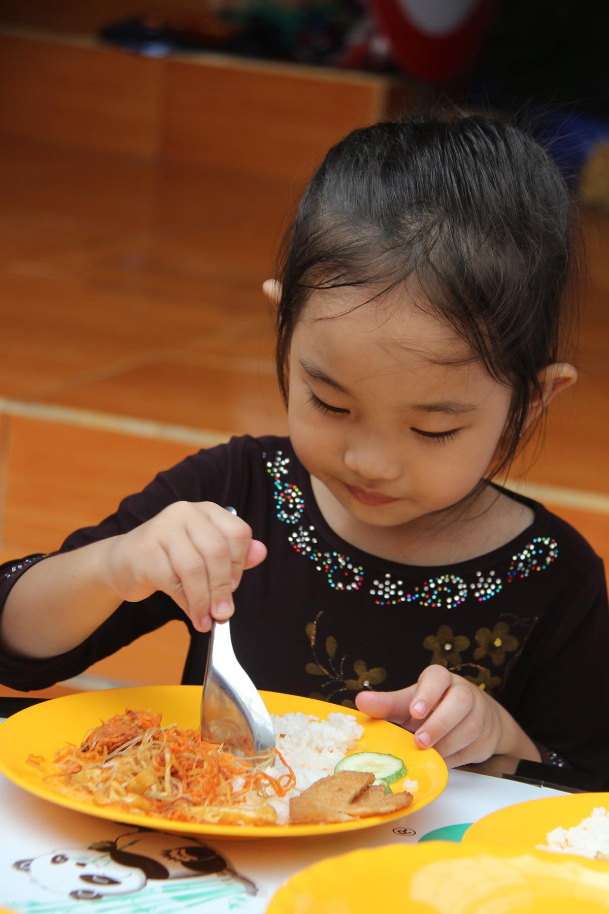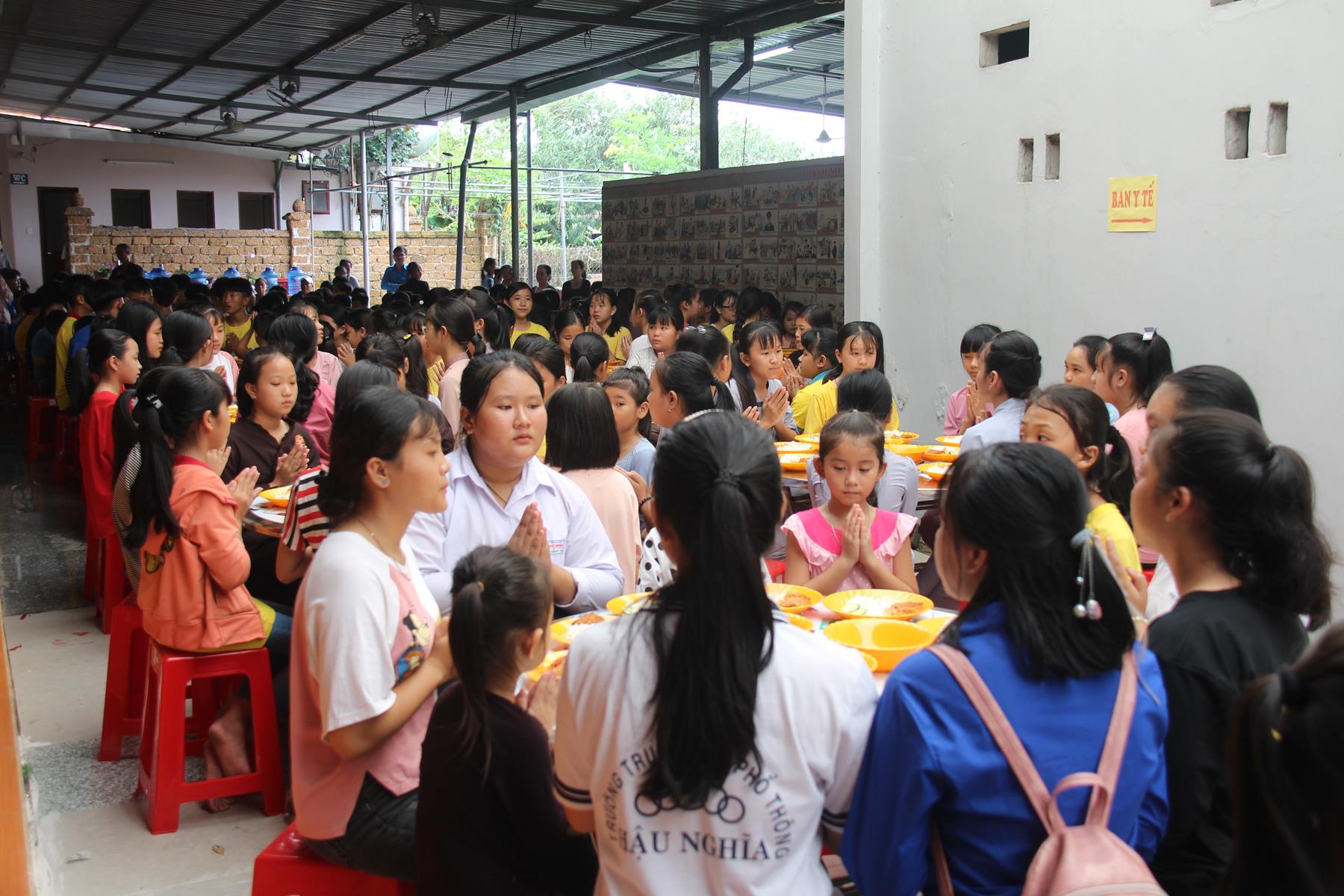 Buổi trưa các em lại quay quần ăn cơm với nhau thật dễ thương và ấm áp.