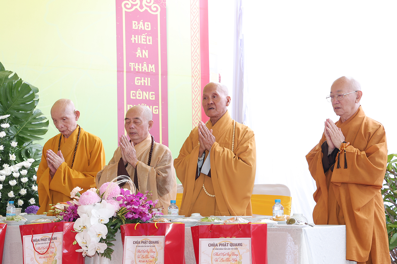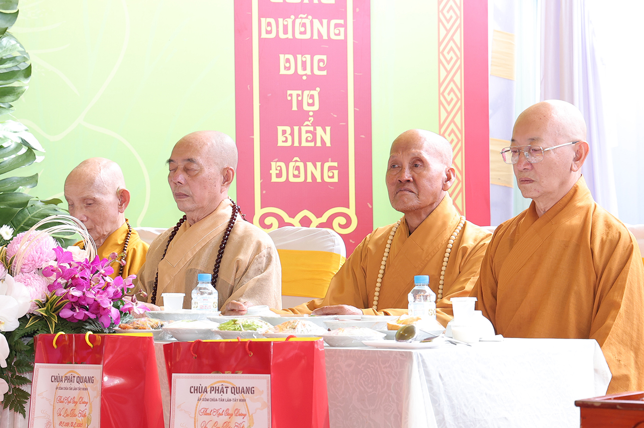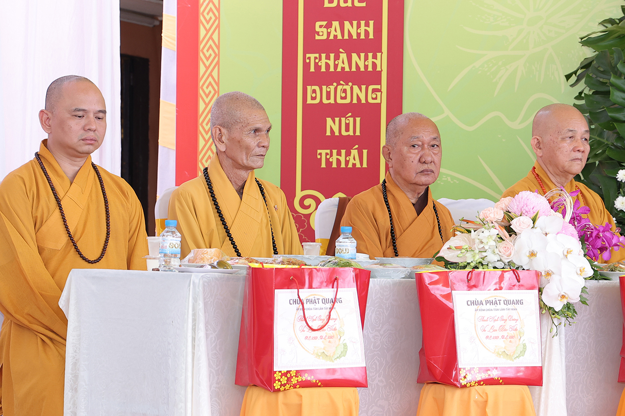 Chứng minh và tham dự buổi lễ có: HT Thích Minh Thiện – Ủy viên HĐTS, Phó Trưởng Ban Hoằng pháp TƯ, Chứng minh, Cố vấn BTS GHPGVN tỉnh Tây Ninh; HT Thích Giác Hạnh – CM BTS GHPGVN TPHCM; Hòa thượng Thích Tâm Nguyên – Viện chủ Tổ đình Linh Phước; Thượng tọa Thích Quảng Tâm – Ủy viên HĐTS, Phó Trưởng Ban TTXH TƯ, Trưởng BTS GHPGVN tỉnh Tây Ninh; ĐĐ. Thích Lệ Ngôn – Phó Trưởng ban kiêm Trưởng Ban Hoằng Pháp BTS PG Tỉnh Tây Ninh; ĐĐ Thích Thiện Danh – Phó Chánh Thư ký BTS GHPGVN tỉnh Tây Ninh;  ĐĐ. Thích Trí Minh – Uỷ viên Thường trực BTS GHPGVN tỉnh Tây Ninh, Trụ trì chùa Phật Quang ; ĐĐ. Thích Huệ Dũng- Uỷ viên Thường trực BTS GHPGVN tỉnh Tây Ninh TT. Thích Tâm Hướng – Uỷ viên BTS GHPGVN tỉnh Tây Ninh, Trụ trì Chùa Tào Khê; cùng Chư Tôn Hòa thượng, Thượng tọa, Ni trưởng, Ni sư, Chư tôn Thiền đức Tăng Phật giáo xã, thành phố lân cận,  cùng hơn 300 Phật tử trở về tham dự.