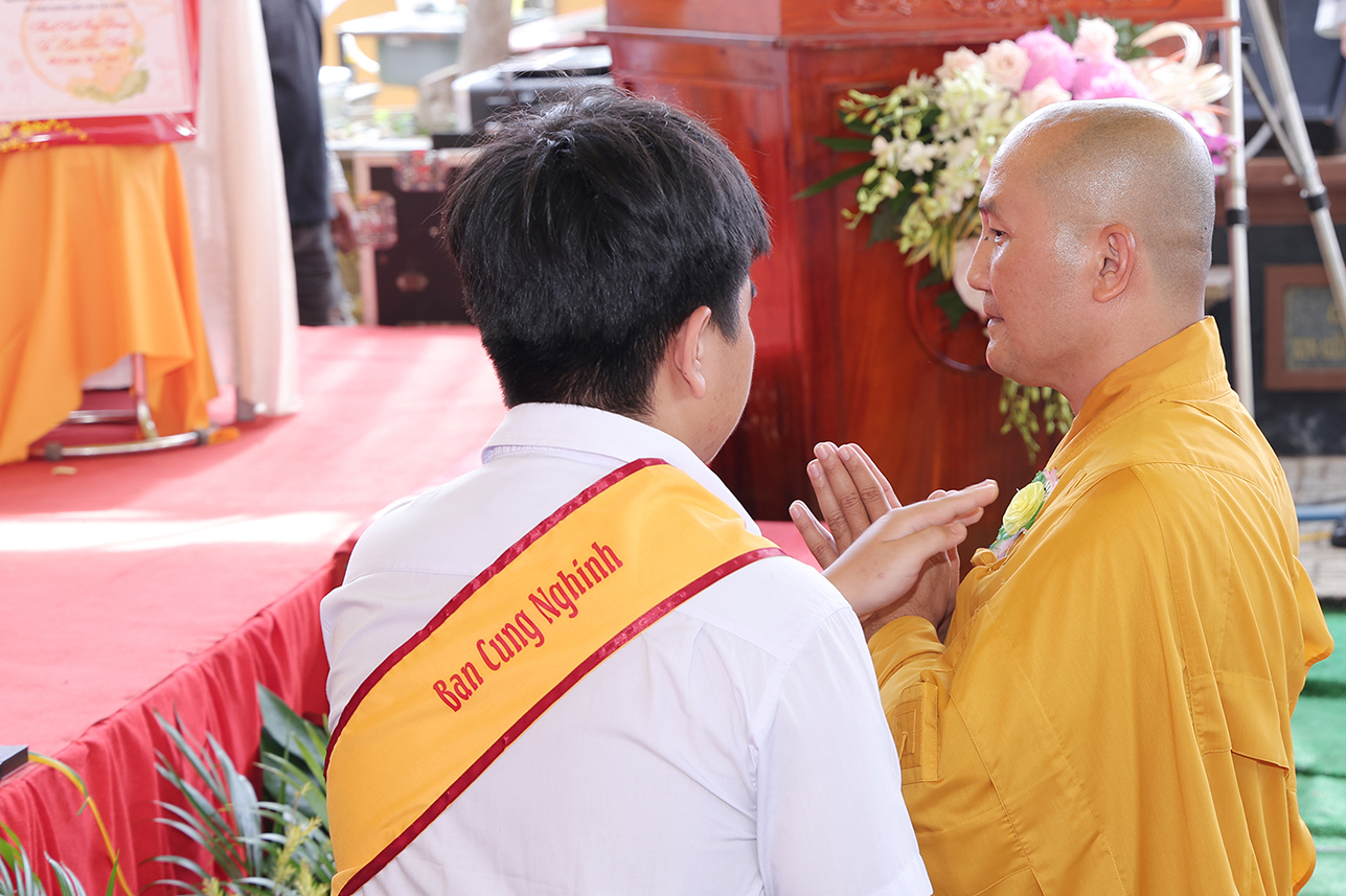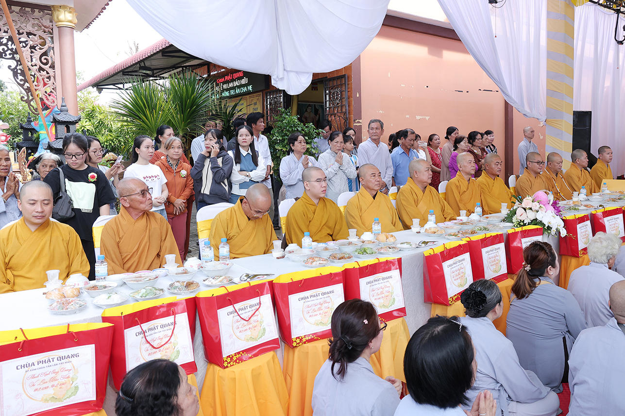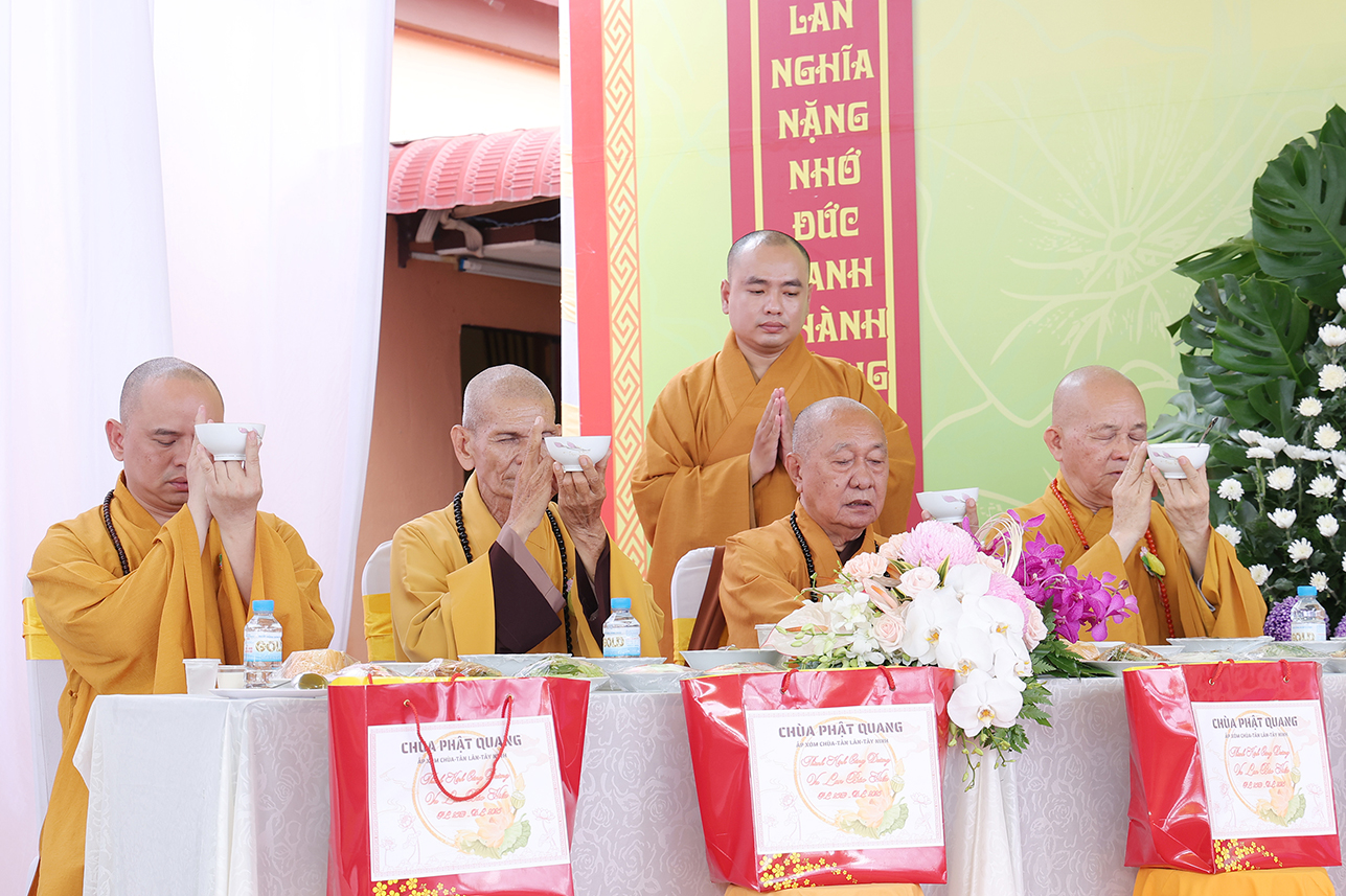 Chứng minh và tham dự buổi lễ có: HT Thích Minh Thiện – Ủy viên HĐTS, Phó Trưởng Ban Hoằng pháp TƯ, Chứng minh, Cố vấn BTS GHPGVN tỉnh Tây Ninh; HT Thích Giác Hạnh – CM BTS GHPGVN TPHCM; Hòa thượng Thích Tâm Nguyên – Viện chủ Tổ đình Linh Phước; Thượng tọa Thích Quảng Tâm – Ủy viên HĐTS, Phó Trưởng Ban TTXH TƯ, Trưởng BTS GHPGVN tỉnh Tây Ninh; ĐĐ. Thích Lệ Ngôn – Phó Trưởng ban kiêm Trưởng Ban Hoằng Pháp BTS PG Tỉnh Tây Ninh; ĐĐ Thích Thiện Danh – Phó Chánh Thư ký BTS GHPGVN tỉnh Tây Ninh;  ĐĐ. Thích Trí Minh – Uỷ viên Thường trực BTS GHPGVN tỉnh Tây Ninh, Trụ trì chùa Phật Quang ; ĐĐ. Thích Huệ Dũng- Uỷ viên Thường trực BTS GHPGVN tỉnh Tây Ninh TT. Thích Tâm Hướng – Uỷ viên BTS GHPGVN tỉnh Tây Ninh, Trụ trì Chùa Tào Khê; cùng Chư Tôn Hòa thượng, Thượng tọa, Ni trưởng, Ni sư, Chư tôn Thiền đức Tăng Phật giáo xã, thành phố lân cận,  cùng hơn 300 Phật tử trở về tham dự.