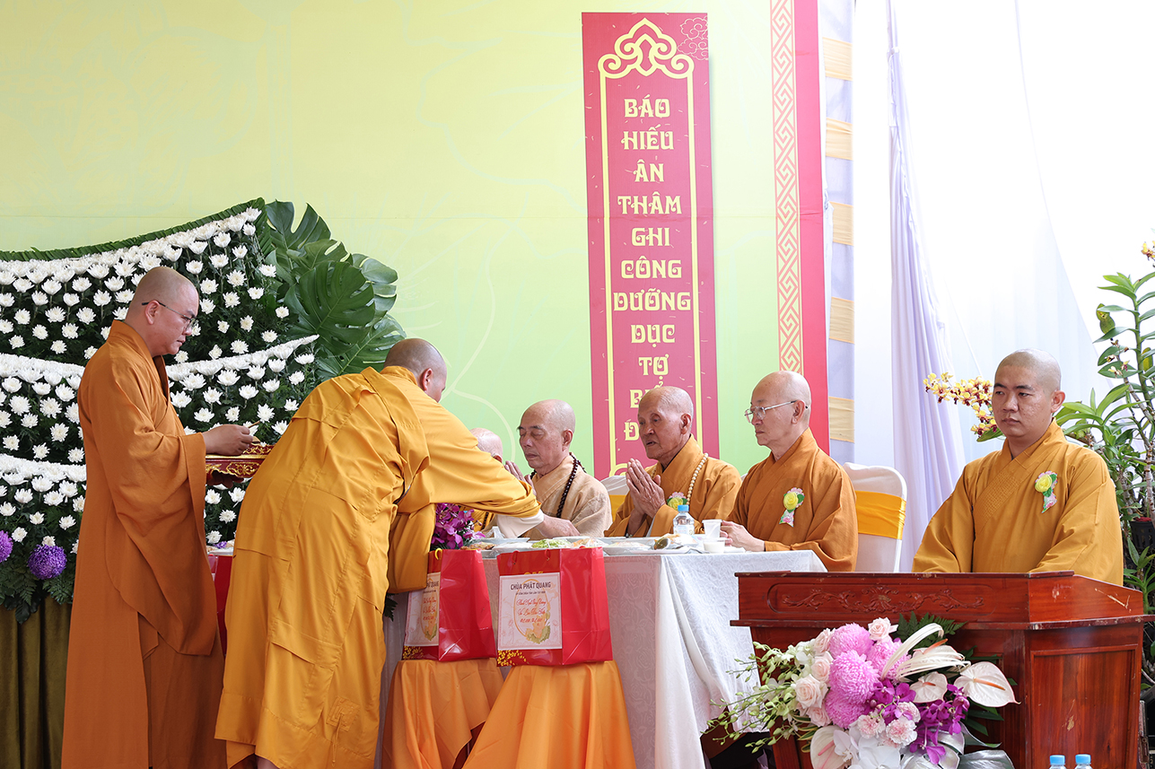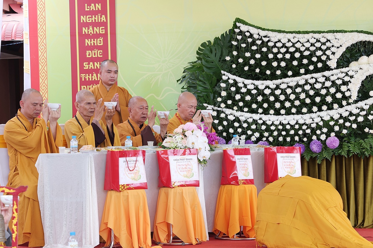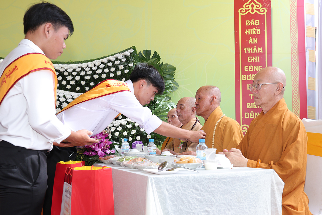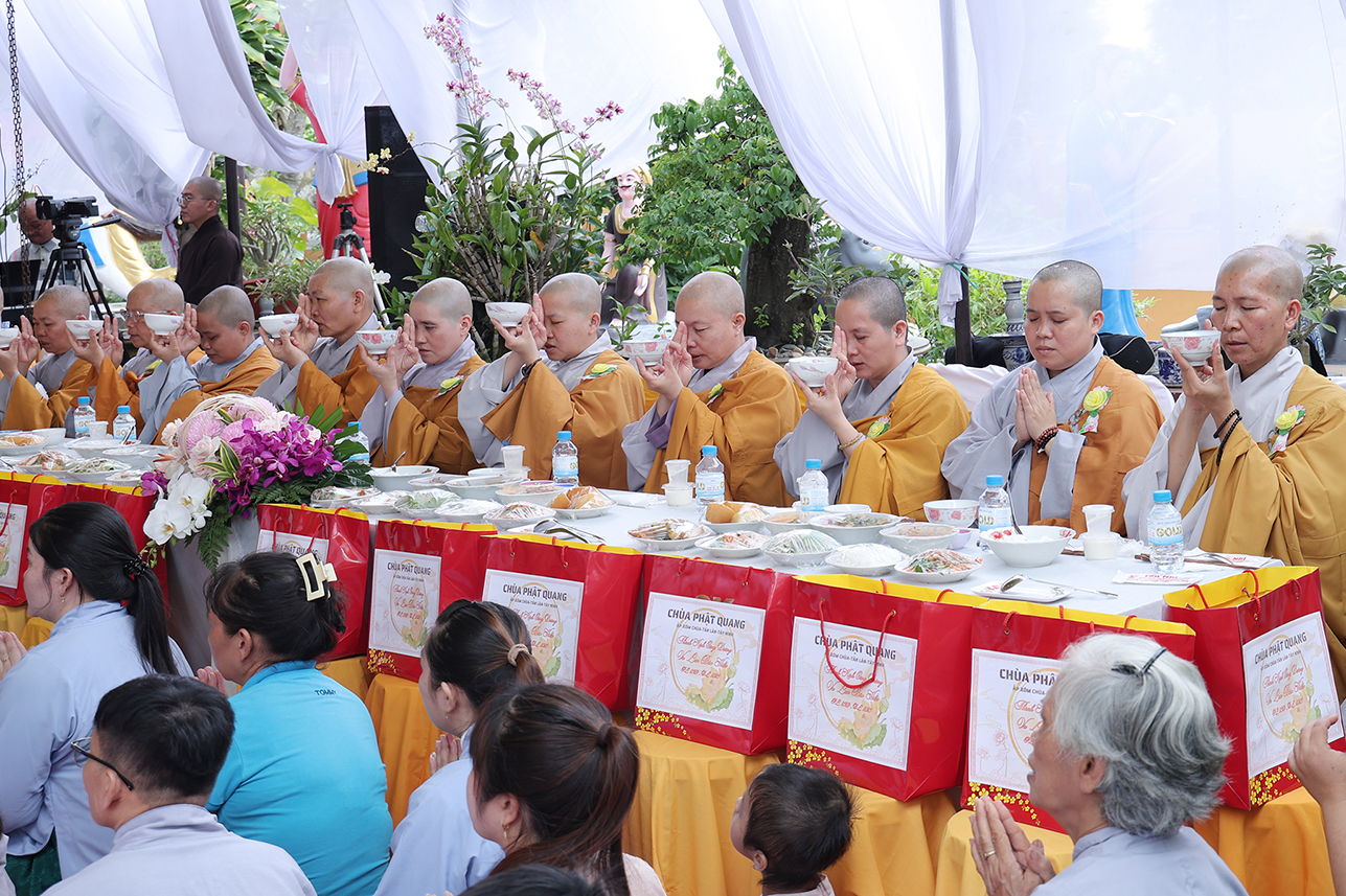 Chư Tôn đức đã cử hành nghi thức quá đường và thọ trai theo truyền thống Phật giáo Bắc truyền để hứa khả, nạp thọ tịnh vật cúng dường trong chánh pháp.