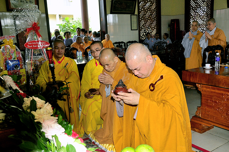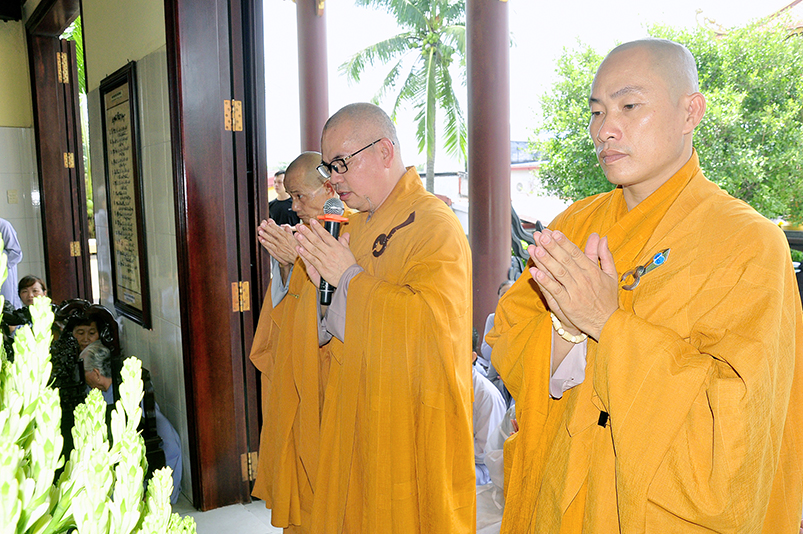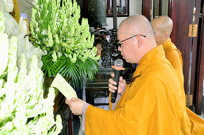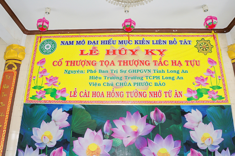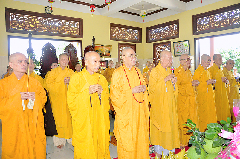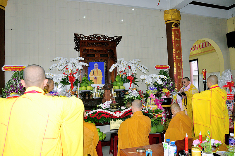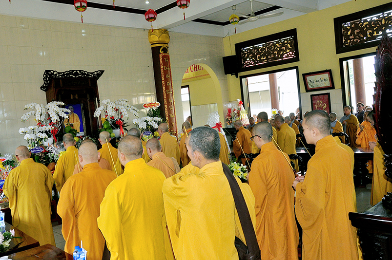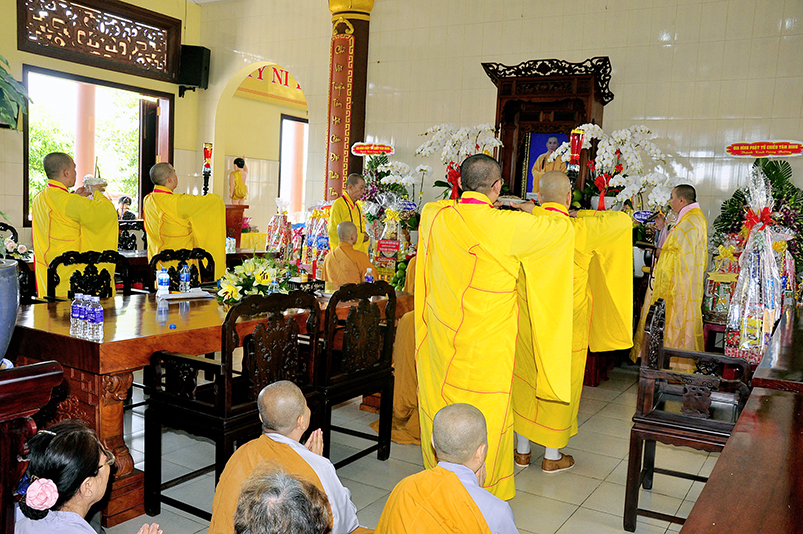 Buổi lễ diễn ra trang nghiêm, các phần nghi thức do chư Tôn đức Ban Kinh sư huyện Cần Giuộc đảm nhiệm. Đúng thời như pháp, Ban nghi lễ cung thỉnh chư Tôn đức nhị bộ quang lâm Giác linh đường dâng hương tưởng niệm Cố Thượng tọa thượng Tắc hạ Tựu – nguyên Phó Ban Trị sự GHPGVN, Trưởng Ban Giáo Dục Tăng Ni tỉnh Long An.