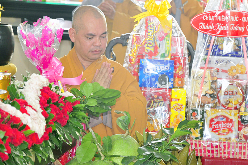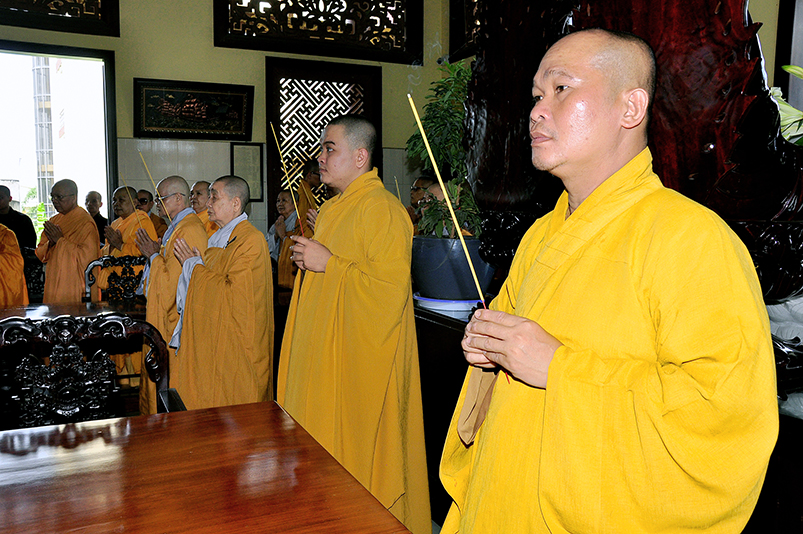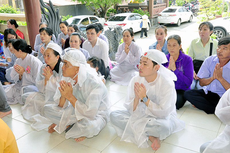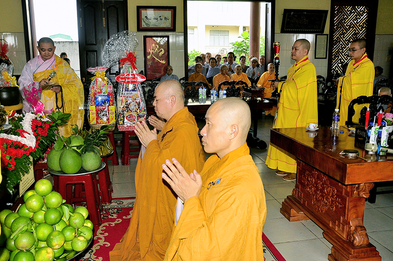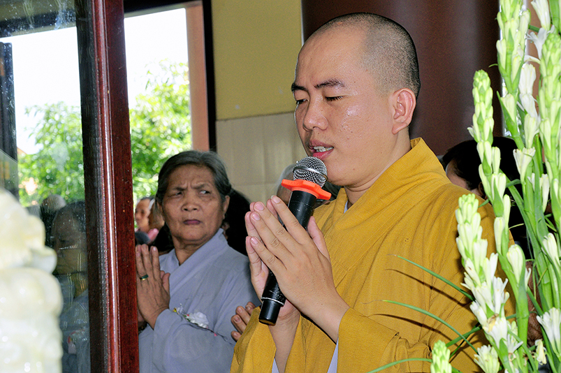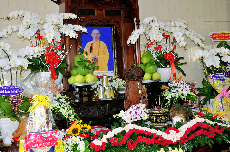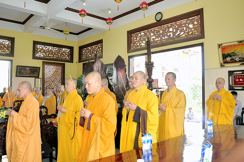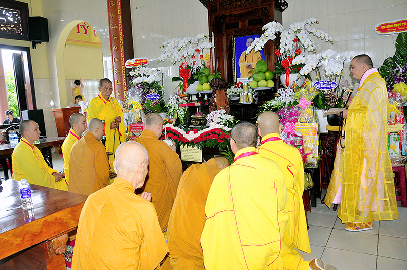 Buổi lễ diễn ra trang nghiêm, các phần nghi thức do chư Tôn đức Ban Kinh sư huyện Cần Giuộc đảm nhiệm. Đúng thời như pháp, Ban nghi lễ cung thỉnh chư Tôn đức nhị bộ quang lâm Giác linh đường dâng hương tưởng niệm Cố Thượng tọa thượng Tắc hạ Tựu – nguyên Phó Ban Trị sự GHPGVN, Trưởng Ban Giáo Dục Tăng Ni tỉnh Long An.