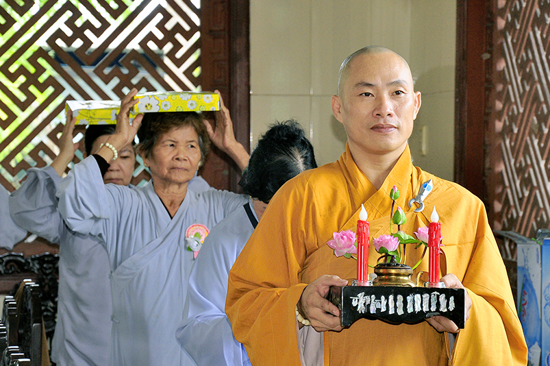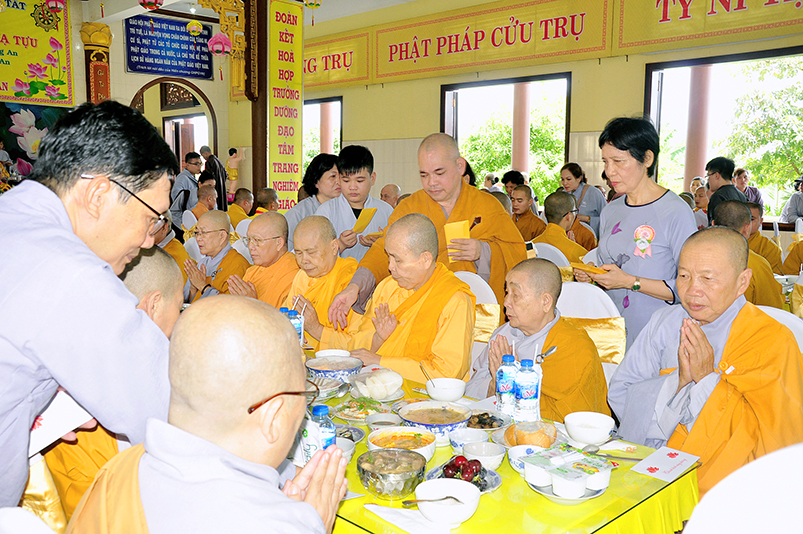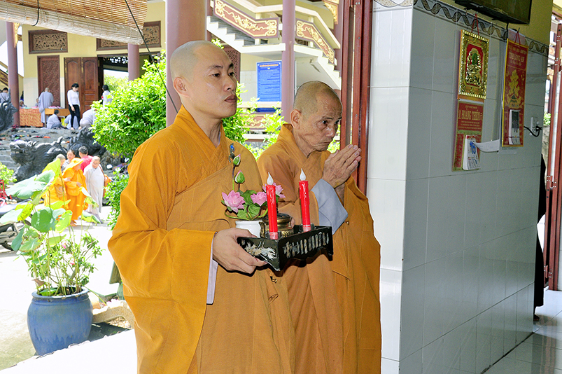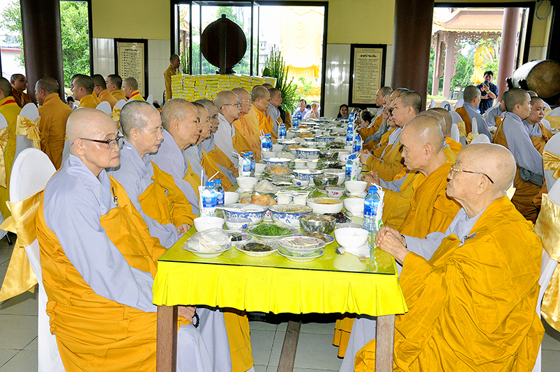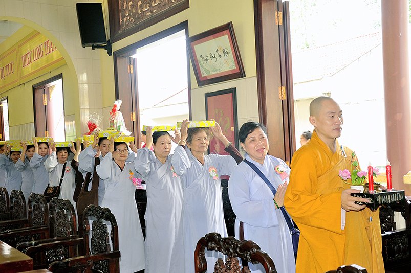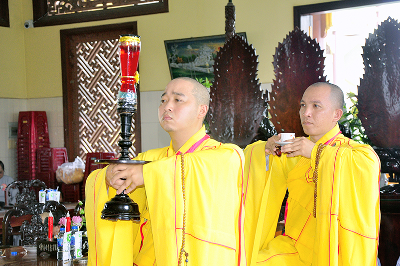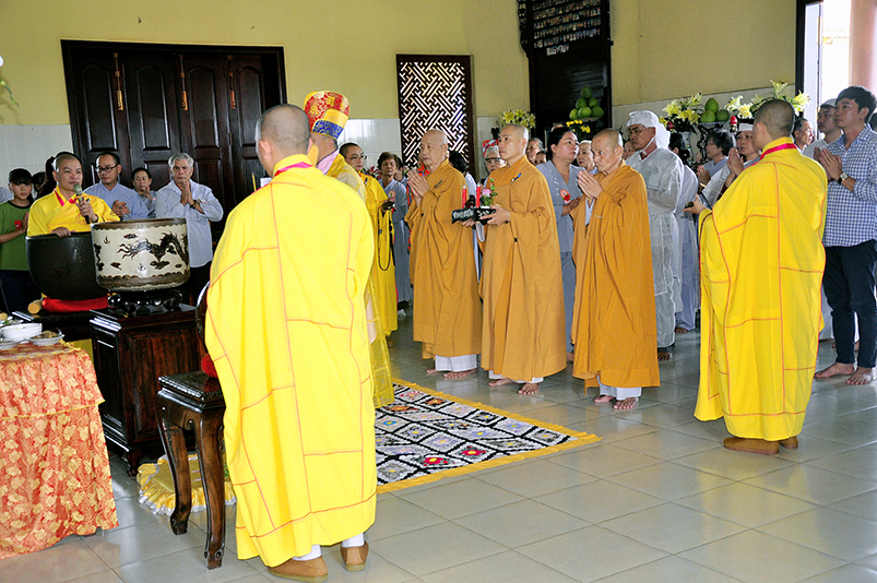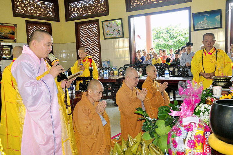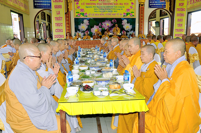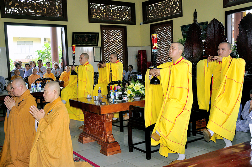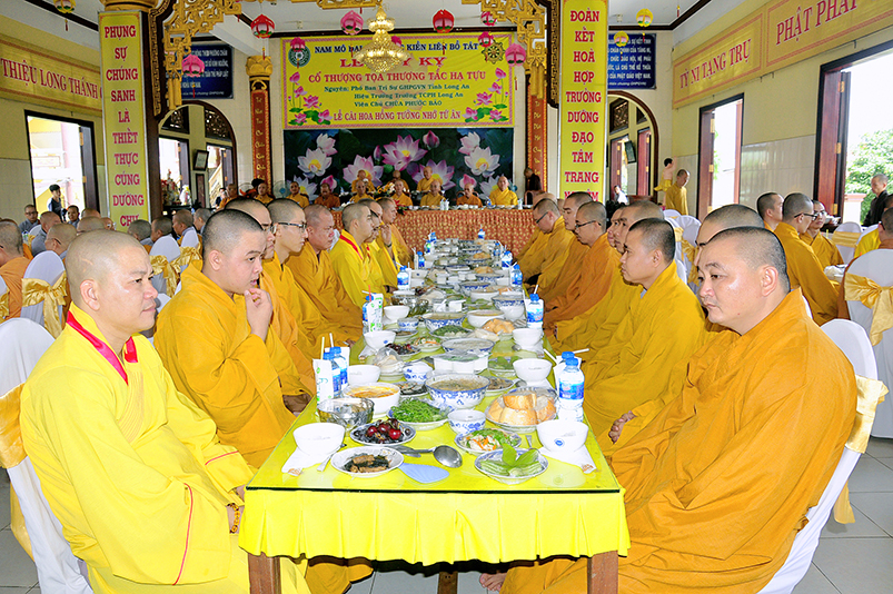 Nghi thức trai đường do HT. Thích Thiện Tài – Phó Ban Trị sự Phật giáo, Trưởng Ban nghi lễ Phật giáo tỉnh Long An đảm nhiệm.Các Phật tử cung kính nhiễu hành dâng y cúng dường chư Tôn đức. Buổi lễ kết thúc vào lúc 11g30.