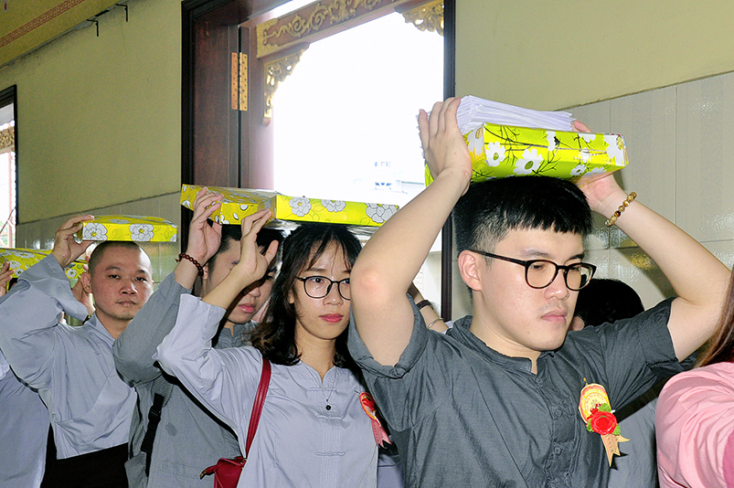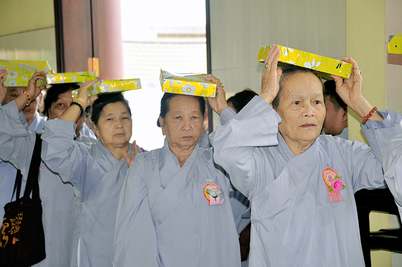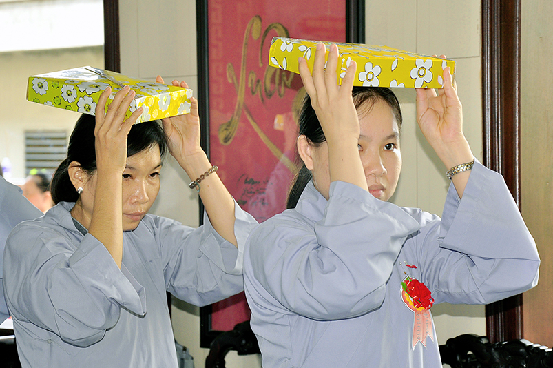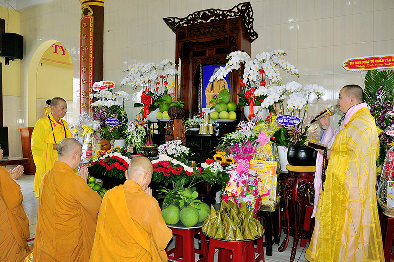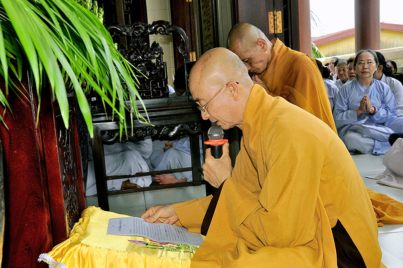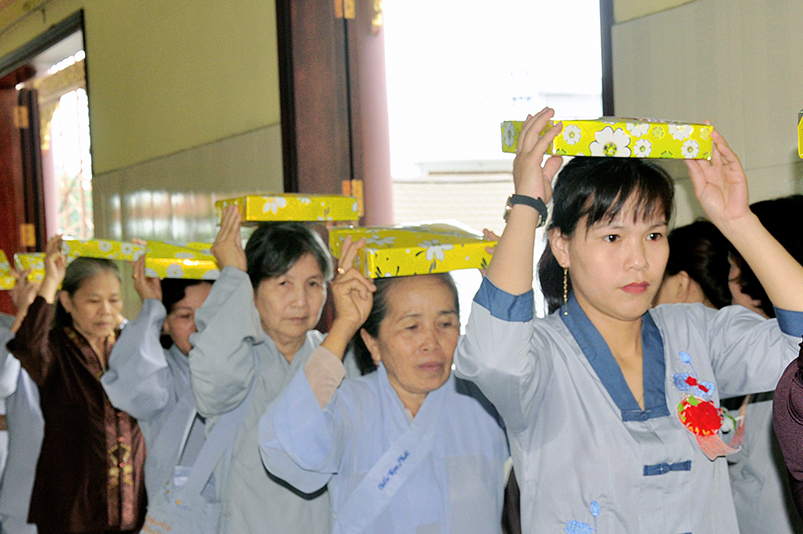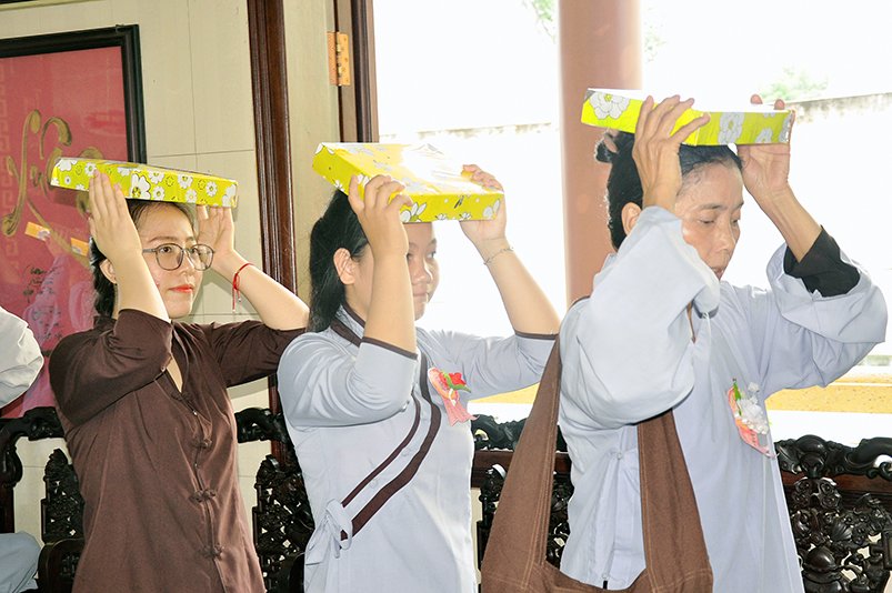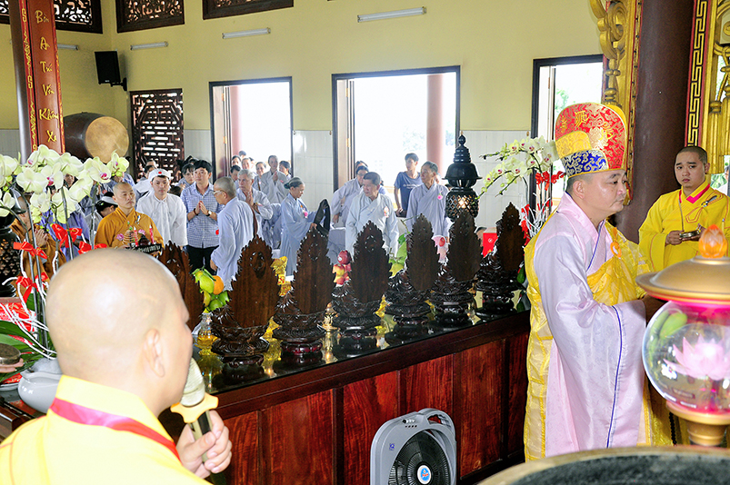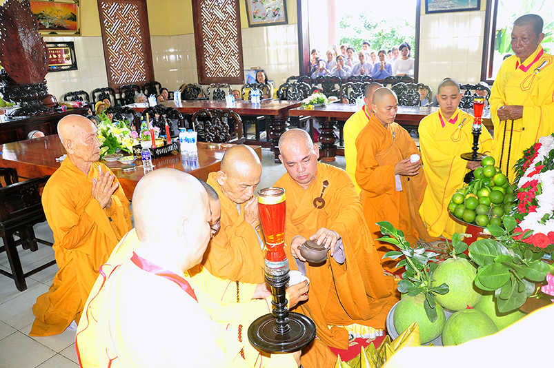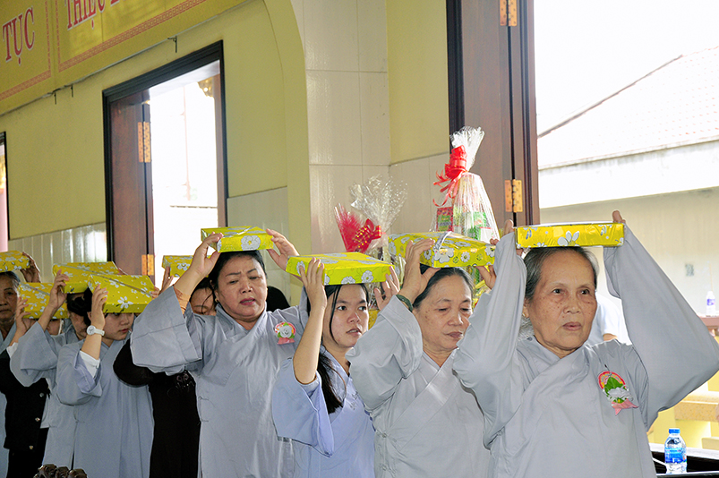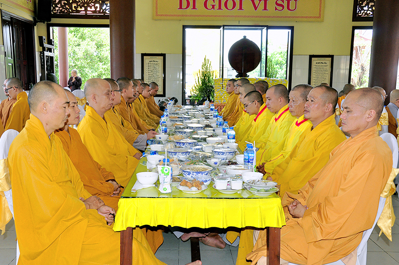 Nghi thức trai đường do HT. Thích Thiện Tài – Phó Ban Trị sự Phật giáo, Trưởng Ban nghi lễ Phật giáo tỉnh Long An đảm nhiệm.Các Phật tử cung kính nhiễu hành dâng y cúng dường chư Tôn đức. Buổi lễ kết thúc vào lúc 11g30.