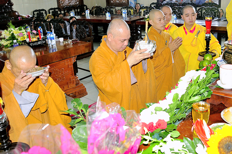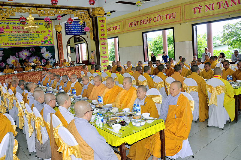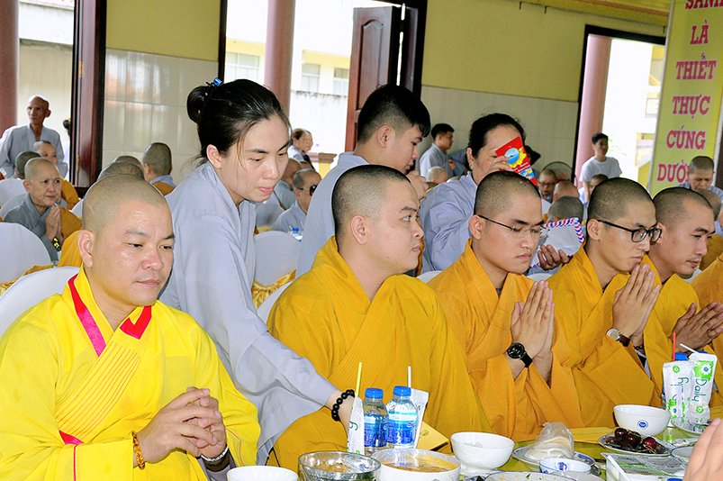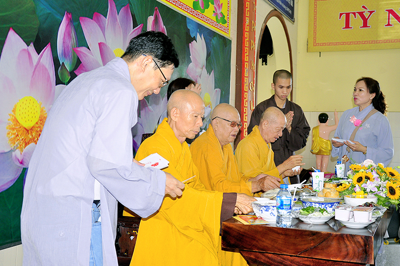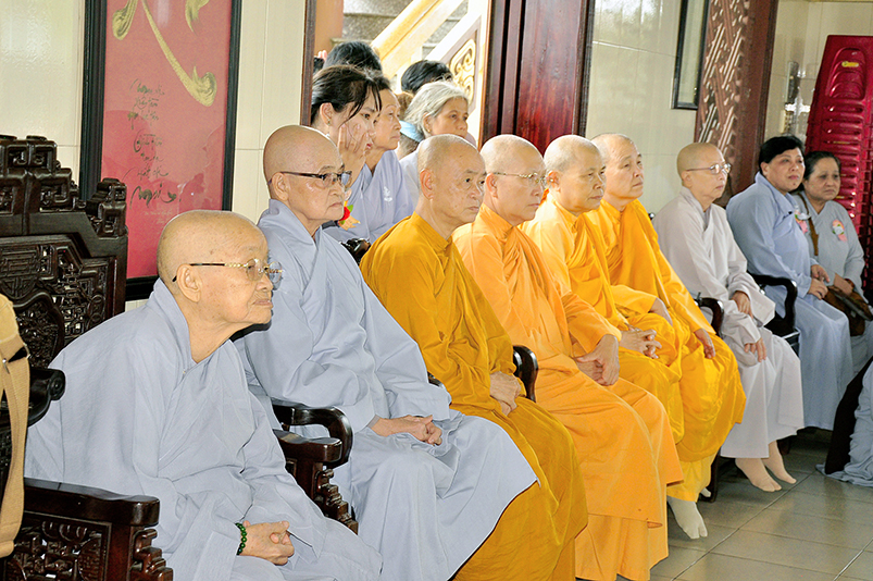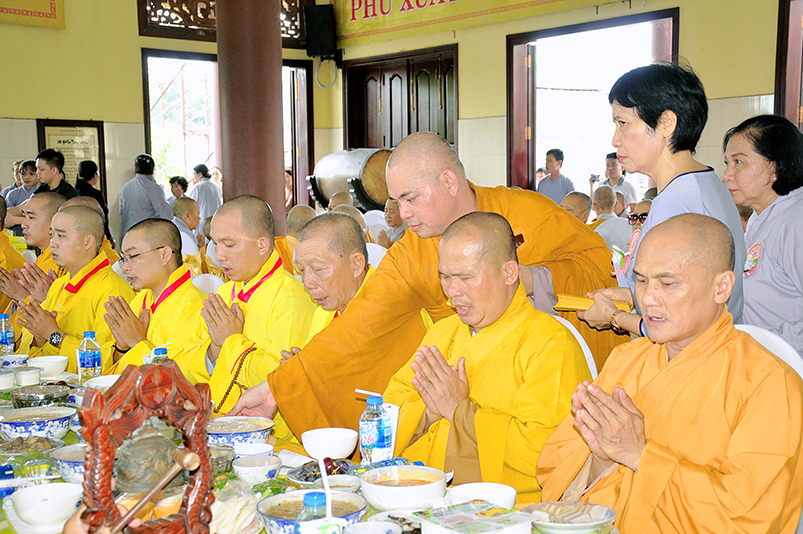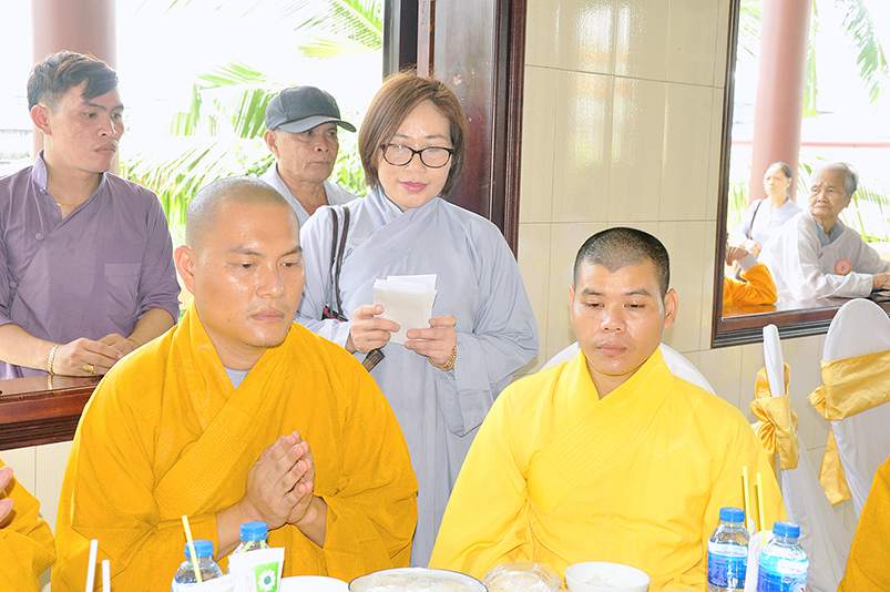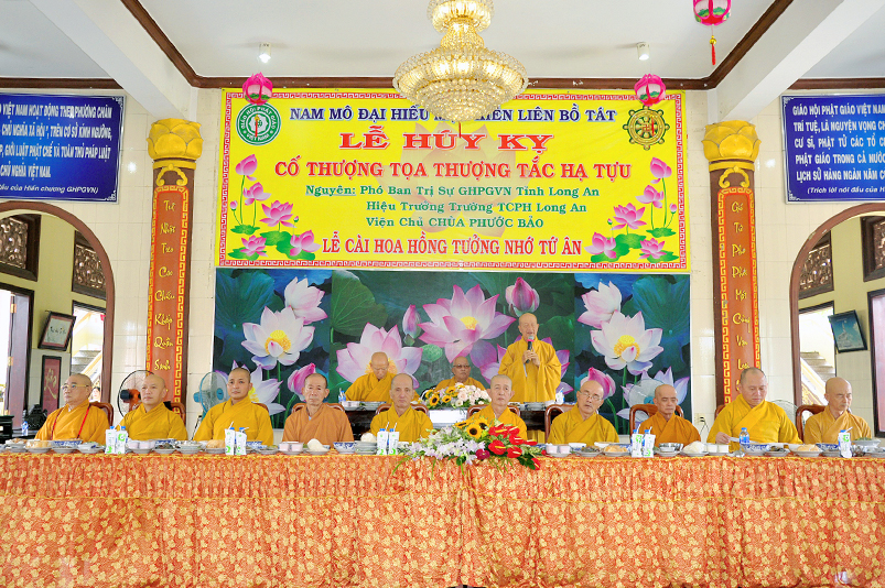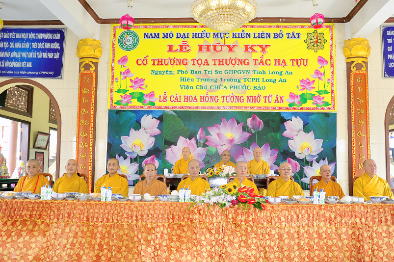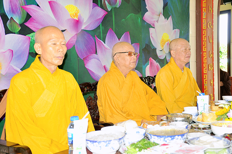 Tiếp đó, Pháp quyến cung thỉnh chư Tôn đức Thường trực Ban Trị sự GHPGVN tỉnh Long An: HT. Thích Huệ Hồng, HT. Thích Thiện Tài, Đại đức Thích Lệ Duyên v.v., chư Tôn đức Thường trực Ban Trị sự GHPGVN huyện Bến Lức, chư Tôn đức Tông phái Thiên Thai Giáo Quán tông: HT. Thích Tắc Lãnh, HT. Thích Tắc Phi, HT. Thích Lãng Huỳnh v.v. đồng thân lâm chứng dự trai đường.