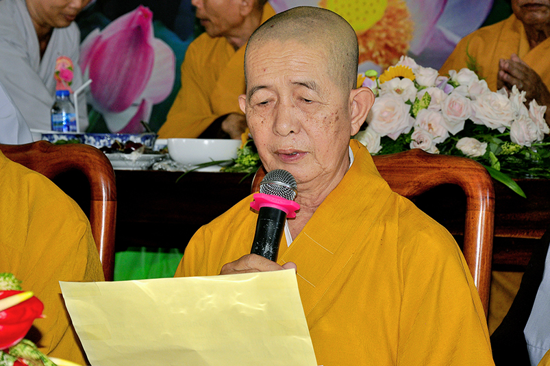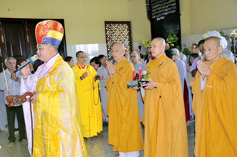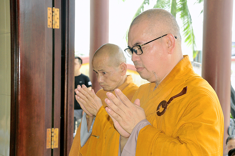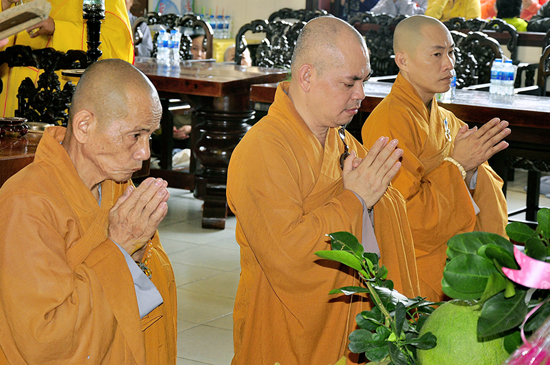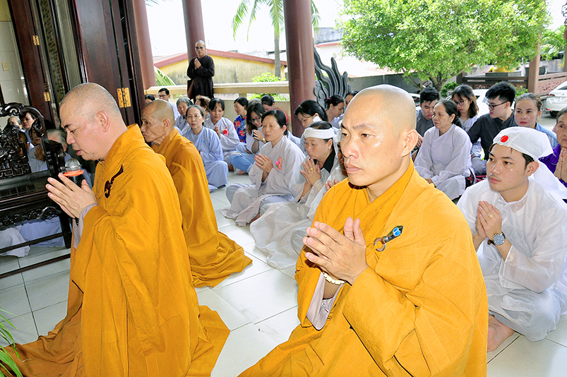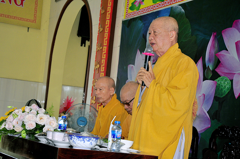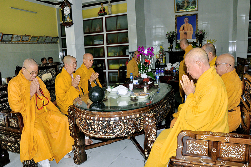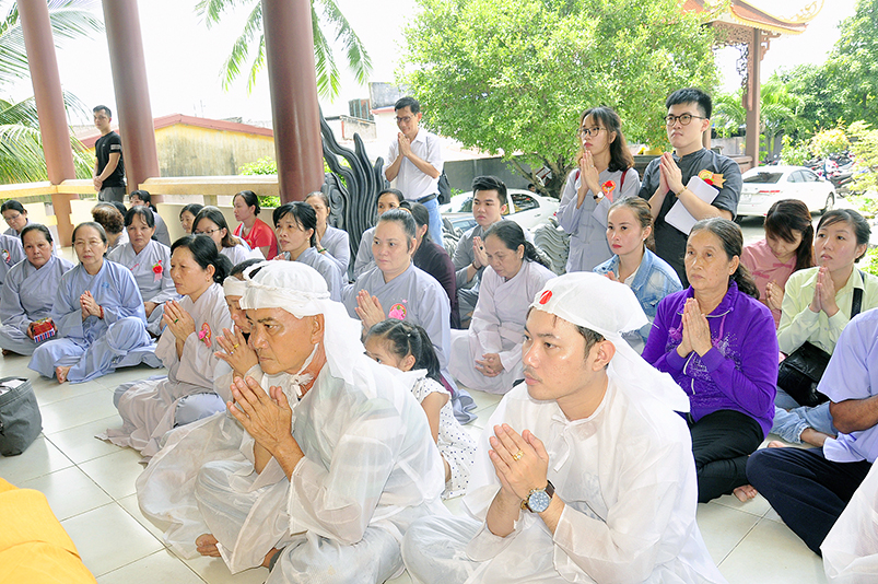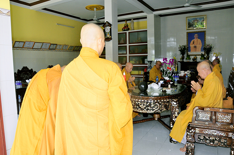 Tiếp đó, Pháp quyến cung thỉnh chư Tôn đức Thường trực Ban Trị sự GHPGVN tỉnh Long An: HT. Thích Huệ Hồng, HT. Thích Thiện Tài, Đại đức Thích Lệ Duyên v.v., chư Tôn đức Thường trực Ban Trị sự GHPGVN huyện Bến Lức, chư Tôn đức Tông phái Thiên Thai Giáo Quán tông: HT. Thích Tắc Lãnh, HT. Thích Tắc Phi, HT. Thích Lãng Huỳnh v.v. đồng thân lâm chứng dự trai đường.