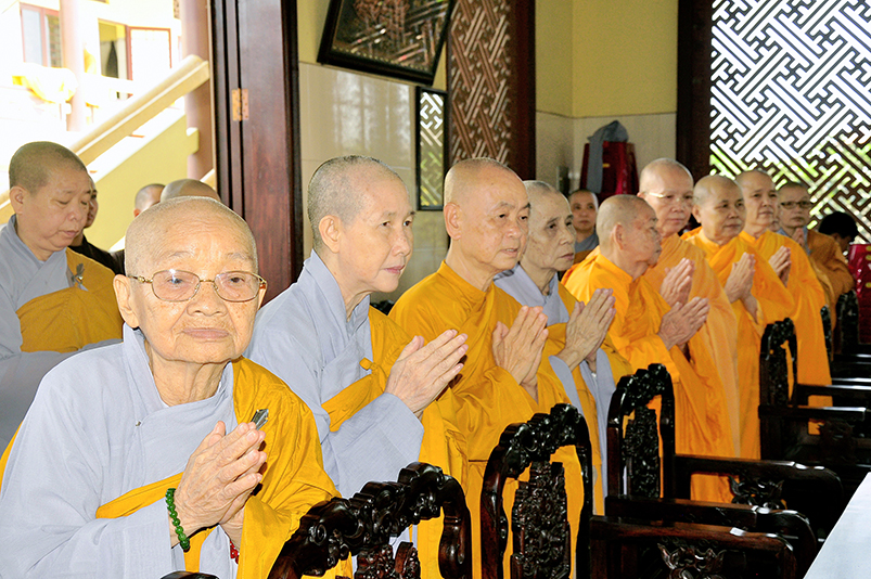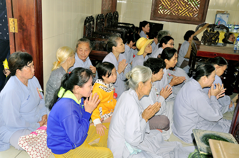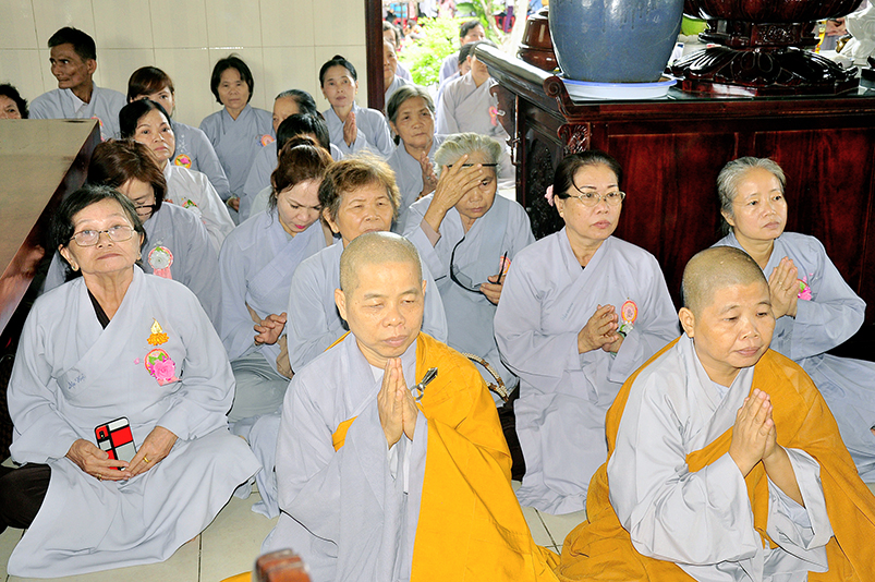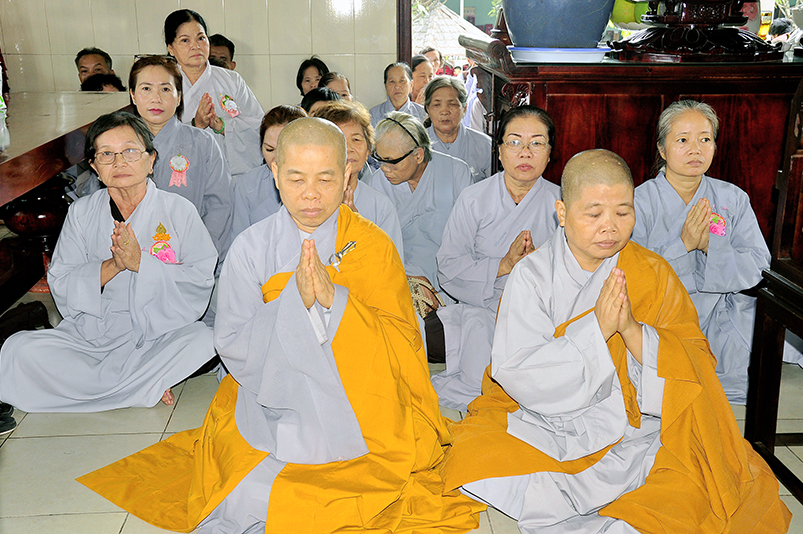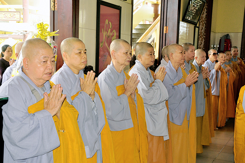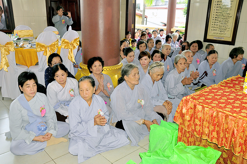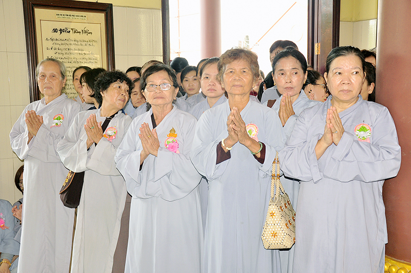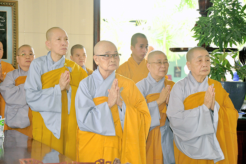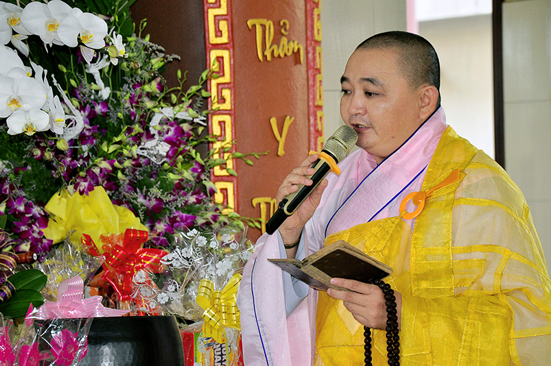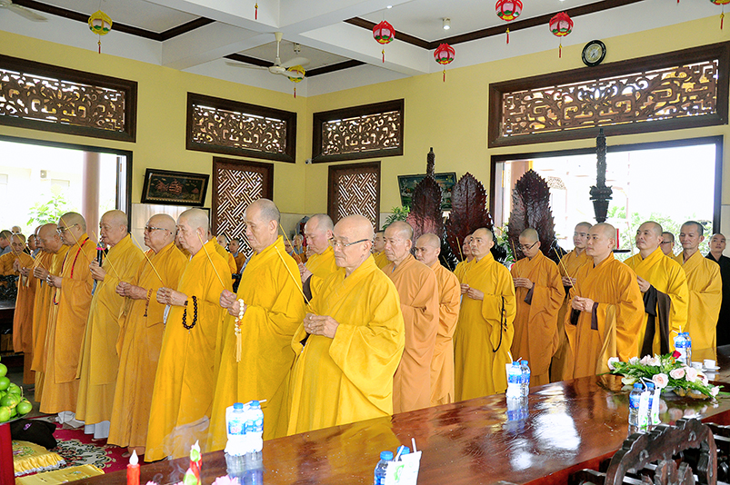 Tiếp đó, Pháp quyến cung thỉnh chư Tôn đức Thường trực Ban Trị sự GHPGVN tỉnh Long An: HT. Thích Huệ Hồng, HT. Thích Thiện Tài, Đại đức Thích Lệ Duyên v.v., chư Tôn đức Thường trực Ban Trị sự GHPGVN huyện Bến Lức, chư Tôn đức Tông phái Thiên Thai Giáo Quán tông: HT. Thích Tắc Lãnh, HT. Thích Tắc Phi, HT. Thích Lãng Huỳnh v.v. đồng thân lâm chứng dự trai đường.