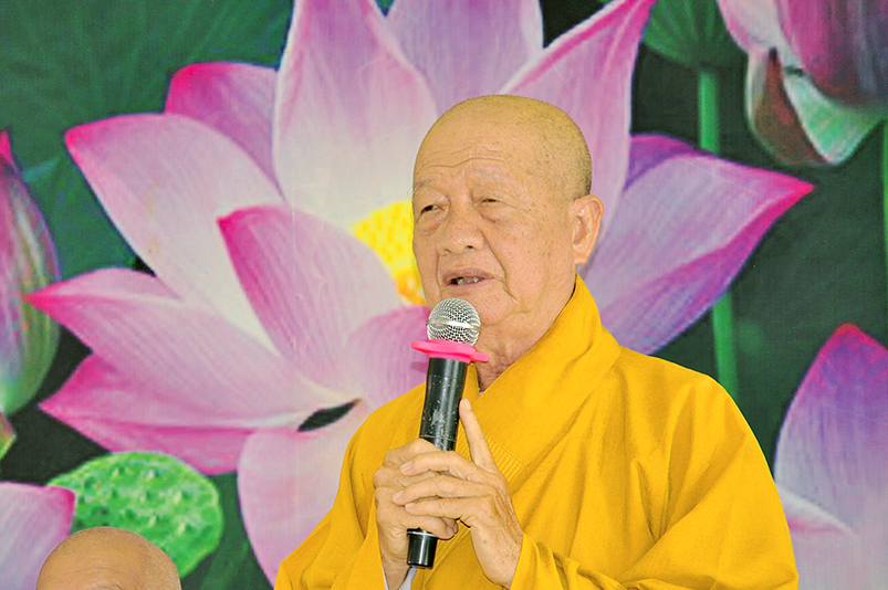 Chứng minh buổi lễ, Hòa thượng Thích Tắc Lãnh – Tông trưởng Tông phái Thiên Thai ân cần ban đạo từ tán dương khích lệ pháp quyến môn đệ và thán thán đạo tâm của các vị Phật tử đã phát tâm ủng hộ đạo tràng Phước Bảo; hộ trì Phật pháp đúng theo bổn phận của người Phật tử tại gia, thiết thực vâng hành giáo lý Phật Đà, nhất tâm hộ trì Tam Bảo, cúng dường tri ân Cha Mẹ mùa Vu Lan Báo hiếu. Hòa thượng chúc nguyện đạo tràng ngày càng phát triển, các Phật tử an lành trong ánh hào quang của Đức Từ phụ Thích Ca.