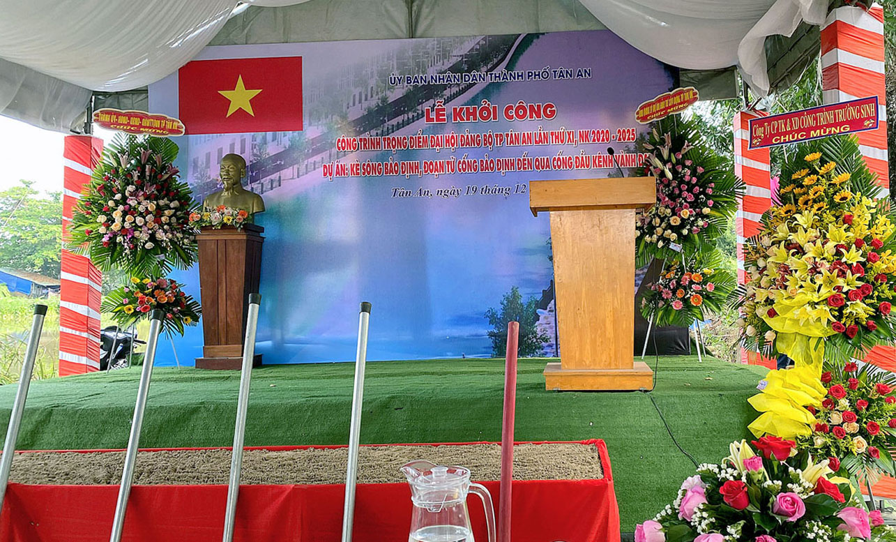 Dự án Kè sông Bảo Định (đoạn từ cống Bảo Định đến qua cống đầu kênh Vành đai) là 1 trong 3 công trình trọng điểm mà Đại hội Đảng bộ TP.Tân An, lần thứ XI, nhiệm kỳ 2020 – 2025 đề ra. Dự án gồm các hạng mục: Xây dựng kè và công viên sau kè, các hệ thống hạ tầng kỹ thuật. Công trình sau khi hoàn thành góp phần chỉnh trang đô thị, chống sạt lỡ bờ sông Bảo Định, tạo trục cảnh quang xanh – sạch – đẹp dọc ven hai bờ sông Bảo Định, góp phần đạt các tiêu chí đô thị loại I vào năm 2025 theo hướng đô thị thân thiện, văn minh, hiện đại.