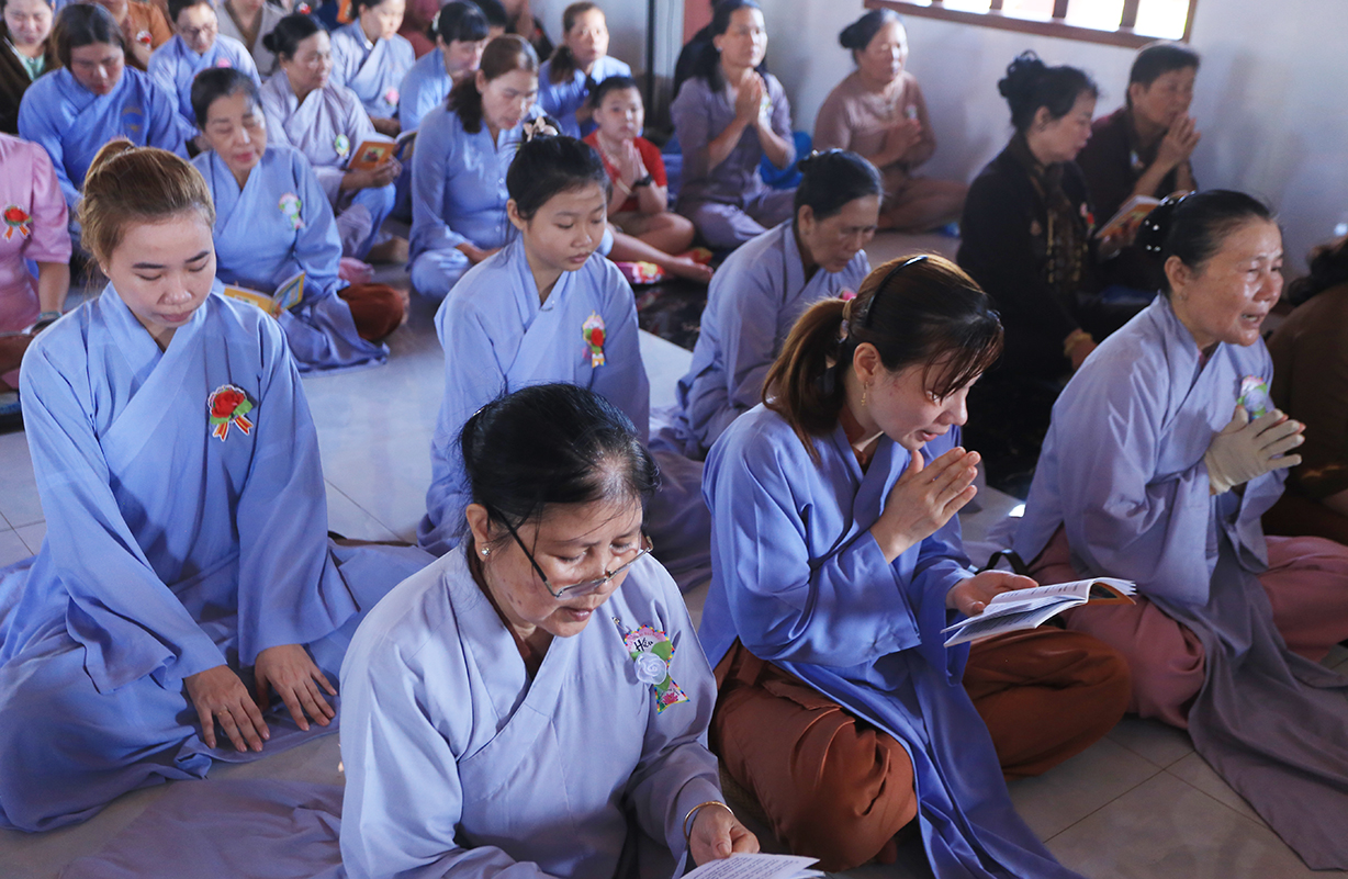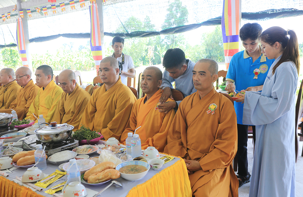 Nối tiếp buổi lễ là Khoá lễ Thọ trai của Phật tử chùa Thiền Tông dâng vật phẩm cúng dường Chư Tôn đức theo nghi lễ truyền thống của Phật giáo.