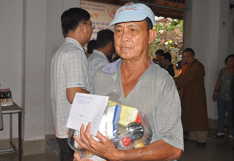 Thầy Minh Phước cho biết: có 200 phần quà được phát, mỗi phần quà 300 nghìn đồng; gồm tịnh vật và 200 nghìn tiền mặt . Tổng trị giá 60 triệu đồng do Đại đức Thích Minh Sơn ( chùa Huệ Nghiêm, Tp. HCM) ; Phật tử Ngô Mỹ ( Cty Tinh sản xuất – Thương Mại An Thanh Trầm Hương , Diệp Minh Châu, Phường Tân Nhì, quận Tân Phú, Tp. HCM) và quý vị lãnh Đạo( Phường Tân Sơn Nhì, Quận Tân Phú, Tp. HCM) tài trợ.