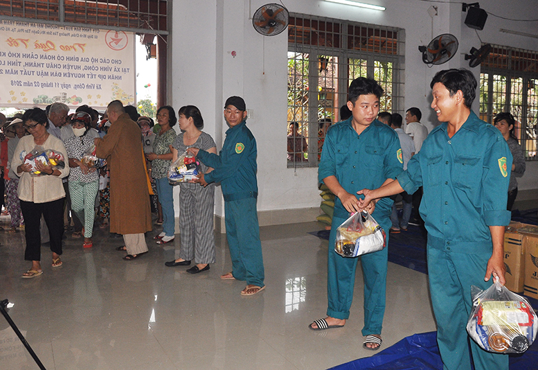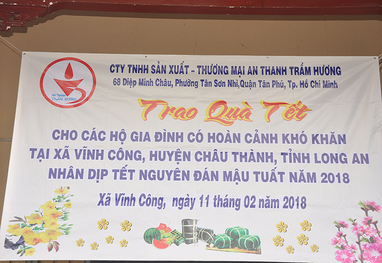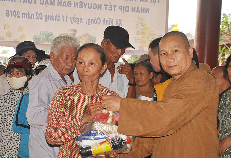 Để cho bà con có nghèo cảnh khó khăn hưởng một mùa xuân trọn vẹn, chiều ngày 11 tháng 02 năm 2018( 26/12/ Đinh Dậu) chùa Vĩnh Hưng, ấp 4, xã Vĩnh Công, huyện Châu Thành, tỉnh Long An tổ chức phát quà tết cho những hộ gia đình nghèo, cận nghèo tại địa phương.