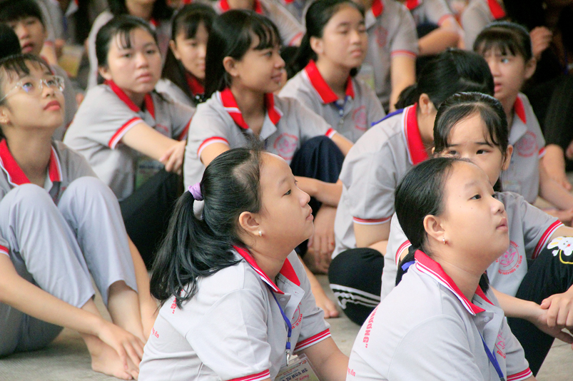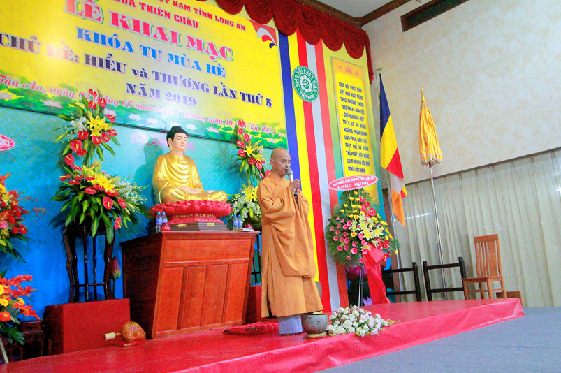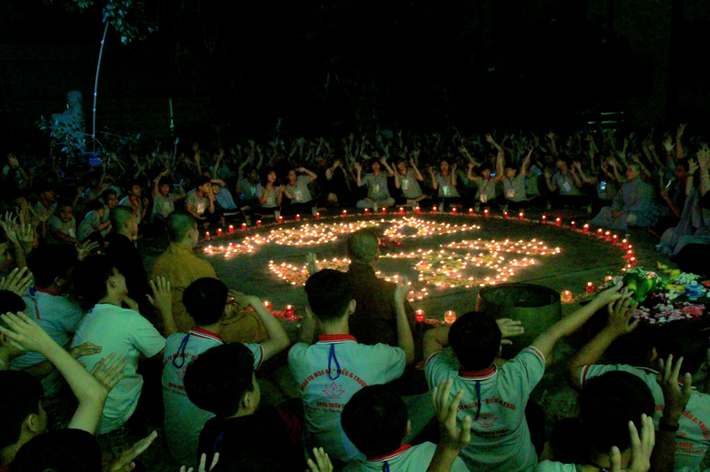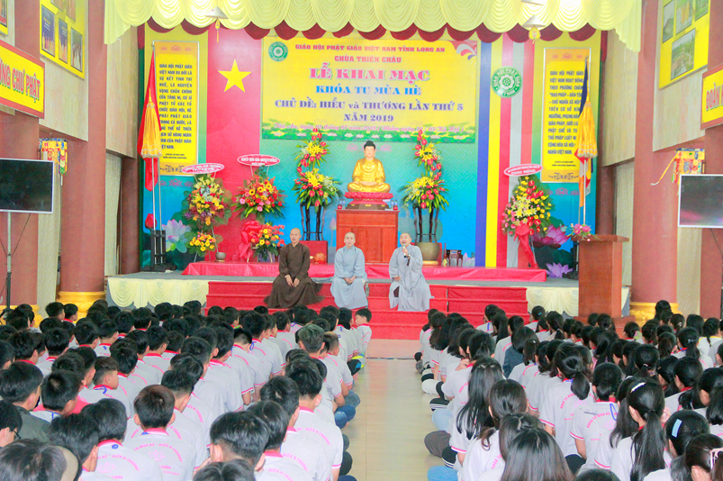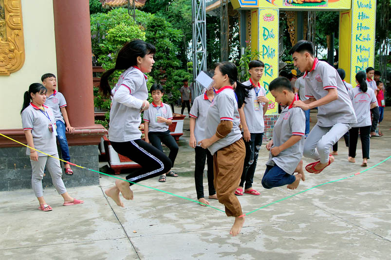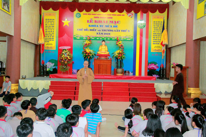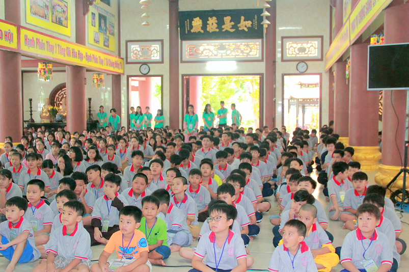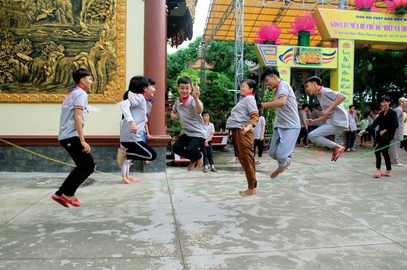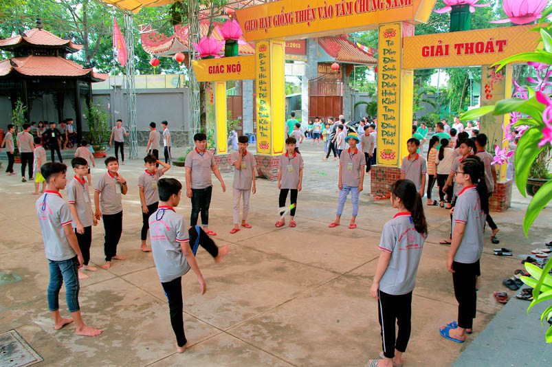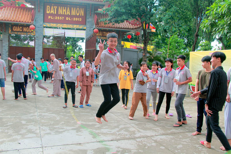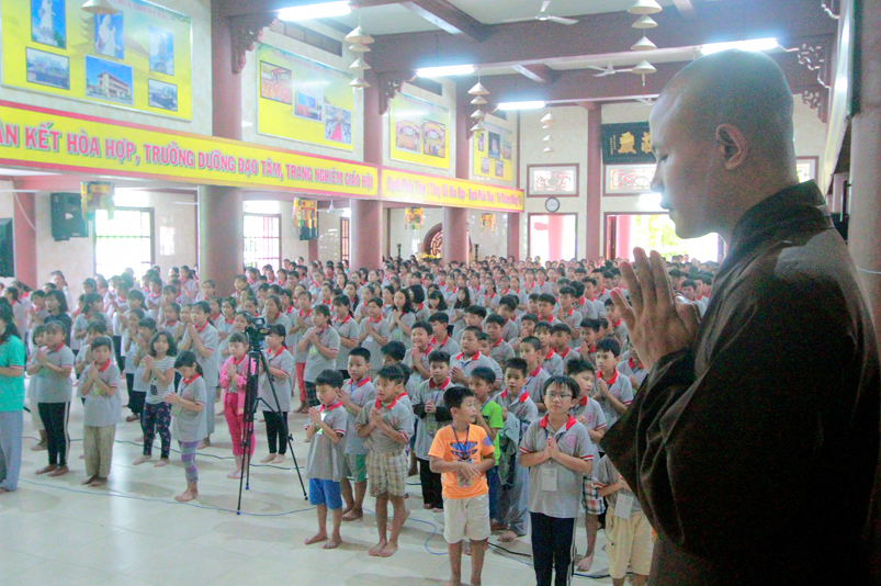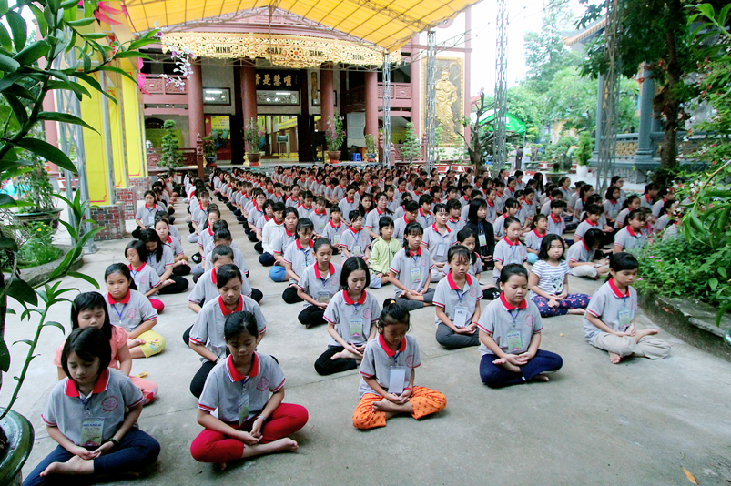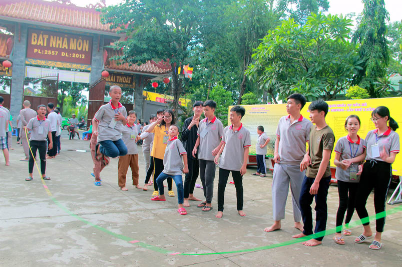 Khóa tu có sự liên kết hài hòa giữa học và chơi. Đến 8h, các em được Đại đức Thích Lệ Trí hướng dẫn tọa thiền, niệm Phật. Bài giảng của Đại đức có sự kết hợp giữa lí thuyết và thực hành kiến cho các em vô cùng phấn khởi. Đặc biệt, Đại đức còn tạo không khí sinh động tặng quà và cho các em thi niệm Phật.