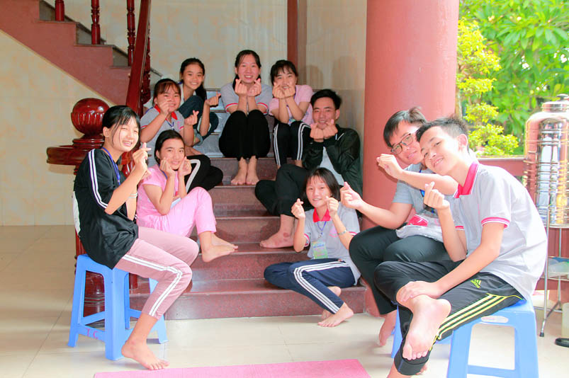Giờ sinh hoạt đối với các em trôi qua rất nhanh, như còn muốn tiếp tục giao lưu cười đùa, thì đã đến giờ ăn chiều vào lúc 4.30, sau khi ăn xong các em được phân chia đi tắm rửa vệ sinh cá nhân theo từng nhóm để đảm bảo như cầu giải quyết cho số đông.