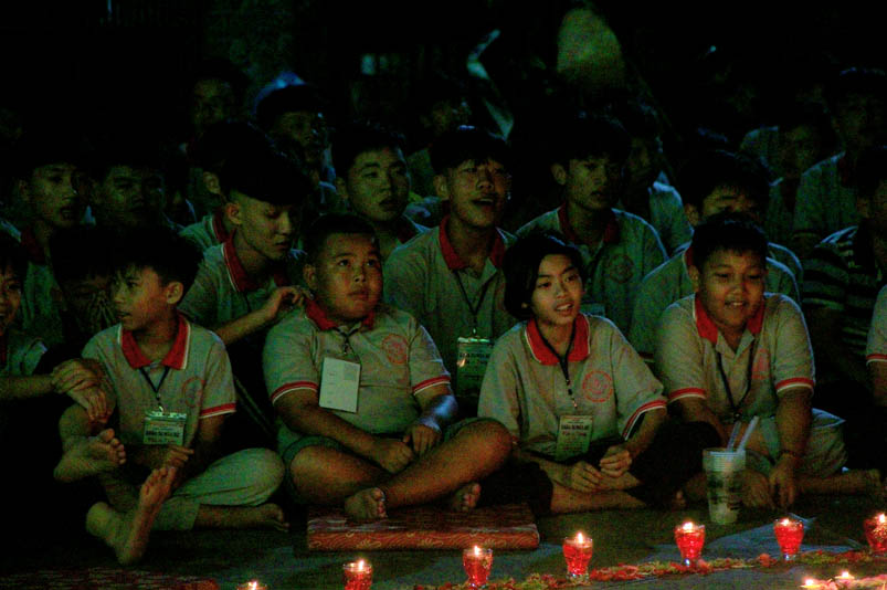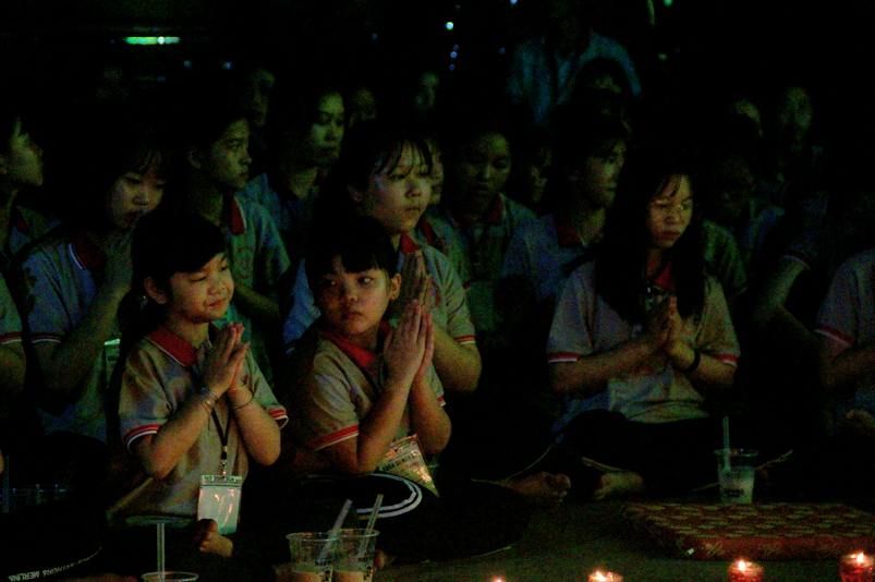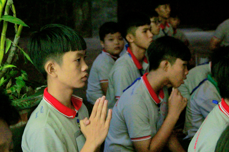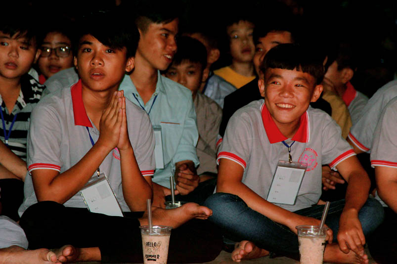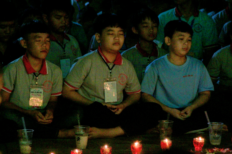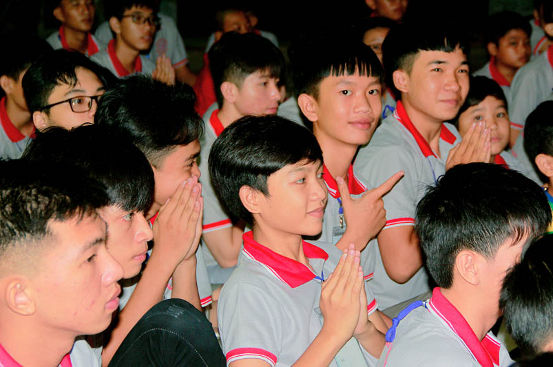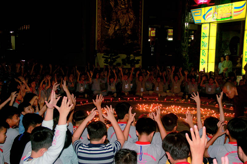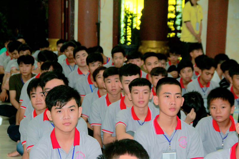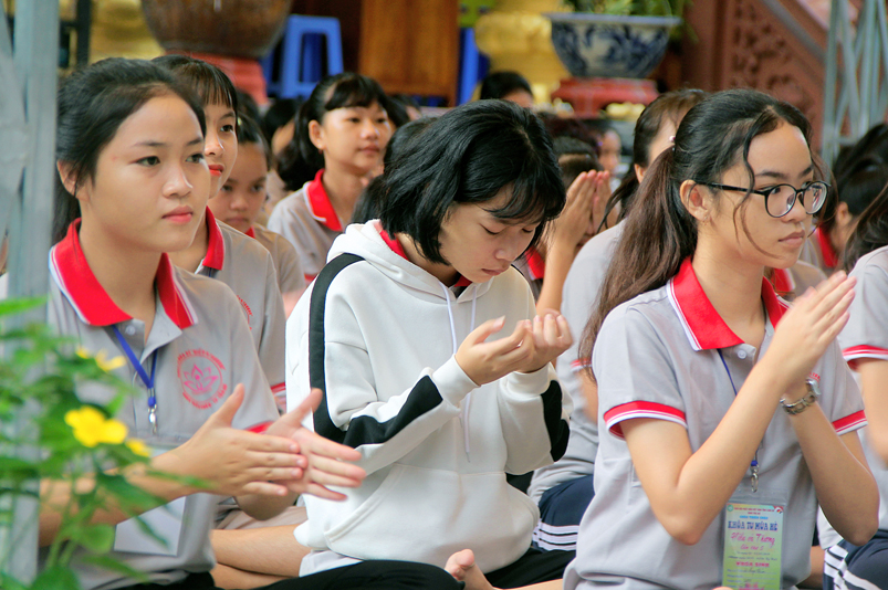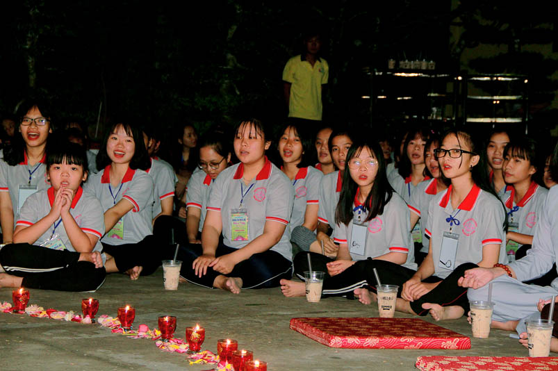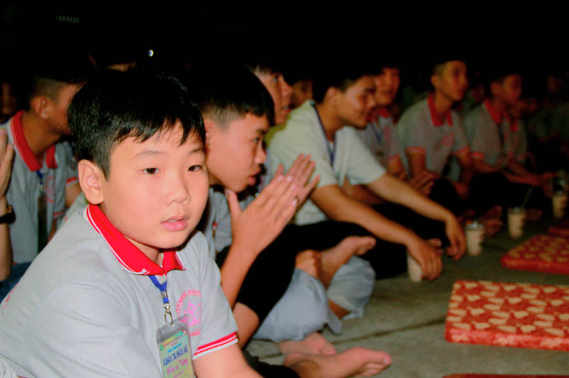 Tiếp theo là giờ tụng kinh nhằm hướng các em hiểu được tránh ác làm lành, thương yêu hiếu thảo, tôn kính khiêm nhường….. để tạo phước báo cho chính mình ở hiện tại và tương lai. Sau giờ tụng kinh các em còn được hướng dẫn vui chơi giải trí, đến 21 giờ được về liêu phòng ngơi nghĩ. Một ngày tu học trôi qua, trong không khí an vui lành mạnh, ý nghĩa thiết thực làm cho tinh thần các em có niềm an vui hồn nhiên và thánh thiện.