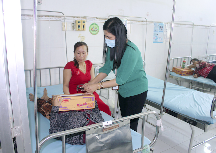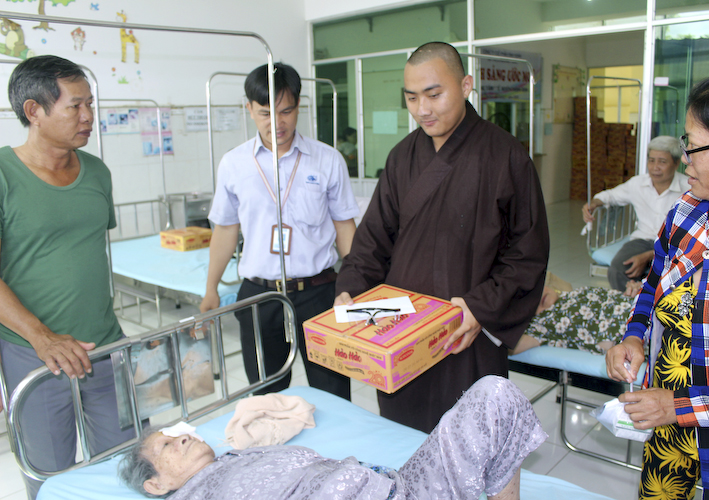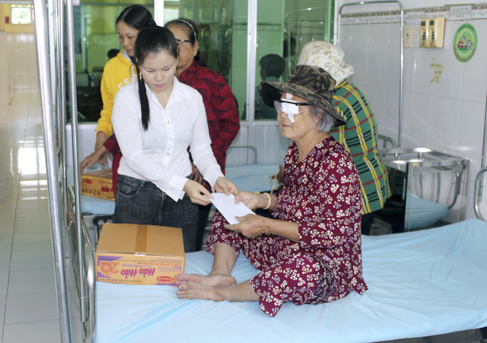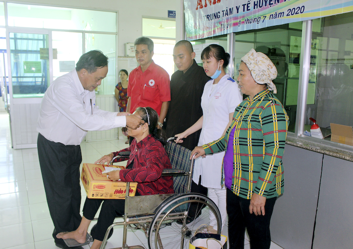 Đồng thời đoàn cũng gởi quà đến 80 bệnh nhân mỗi người một thùng mì, cặp kính che bụi và tiền mặt một trăm nghìn đồng (100.000 đồng).