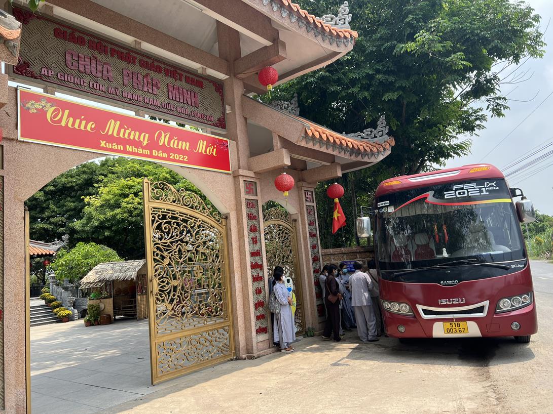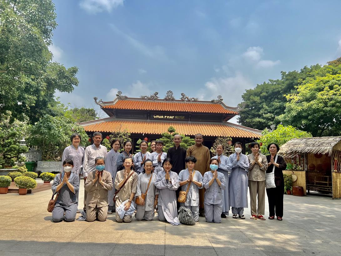 Đón tiếp Đại đức Thích Tắc Nguyên và Phật tử chùa Tôn Thạnh, có Đại đức Thích Lệ Duyên, Chánh Thư ký BTS GHPGVN tỉnh Long An, Trưởng ban Trị sự GHPGVN huyện Đức Hòa, Chủ nhiệm Lớp Sơ cấp Phật học Long An.