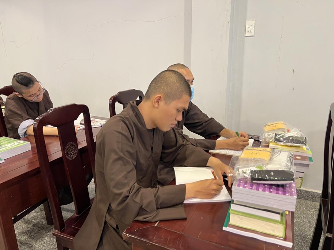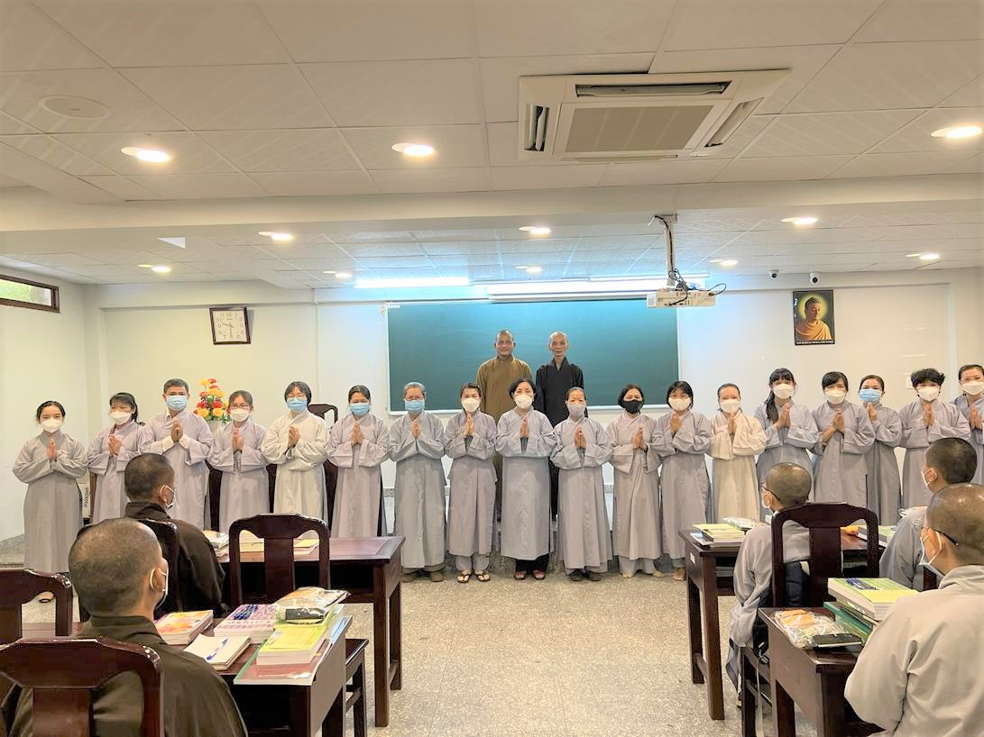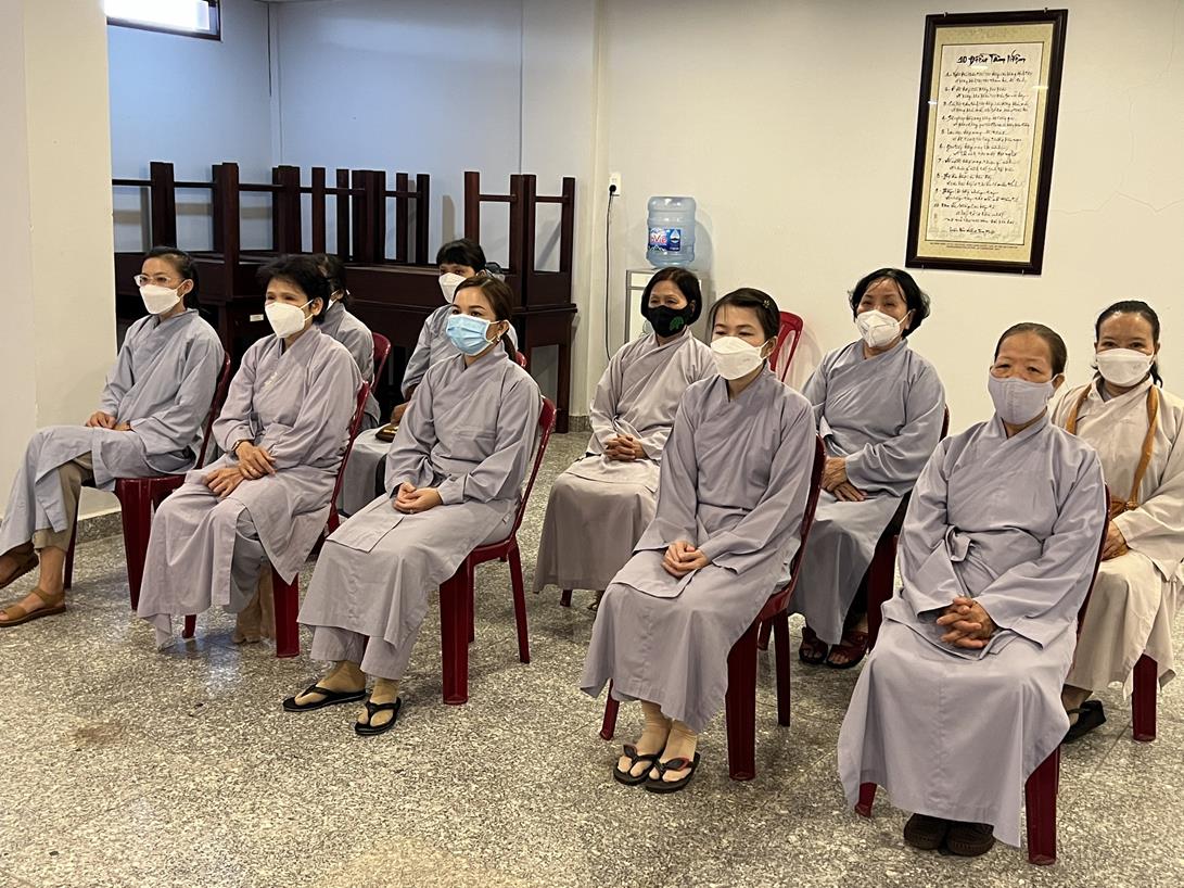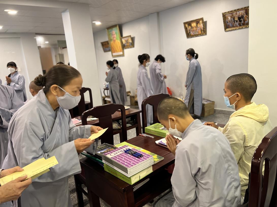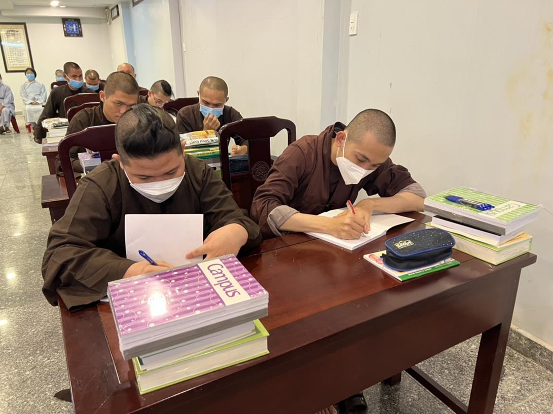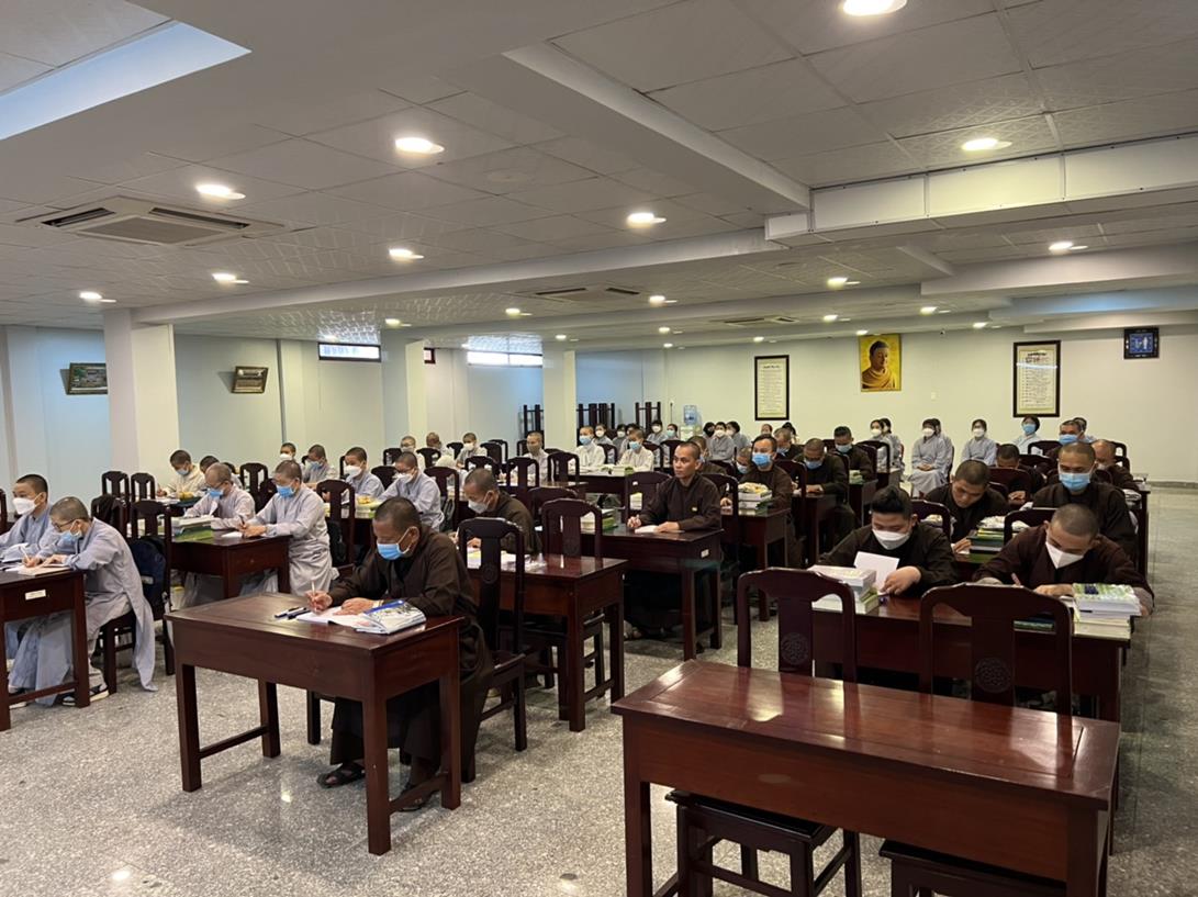 Sau khi hướng dẫn Phật tử cúng dường xong, Đại đức Thích Tắc Nguyên bắt đầu dạy môn Phật pháp căn bản cho Tăng Ni sinh khóa VIII.