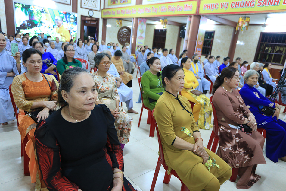 Đồng thời, giảng sư cũng chỉ cho đại chúng thấy được quá trình tu tập là quá trình trở về chứ không phải là đi tìm. Theo lời Phật dạy ” Ta Là Phật Đã Thành, Chúng Sanh Các Ngươi Là Phật Sẽ Thành” thì người tu tập có đủ niềm tin thanh tịnh ” chính nơi mình có Phật tánh thanh tịnh sáng suốt như Phật”. Từ đó, mỗi Phật từ tinh cần tu tập đoạn trừ tham lam, sân hận, si mê sẽ dần trở về với bản tâm thanh tịnh của chính mình. Qua đó, chúng ta thấy được cái “Ngã” rốt ráo muốn nói ở đây tức là “chân tâm Phật tánh”. Như trong Kinh Đại Bát Niết Bàn phẩm Như Lai Tính đức Phật dạy: ” Ngã tức là Như Lai tạng. Tất cả chúng sanh đều có Phật tính tức là nghĩa của ngã. Nghĩa của ngã như vậy từ nào tới giờ thường bị vô lượng phiền não che đậy vì thế nên chúng sanh chẳng nhận thấy được”. Hay trong phẩm Tứ Tướng đức Phật dạy: ” Ngã đây chính là Như Lai, là chân tâm Phật tánh, là thân kim cang bất hoại chứ không phải là ngã của Thái Tử Tất Đạt Đa”. Cho nên, chúng ta thấy “Ngã” ở đây chính là pháp thân thường trụ không biến đổi chỉ vì bất giác mê lầm chạy theo vọng niệm mà phải trầm luân sanh tử.