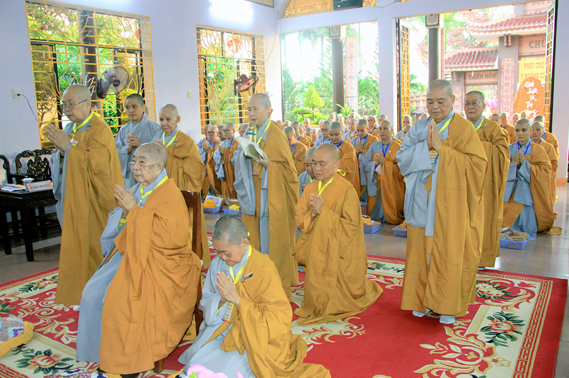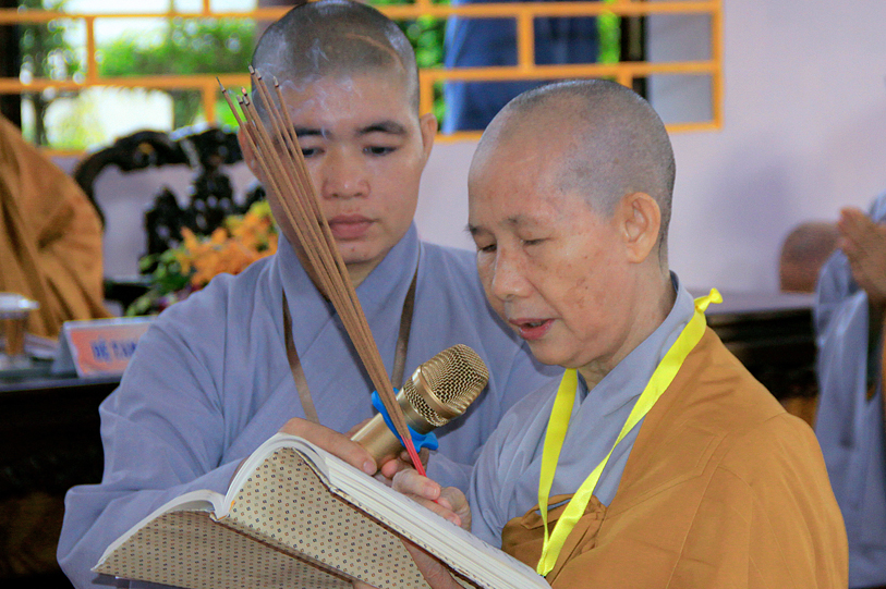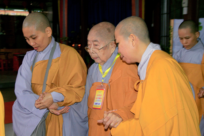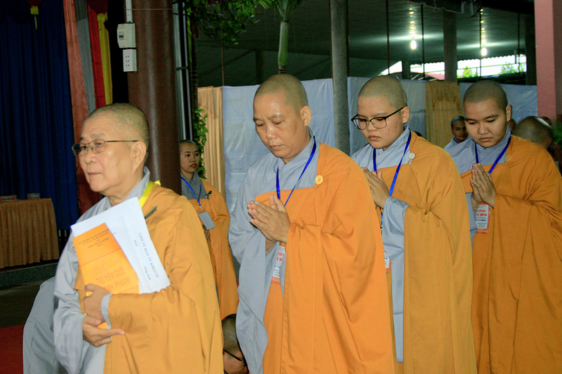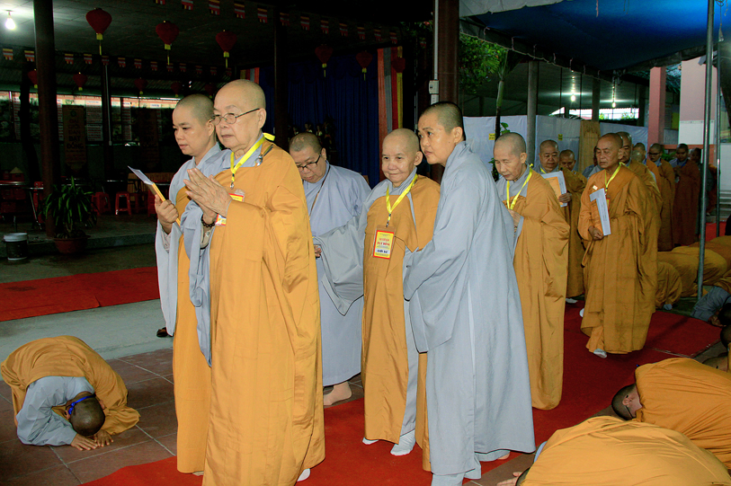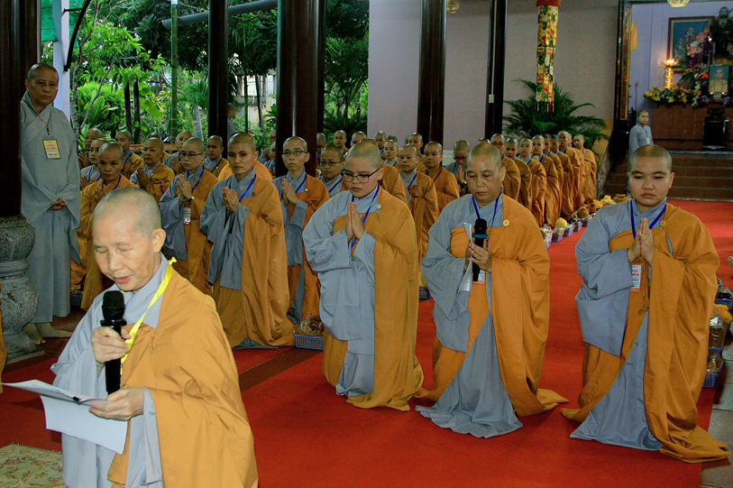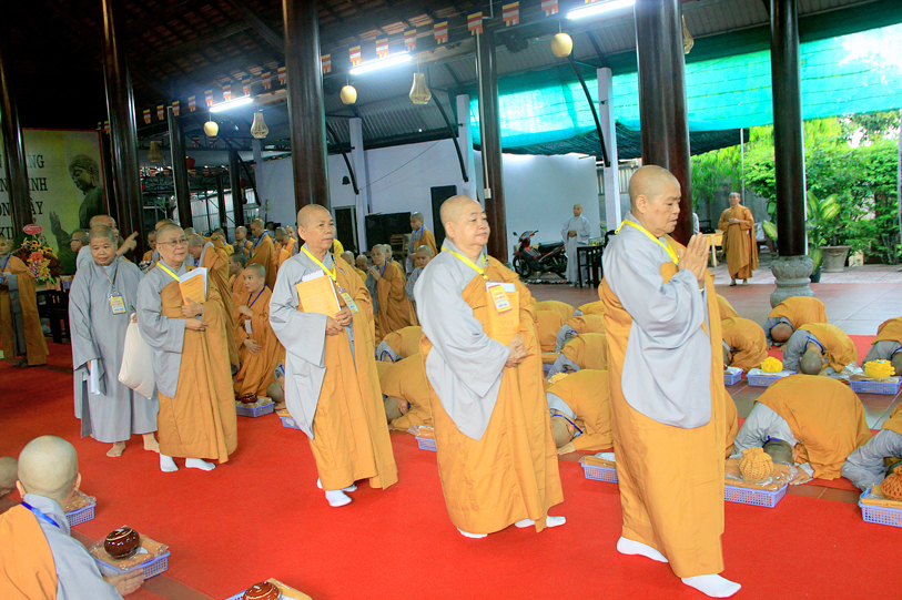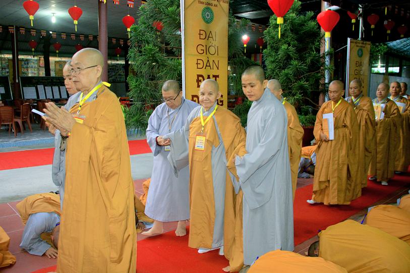 Với tâm chí thành cầu giới pháp, trong sự hướng dẫn của Ni trưởng Tuệ Đăng, Đệ nhị Tôn chứng, đương vi Điển lễ sư, các giới tử tì-kheo-ni cung đối trước phương trượng đảnh lễ thỉnh Ni trưởng thượng Như hạ Đức, đương vi Hòa thượng đàn đầu, cùng Hội đồng thập sư Ni đăng lâm Giới trường.