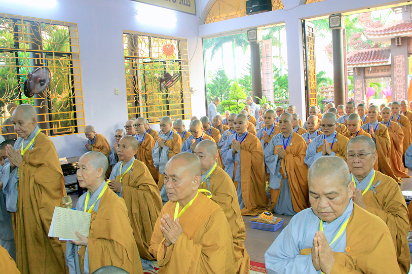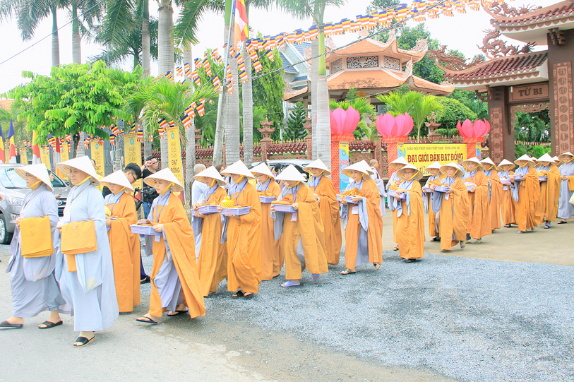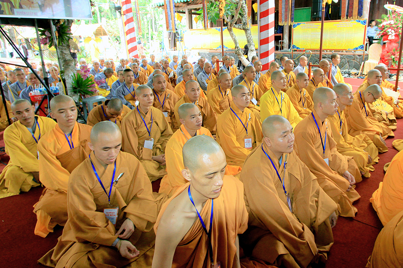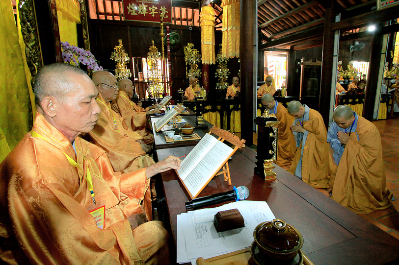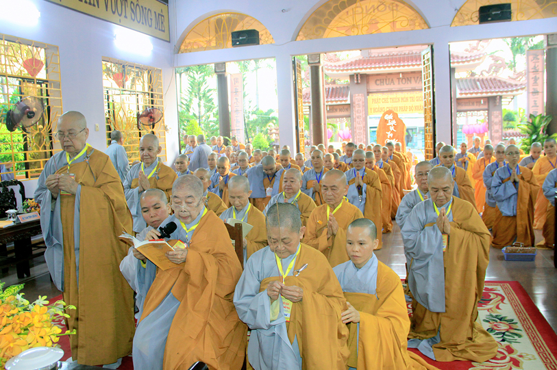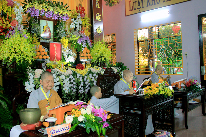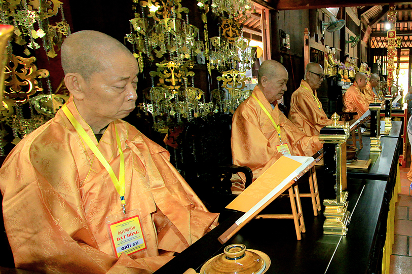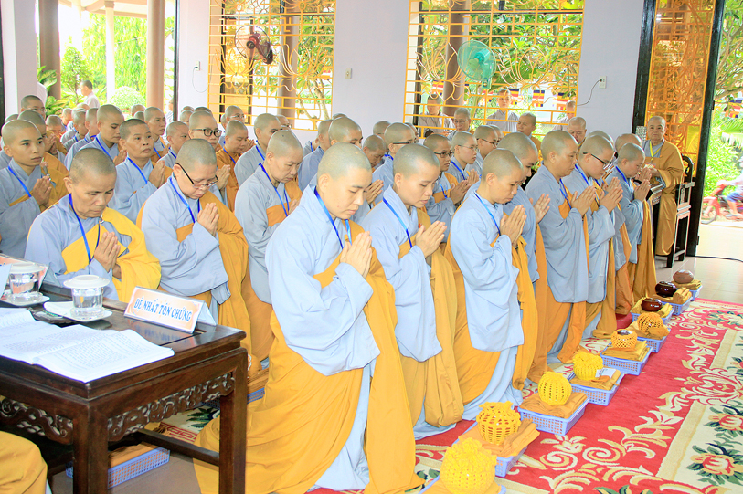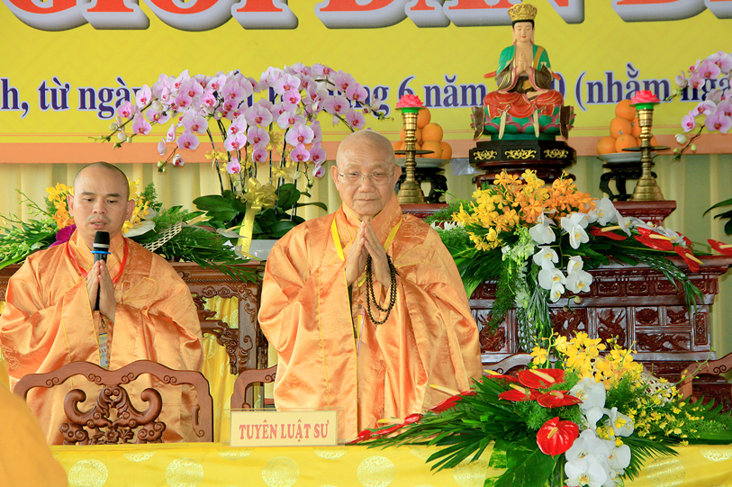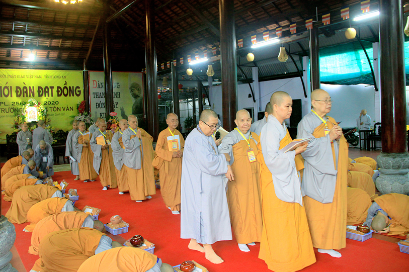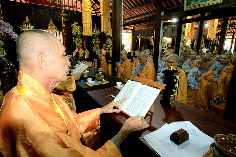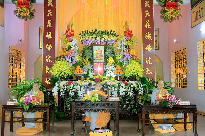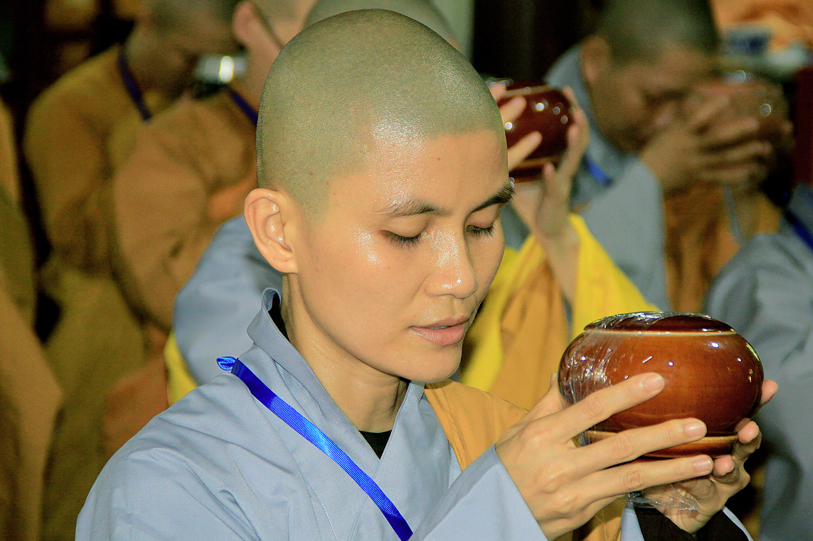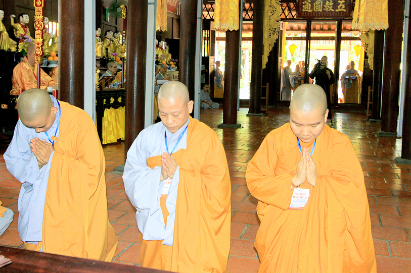 Từng hồi chuông trống trầm hùng đồng trỗi nhịp, các giới tử phủ phục hai hàng, nghi lễ trang nghiêm, tạo nên quang cảnh thiêng liêng vô cùng trang trọng. Lời điển lễ thanh tao, hòa nhịp trong tiếng thủ xích uy nghiêm, giới tử nhiếp phục sáu căn, trần tâm đoạn tuyệt. Ba y vừa đắp, đại nguyện tràn dâng, lối vào Phật đạo thênh thang rộng mở.