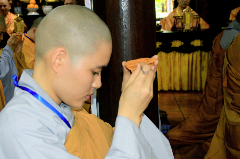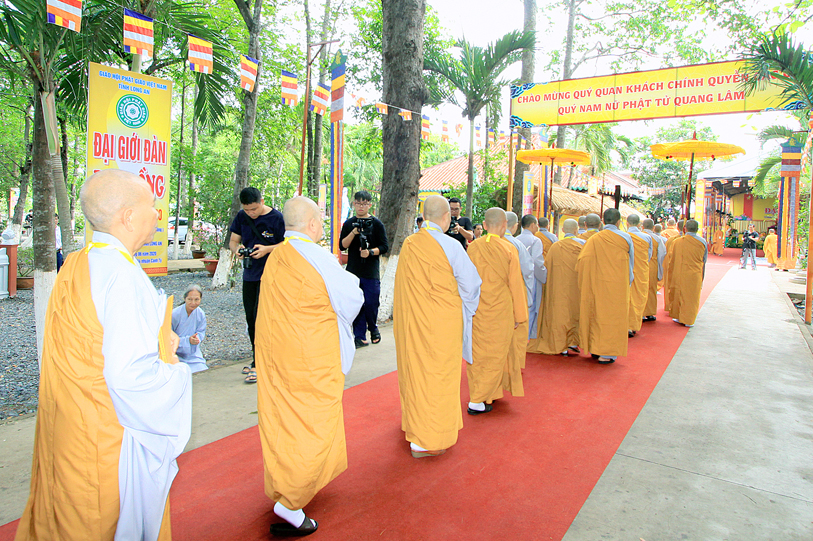 Theo nghi thức, các giới tử lần lượt tấn đàn, được lắng nghe lời dạy nghìn xưa, thấm vào lòng như mật ngọt. Đâu đó trong dòng tâm thức chợt hiện về hình ảnh Đức Di mẫu Kiều-đàm cùng 500 người nữ nước Câu-xá-di chẳng ngại gian lao, chân trần rướm máu, áo nhuộm bụi đường, vượt hàng trăm dặm, theo bước Thế Tôn, cầu xuất gia học đạo.