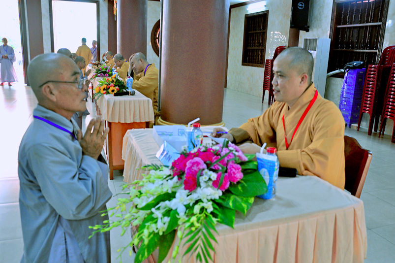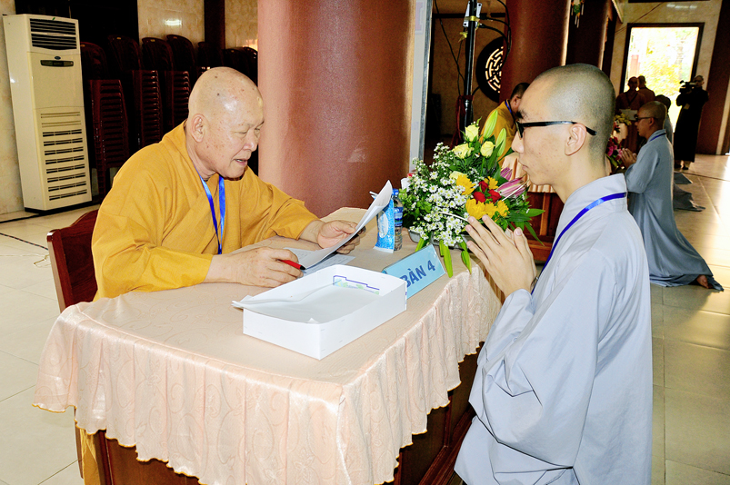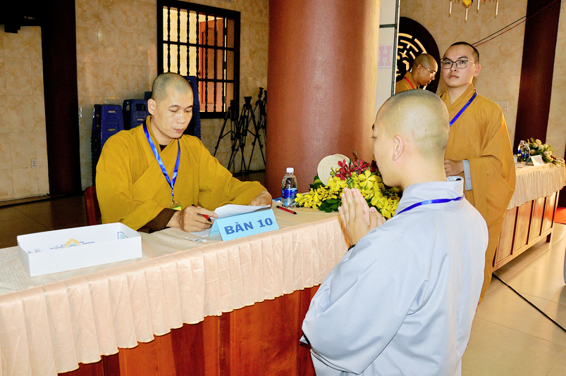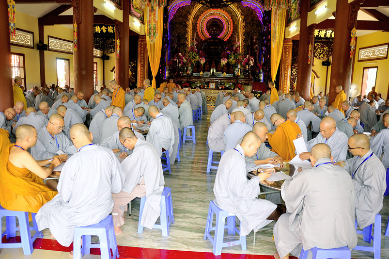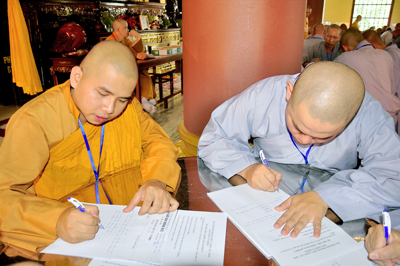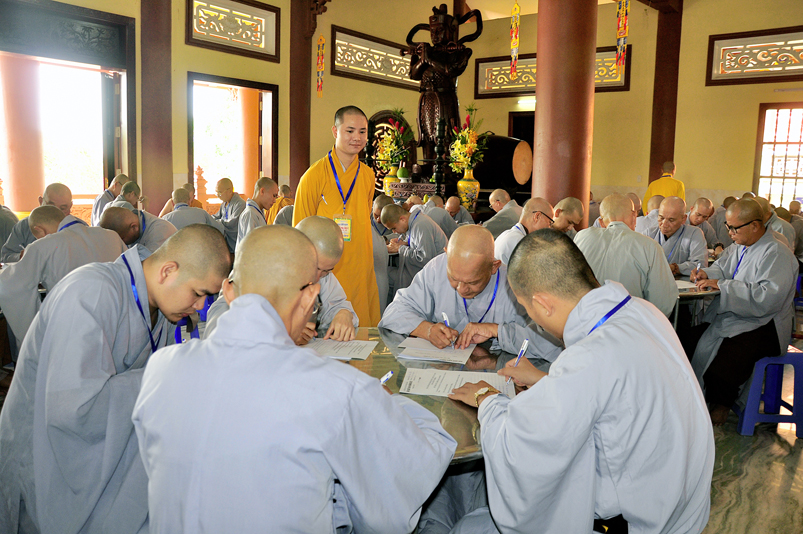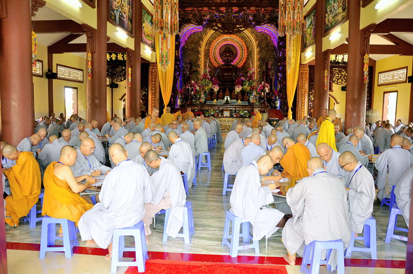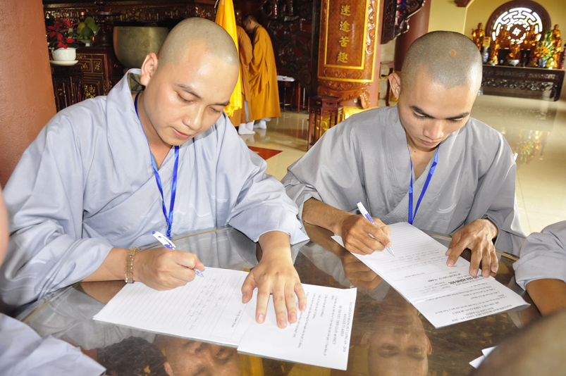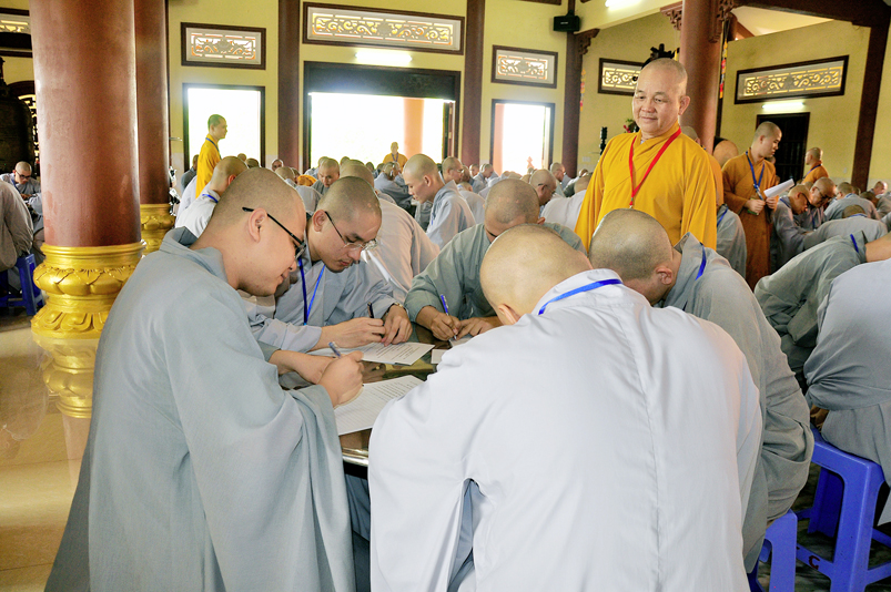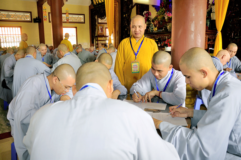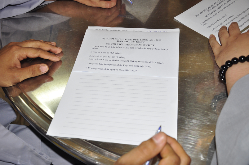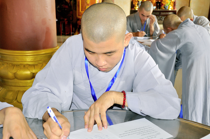 Bước vào phần thi, HT. Thích Minh Thiện – Chánh chủ khảo trực tiếp mở đề thi và các giới tử được nghe quy nội quy phòng thi và hướng dẫn cách làm bài để các giới tử làm bài đạt điểm cao.