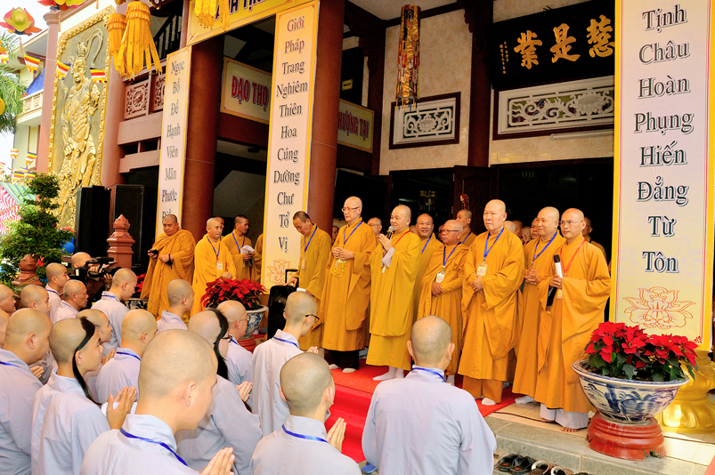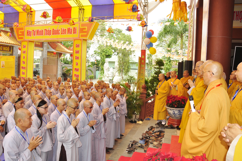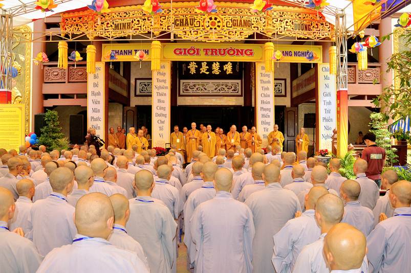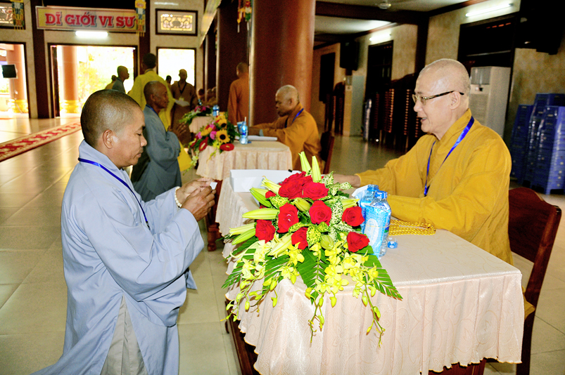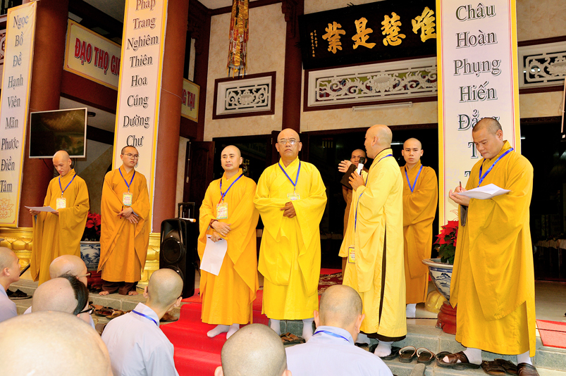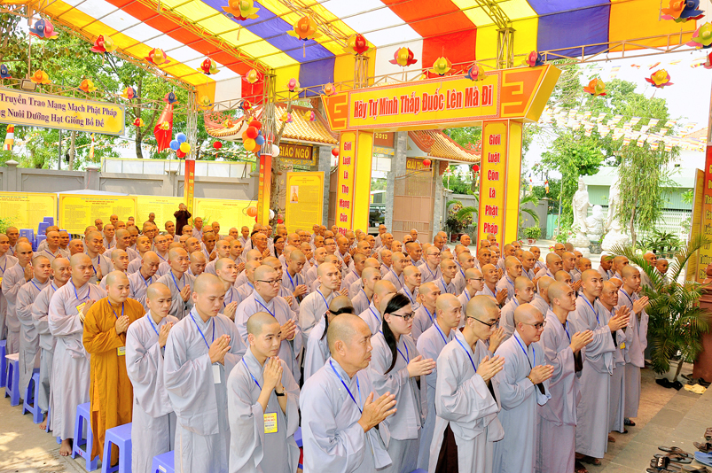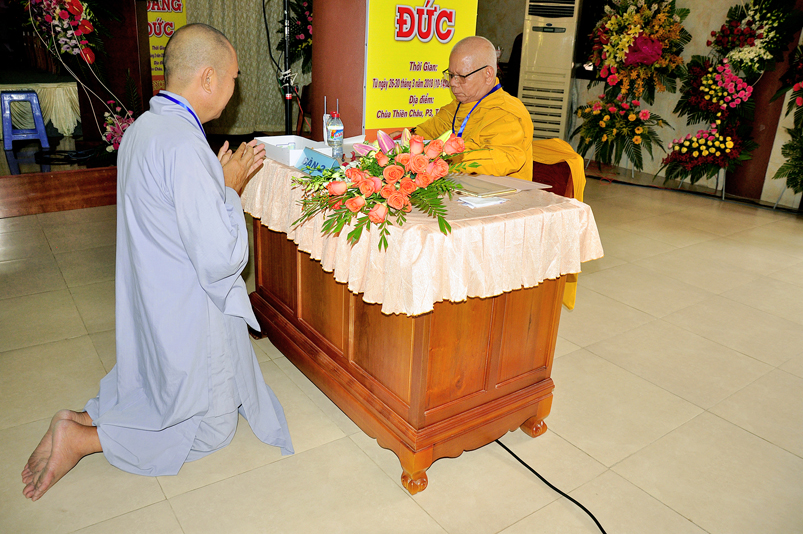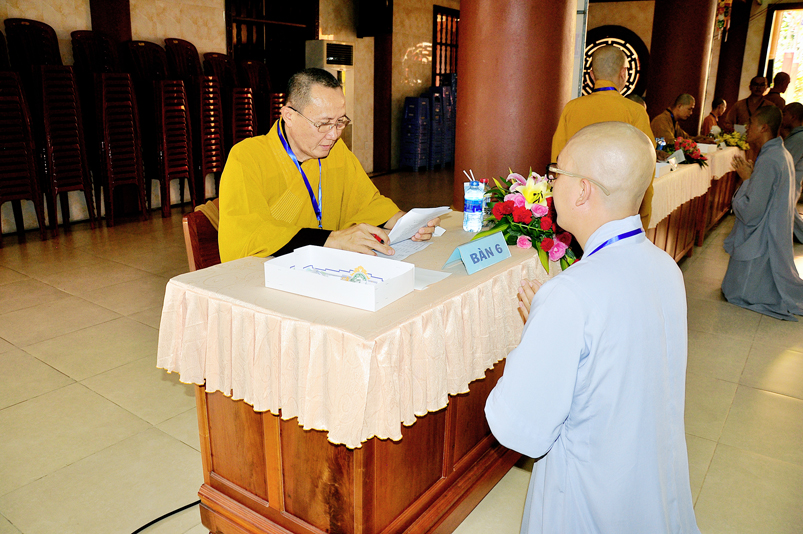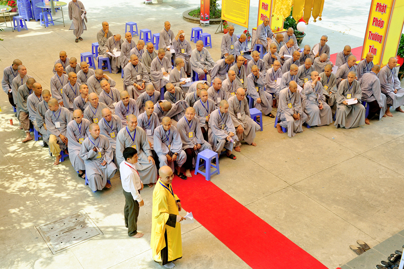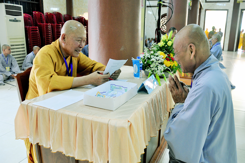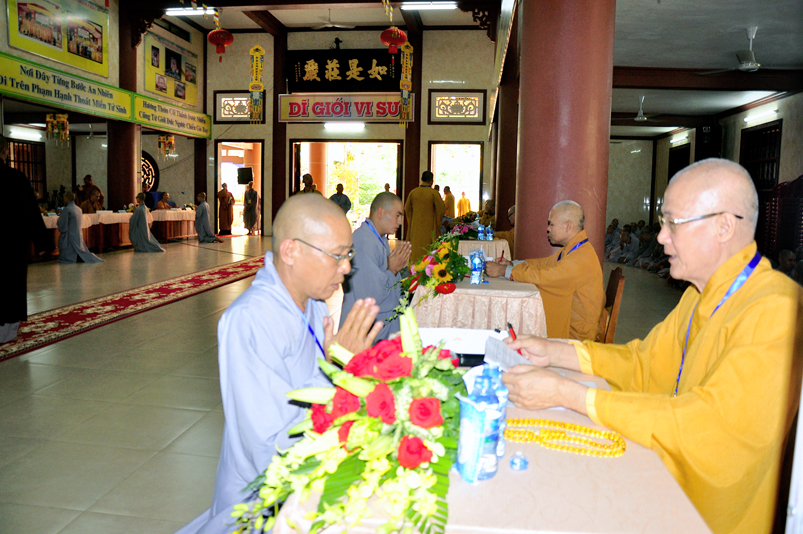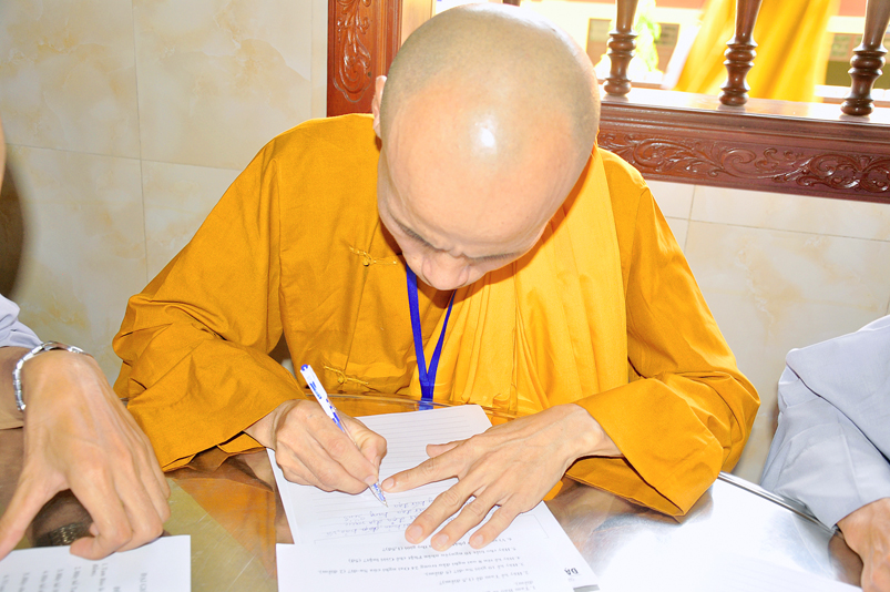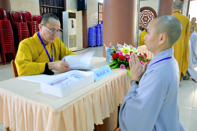 Bước vào phần thi, HT. Thích Minh Thiện – Chánh chủ khảo trực tiếp mở đề thi và các giới tử được nghe quy nội quy phòng thi và hướng dẫn cách làm bài để các giới tử làm bài đạt điểm cao.