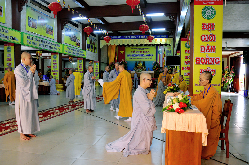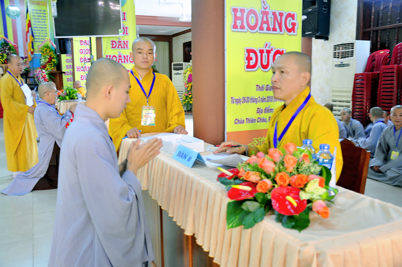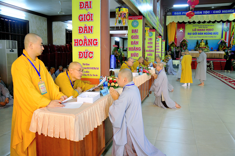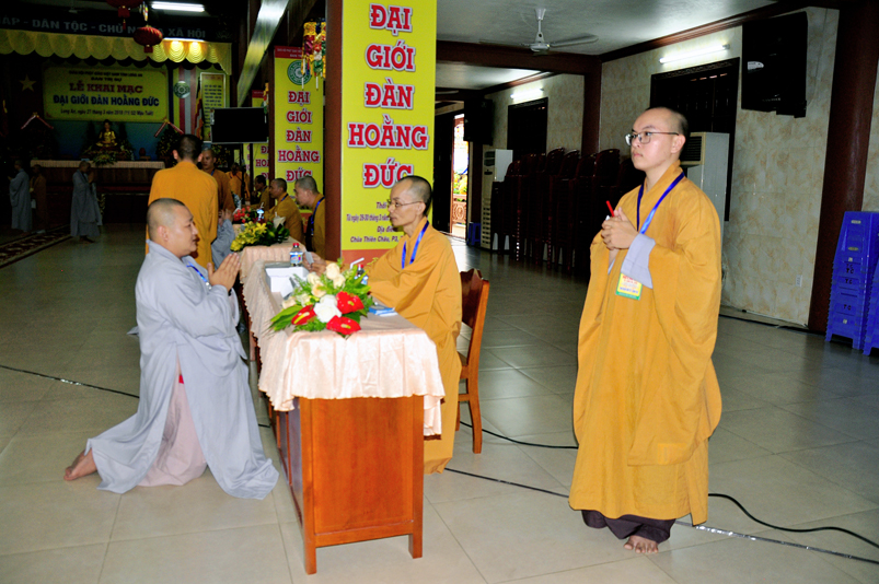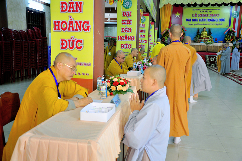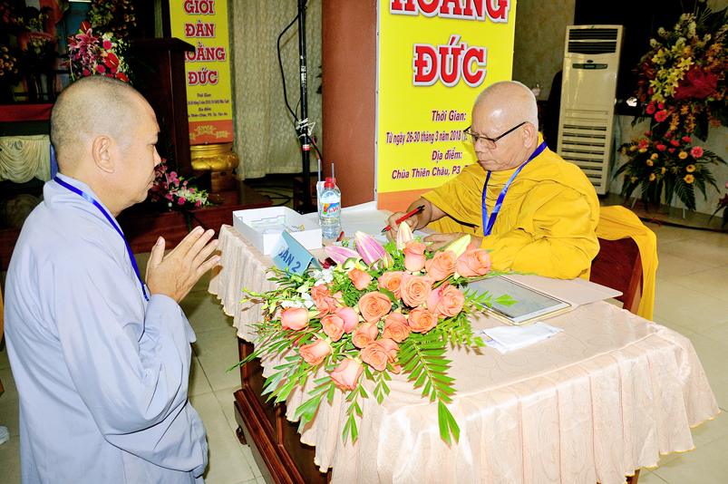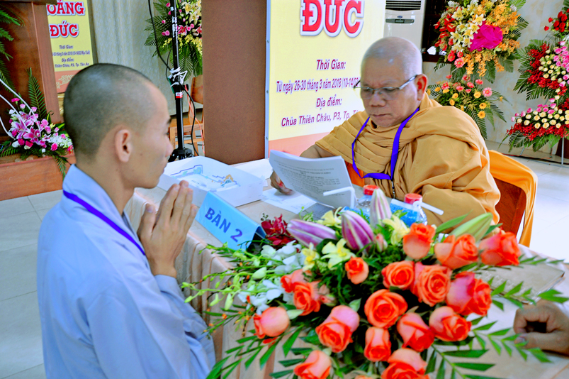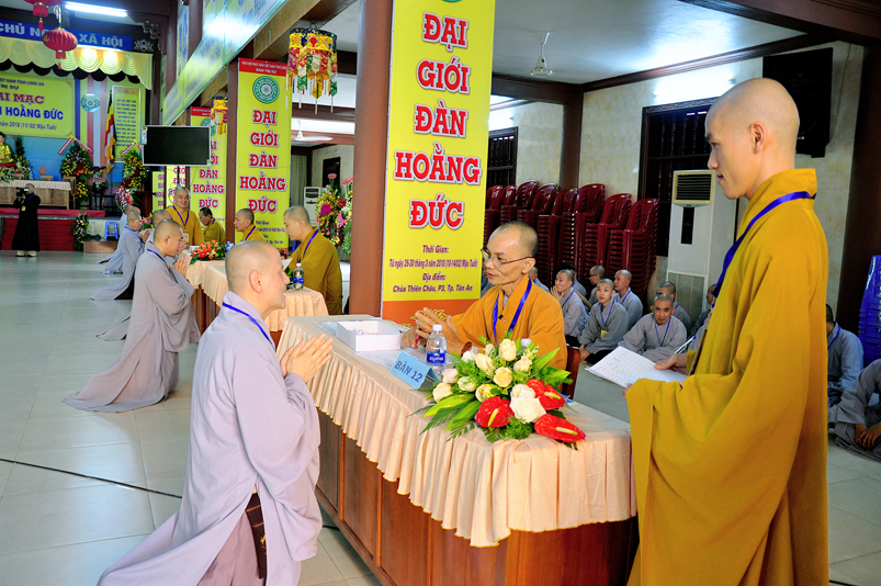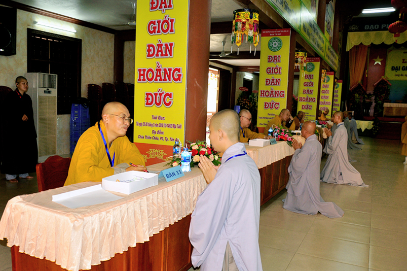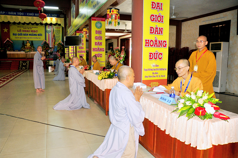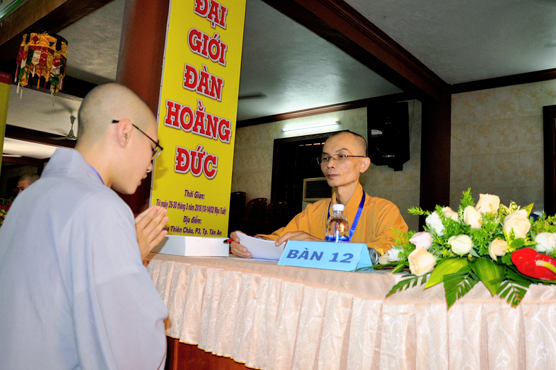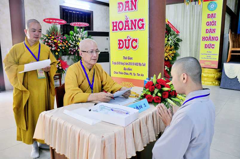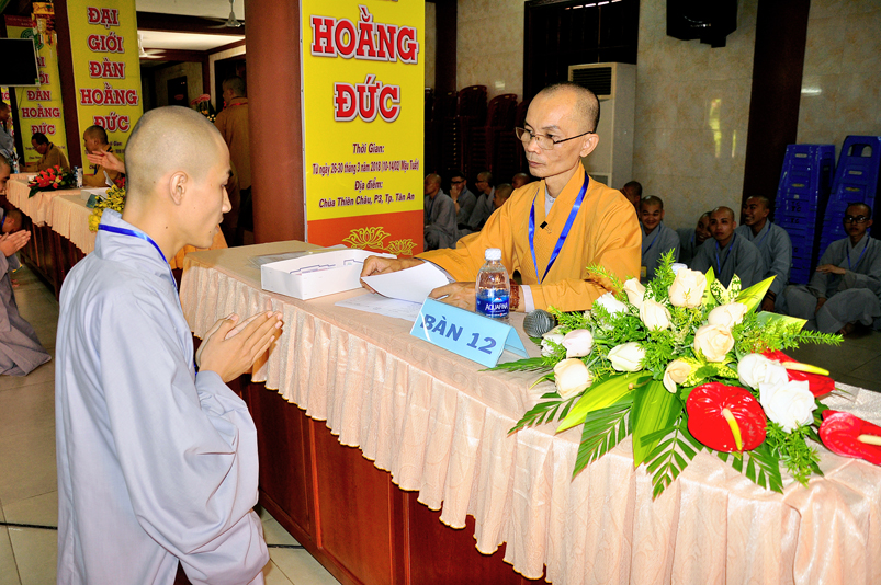 Theo chương trình Đại Giới Đàn Hoằng Đức, sau buổi lễ Khai mạc, 14g ngày 28/3/2018 (nhằm ngày 12/2/ Mậu Tuất), tịnh xứ giới đàn Tăng, chùa Thiên Châu, ban tổ chức tổ thỉnh mời ban Giám khảo để tổ chức thi kiến thức Phật học cho quý giới tử Tăng thọ Sa di và Tỳ kheo.