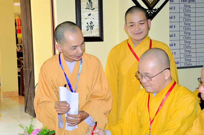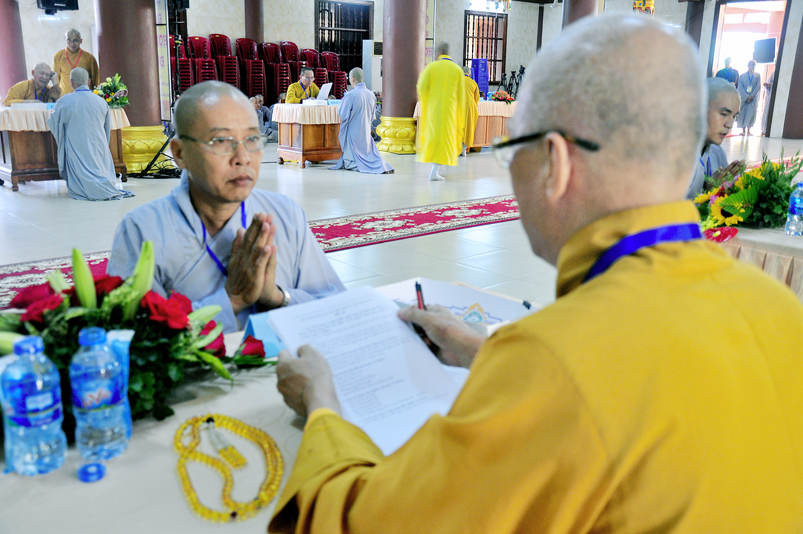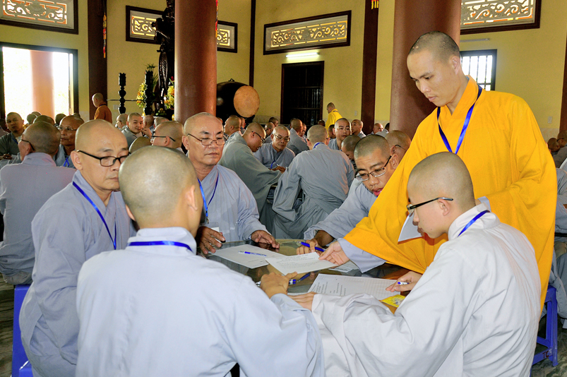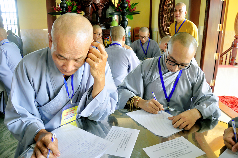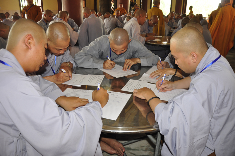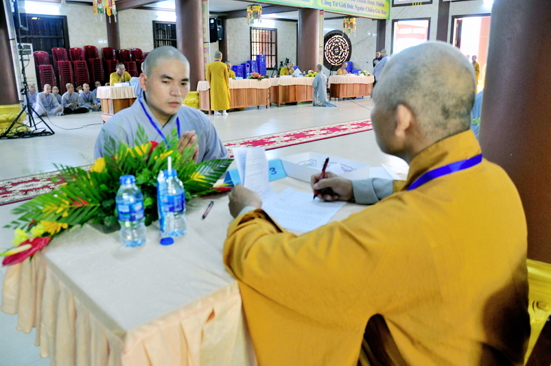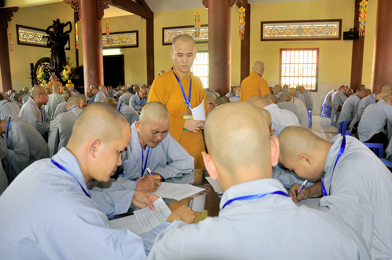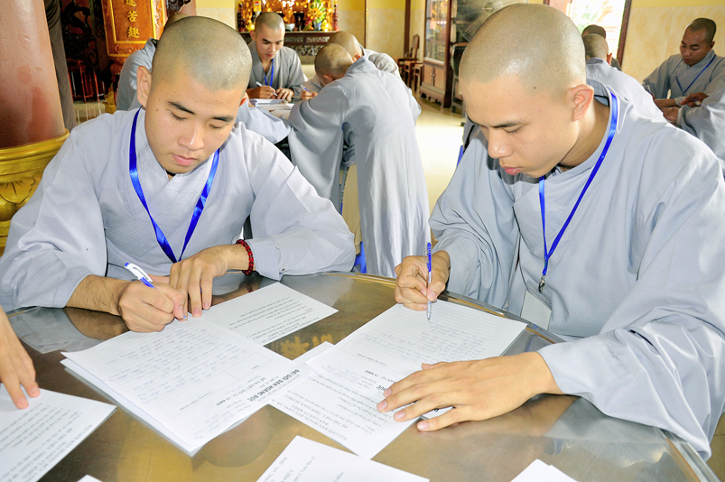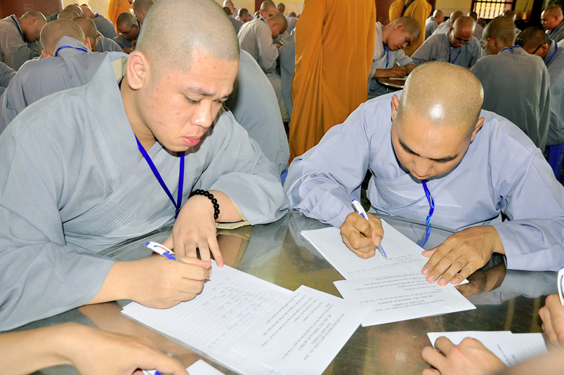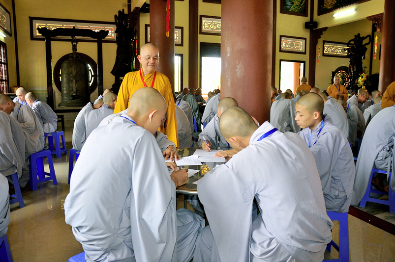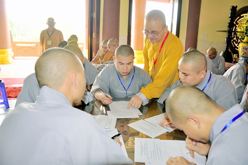Để giúp quý giới tử có thêm động lực và yên tâm, Hòa thượng Chánh chủ khảo có lời động viên và đến các bàn thi xem giới tử làm bài. Dẫu vậy, các giới tử không sao tránh được tâm lý căng thẳng, lo lắng.