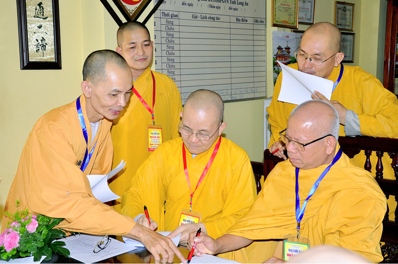 Ban giám khảo, ban tổ chức cung thỉnh quý chư tôn đức có kiến thức chuyên sâu nghiên cứu Phật học. Chánh chủ khảo HT.Thích Minh Thiện, Ủy viên HĐTS, Trưởng BTS kiêm Trưởng ban Tăng sự GHPGVN tỉnh Long An, Trưởng ban Tổ chức Đại Giới Đàn Hoằng Đức và hai mươi sáu thành viên.