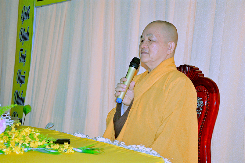 Cùng ngày, với tinh thần sách tấn quý giới tử tinh tấn tu học trong bốn ngày tại Giới Tràng, tối ngày 25/03/2018, Hoà thượng Thích Minh Thiện – Ủy viên Hội đồng Trị sự, Phó Trưởng ban Trị sự Hoằng pháp TW; Trưởng Ban Trị sự GHPGVN tỉnh Long An, Trưởng ban tổ chức Đại Giới Đàn, sau khi đi TP.HCM cầu thỉnh lời chỉ dạy của quý chư tôn giáo phẩm Tuyên Luật Sư, Hòa thượng đã có buổi khuyến đạo, sách tấn, động viên quý giới tử Tăng – Ni tại hai giới trường. Hòa thượng nhắc lại lời di chúc của Đức Từ Phụ “Nhữ đẳng tỳ-kheo! Ư ngã diệt hậu, đương tôn trọng trân kính Ba-la-đề-mộc-xoa. Như ám ngộ minh, bần nhân đắc bảo, đương tri thử tắc thị nhữ đẳng đại sư. Nhược ngã trụ thế, vô dị thử dã”. Ngài nhấn mạnh, quý giới tử có thể quên tất cả mọi thứ nhưng tuyệt đối lời dạy này Thế Tôn tuyệt đối không thể quên, dù đời này hay vô lượng kiếp sau. Và quý giới tử luôn ghi nhớ sơ tâm là hảo tâm, đứng lãng quên tâm lành ban đầu khi mới vào đạo. Đấy là tư lương cốt lõi của người xuất trần thượng sĩ. Sự quan tâm, chiếu cố của Hòa thượng Trưởng ban tổ chức đã giúp quý giới tử an tâm, hạnh phúc trước mọi điều còn bỡ ngỡ và dõng mãnh khát khao giới pháp.