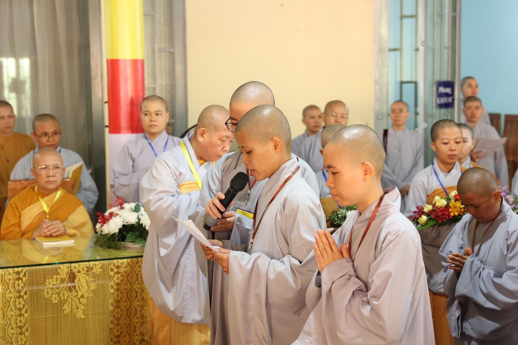 Ni trưởng Thích nữ Minh Nhẫn (Chùa Huỳnh Long, tỉnh Tiền Giang) đương vi Đệ lục Tôn chứng Tăng – già